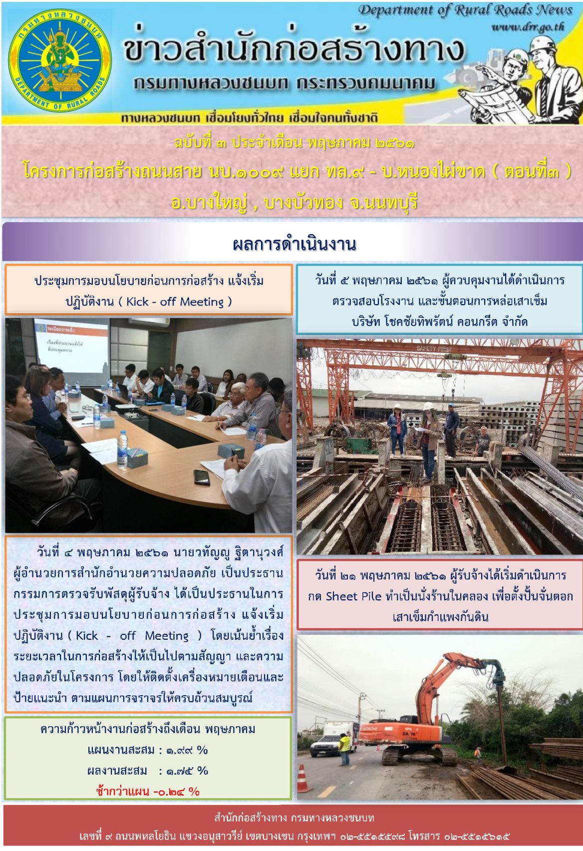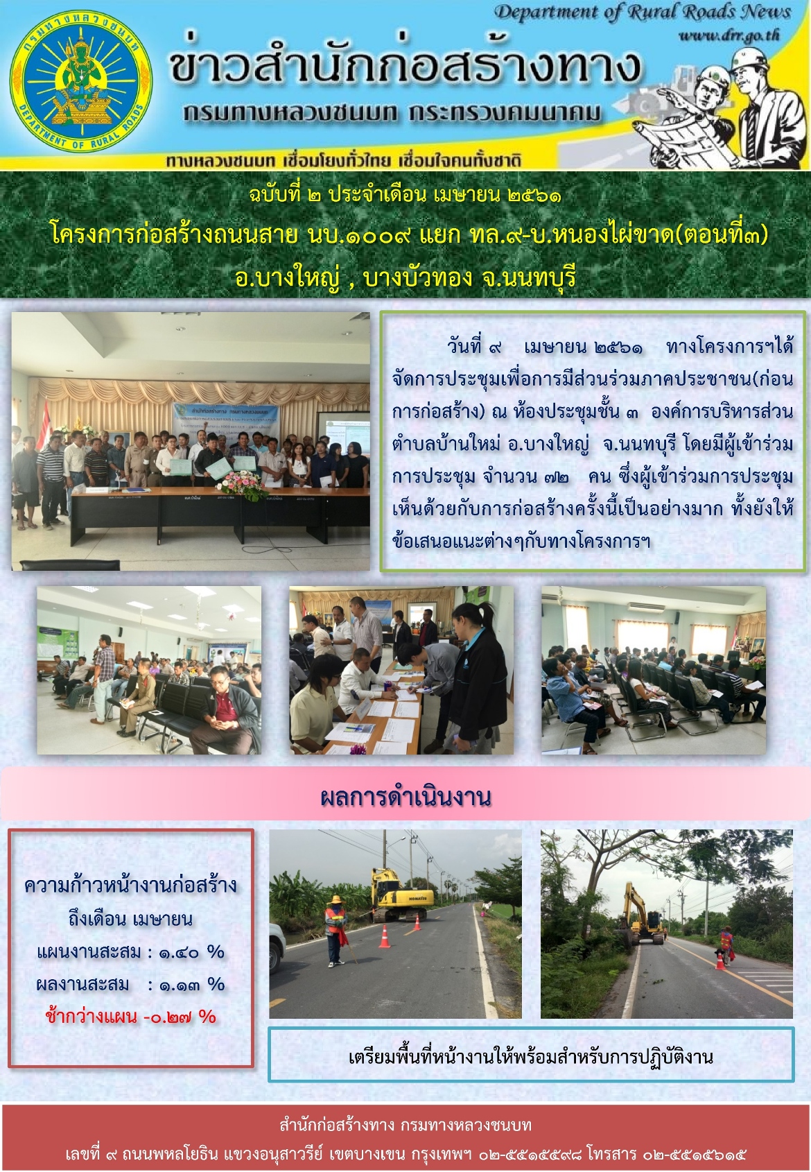ฉบับที่ 5 ประจำเดือน กรกฎาคม 2561 โครงการก่อสร้างถนนสาย นบ.1009 แยก ทล.9 - บ.หนองไผ่ขาด ( ตอนที่3 ) อ.บางใหญ่ , บางบัวทอง จ.นนทบุรี