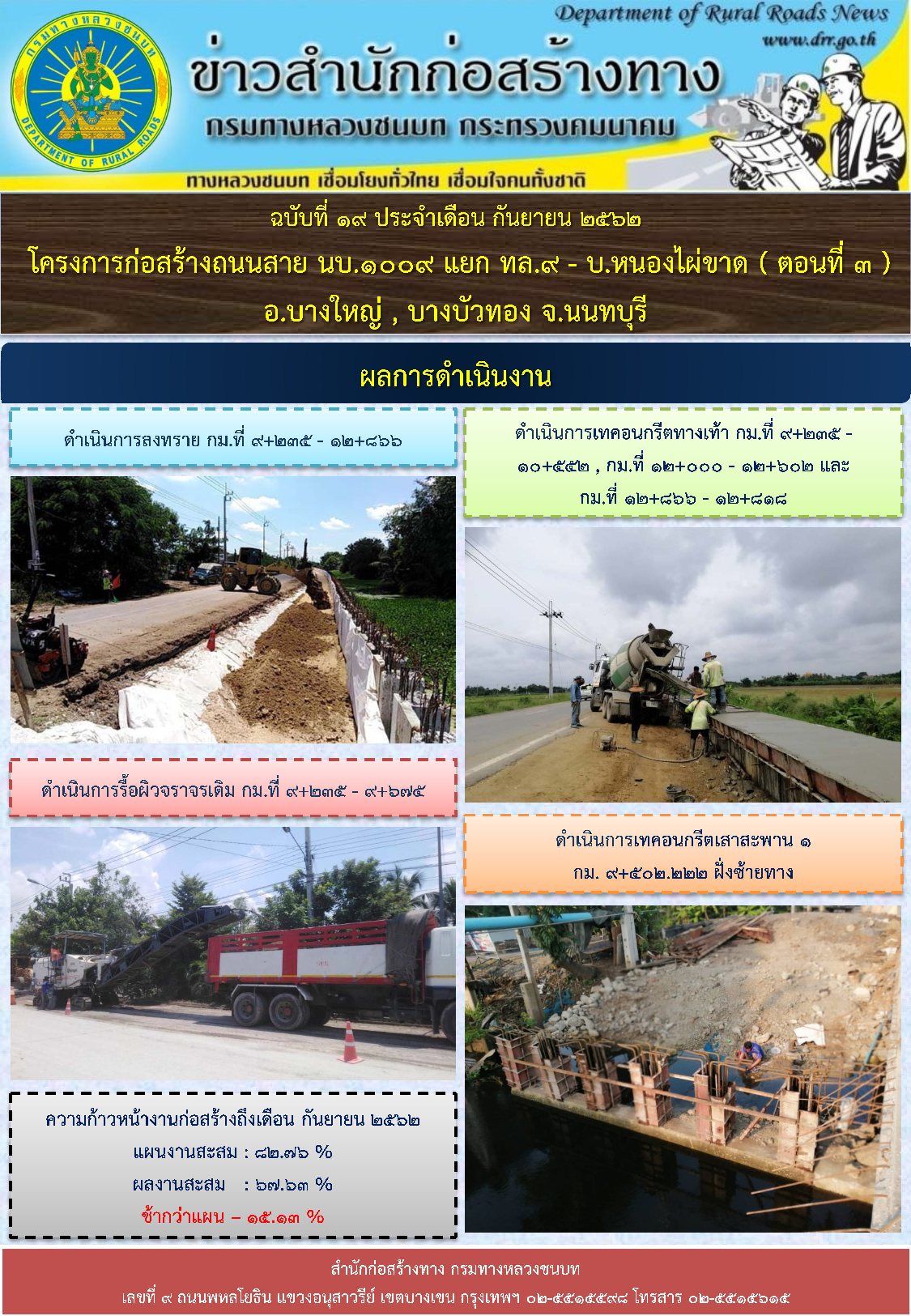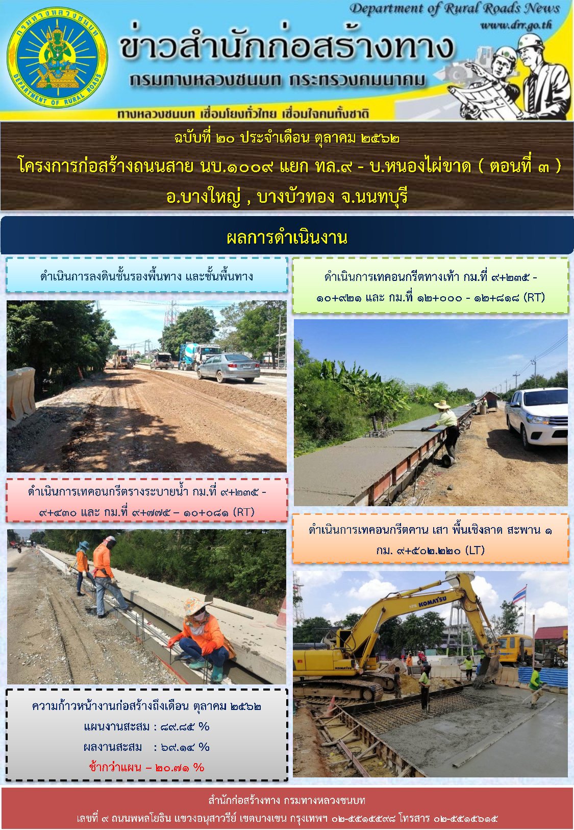 ฉบับที่ 20 ประจำเดือน ตุลาคม 2562 โครงการก่อสร้างถนนสาย นบ.1009 แยก ทล.9 - บ.หนองไผ่ขาด ( ตอนที่3 ) อ.บางใหญ่ , บางบัวทอง จ.นนทบุรี