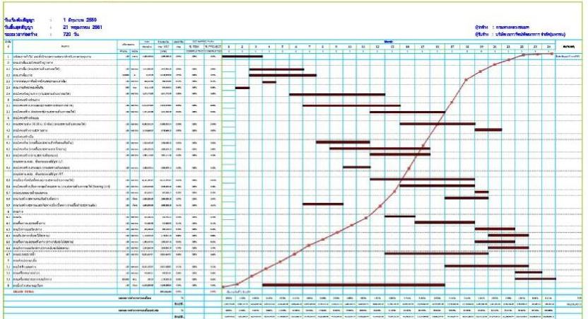 เนื่องจากเป็นช่วงเริ่มต้นของโครงการ ผู้รับจ้างยังไม่มีความก้าวหน้าของงานในสนาม แต่ได้จัดทำแผนงานของกิจกรรมก่อสร้างต่างๆ ในกรอบเวลาของสัญญา ให้ทางที่ปรึกษาพิจารณา ดังรูปที่ 2.2-1
