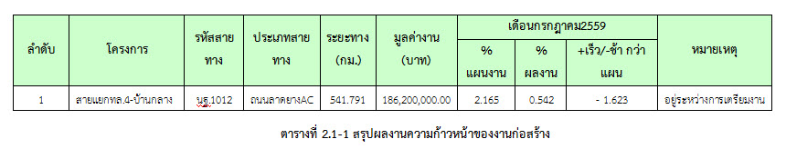 2.2 รายละเอียดของความก้าวหน้าในสายทาง