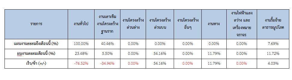 2.2 ความก้าวหน้าของงานก่อสร้างแยกตามรายการ