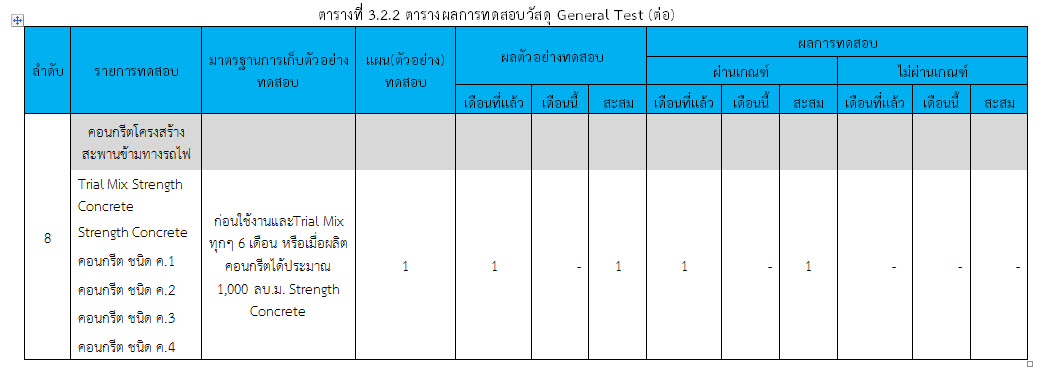 ในเดือน ตุลาคม 2559 ได้แสดงเกณฑ์การทดสอบ General Test และ Control Test แสดงไว้ในตารางที่ 3.2-1 – 3.2-3 ดังนี้3.2 การตรวจสอบการอนุมัติการใช้วัสดุ