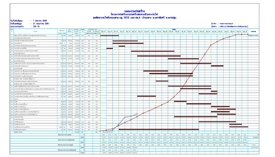 ที่ปรึกษาได้ติดตามความก้าวหน้าของงาน และนำมาจัดทำเป็น S-CURVE เปรียบเทียบกันระหว่างแผนงานและผลงานก่อสร้าง ดังรูปที่ 2.2-1