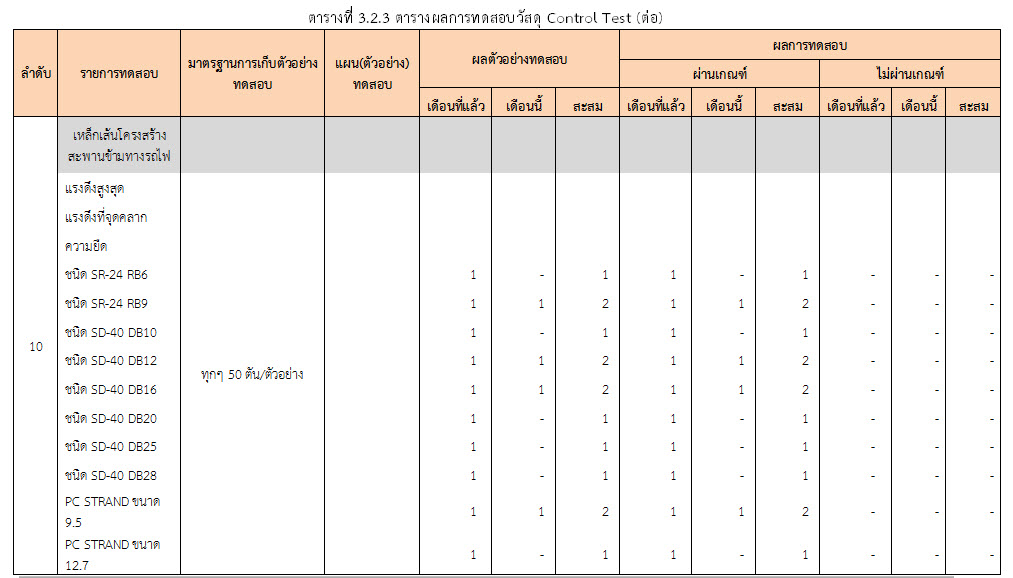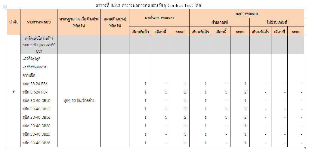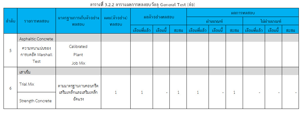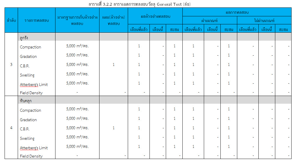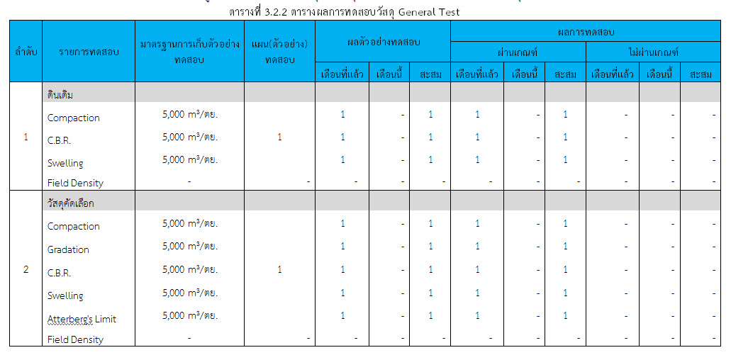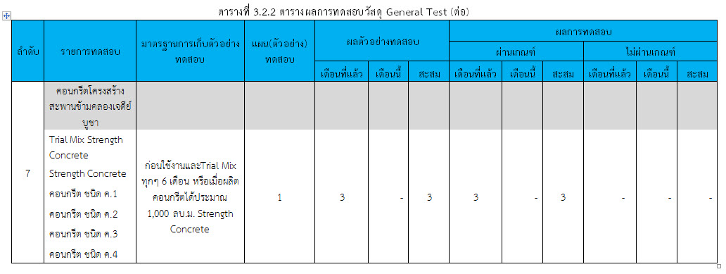 ในเดือน มกราคม 2560 ได้แสดงเกณฑ์การทดสอบ General Test และ Control Test แสดงไว้ในตารางที่ 3.2-1 – 3.2-3 ดังนี้