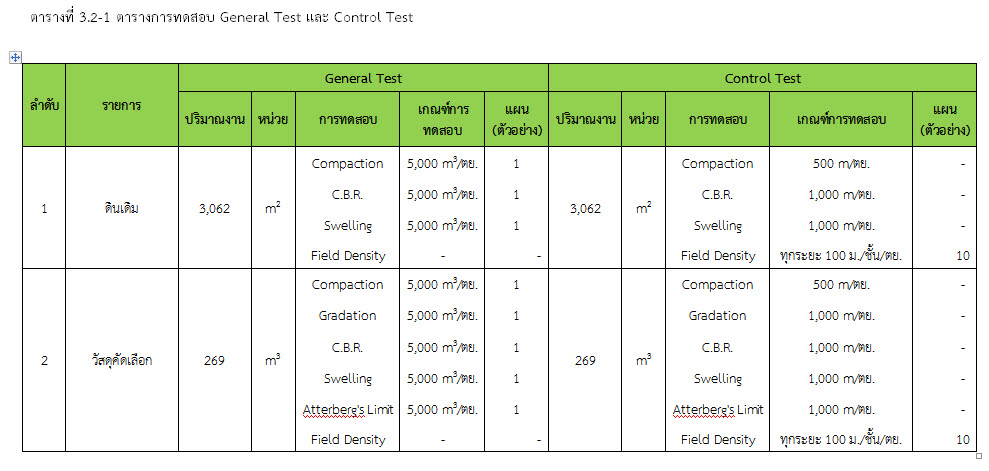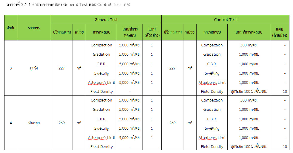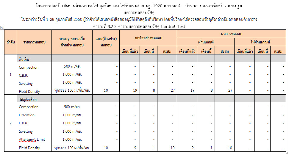ในระหว่างวันที่ 1-28 กุมภาพันธ์ 2560 ผู้ว่าจ้างได้เสนอหนังสือขออนุมัติใช้วัสดุถึงที่ปรึกษา โดยที่ปรึกษาได้ตรวจสอบวัสดุดังกล่าวมีผลทดสอบดังตาราง