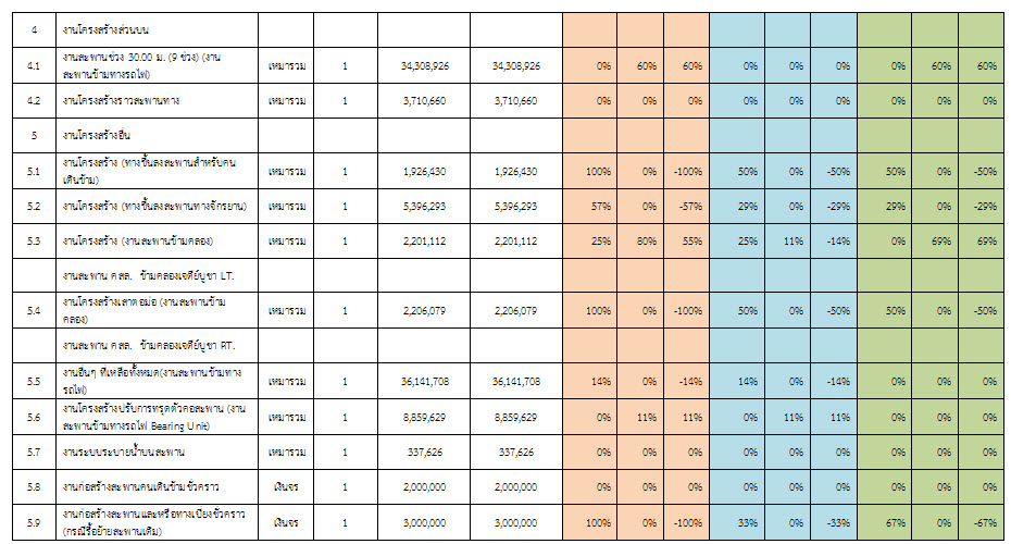 2.2 ความก้าวหน้าของงานก่อสร้างแยกตามรายการ