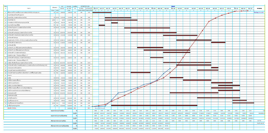 ที่ปรึกษาได้ติดตามความก้าวหน้าของงาน และนำมาจัดทำเป็น S-CURVE เปรียบเทียบกันระหว่างแผนงานและผลงานก่อสร้าง ดังรูปที่ 2.2-1