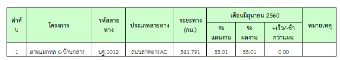 ความก้าวหน้าในช่วงเดือนมิถุนายน 2560 (55.01%) ผลงานความก้าวหน้าแสดงไว้ในตารางที่ 3.1-1 ดังนี้