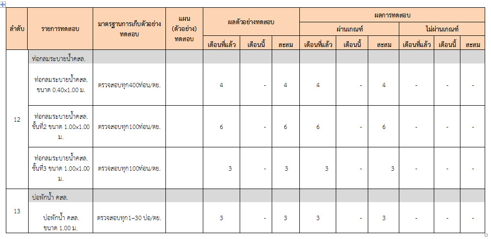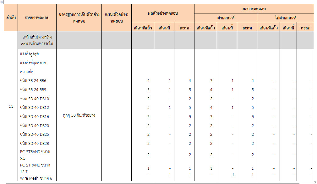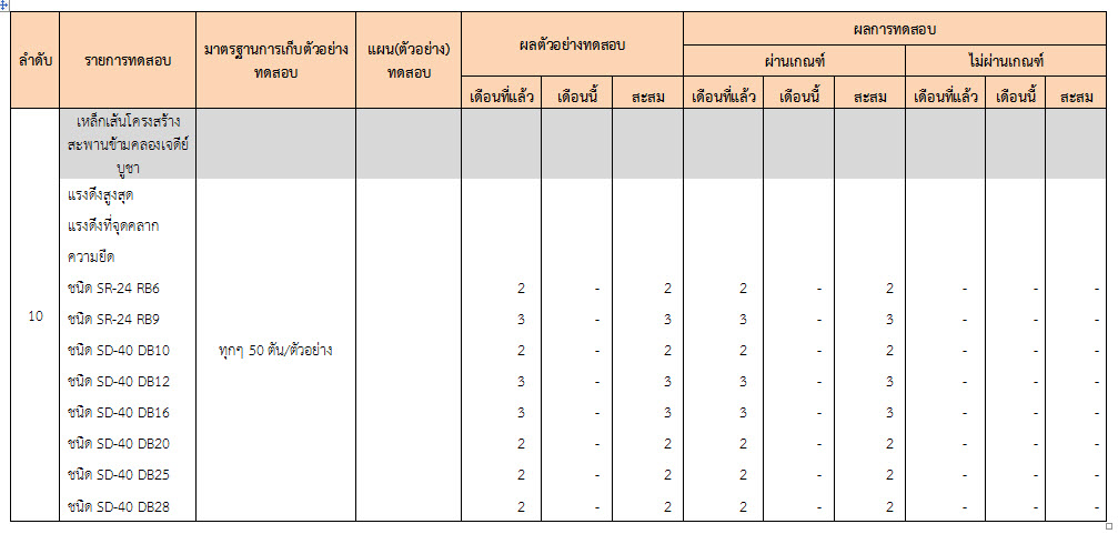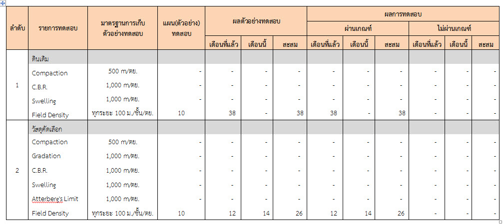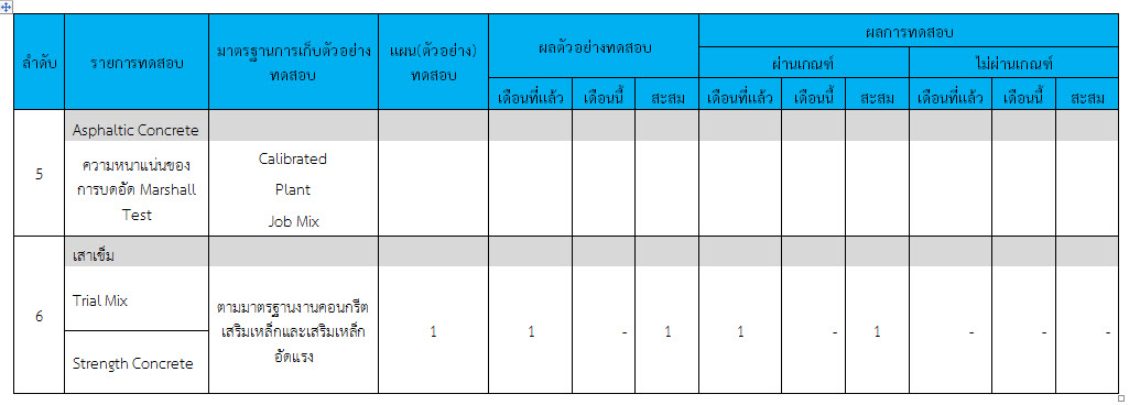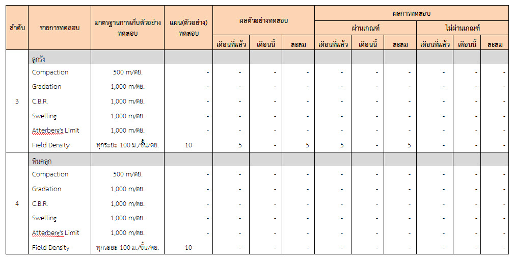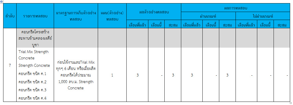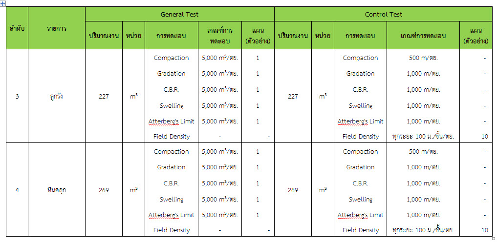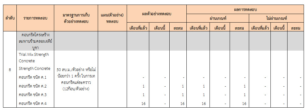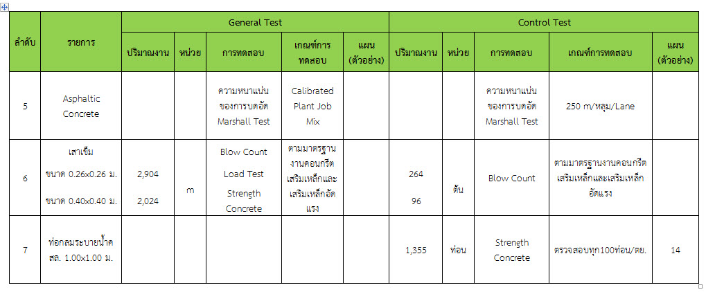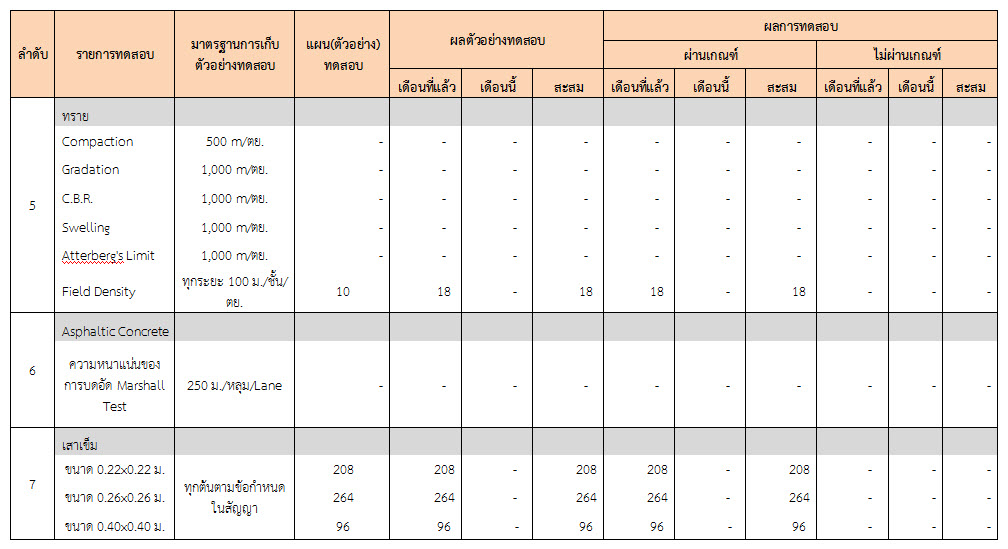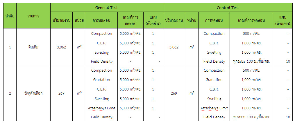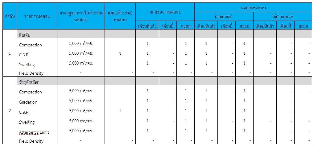 ในระหว่างวันที่ 1-30 มิถุนายน 2560 ผู้ว่าจ้างได้เสนอหนังสือขออนุมัติใช้วัสดุถึงที่ปรึกษา โดยที่ปรึกษาได้ตรวจสอบวัสดุดังกล่าวมีผลทดสอบดังตาราง