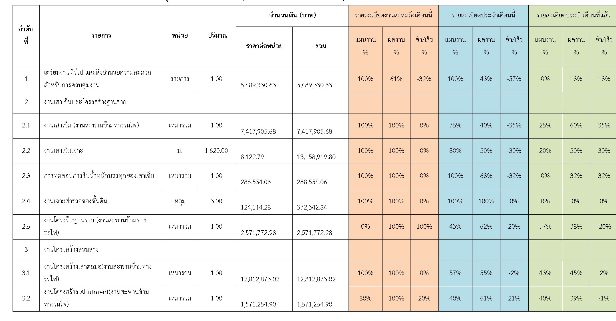 ตารางที่ 2.1-1 สรุปผลงานความก้าวหน้าของงานก่อสร้าง