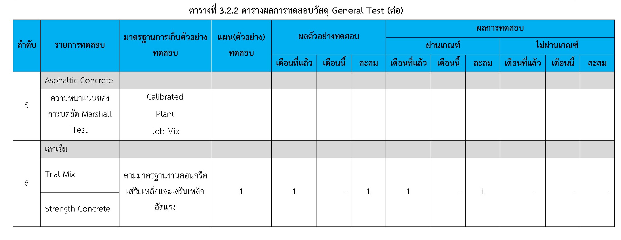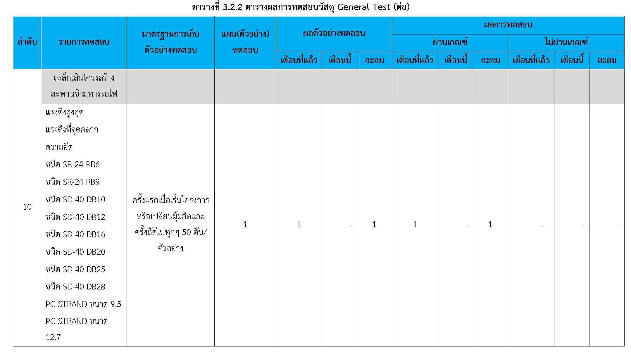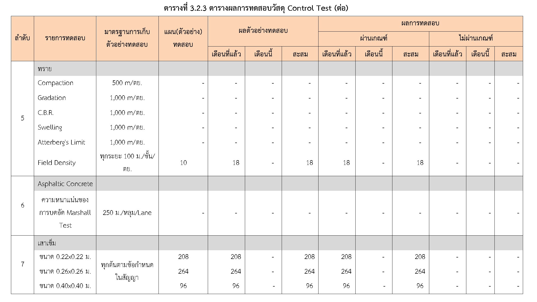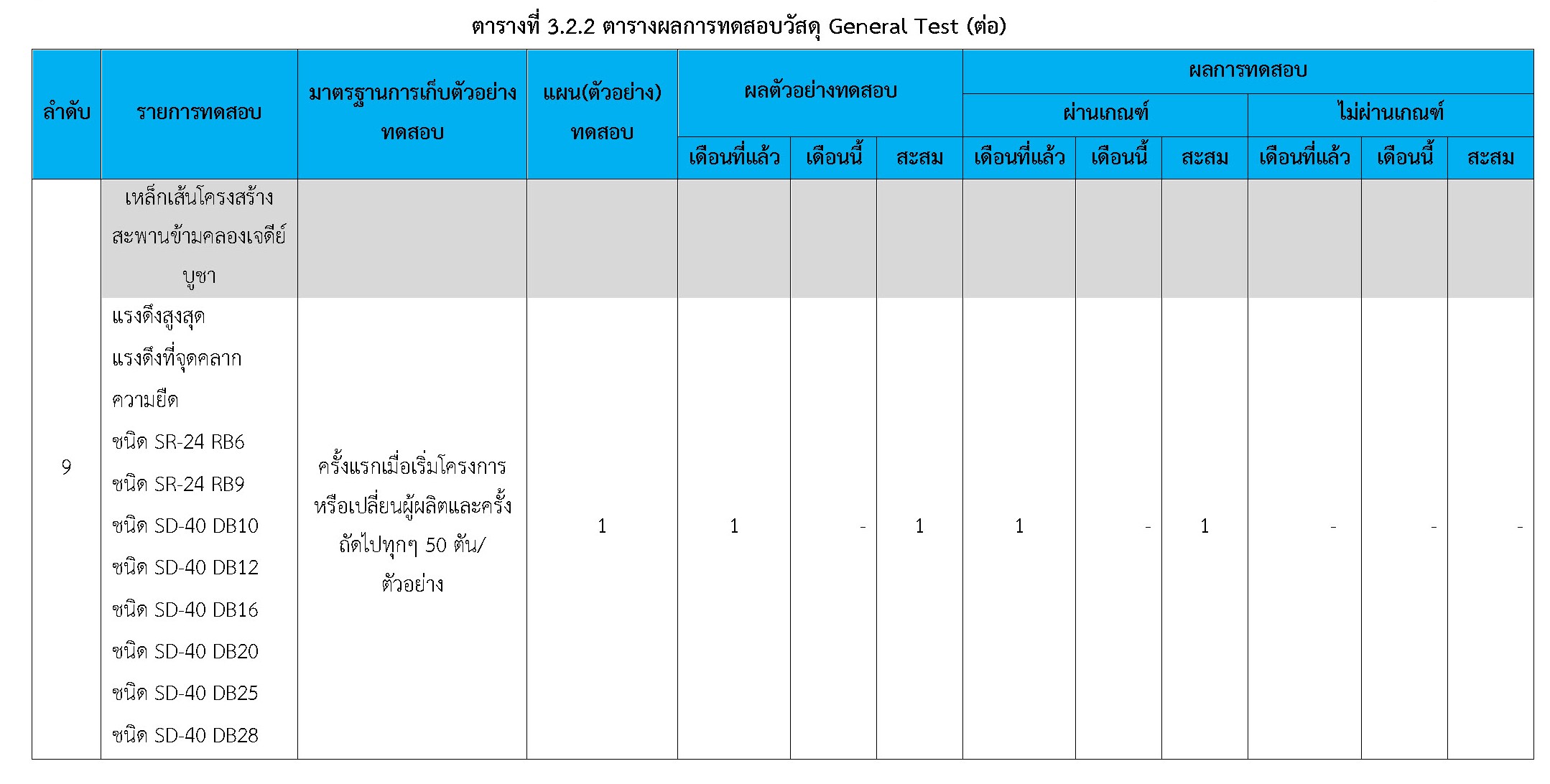 ในระหว่างวันที่ 1-30 กันยายน 2560 ผู้ว่าจ้างได้เสนอหนังสือขออนุมัติใช้วัสดุถึงที่ปรึกษา โดยที่ปรึกษาได้ตรวจสอบวัสดุดังกล่าวมีผลทดสอบดังตาราง
