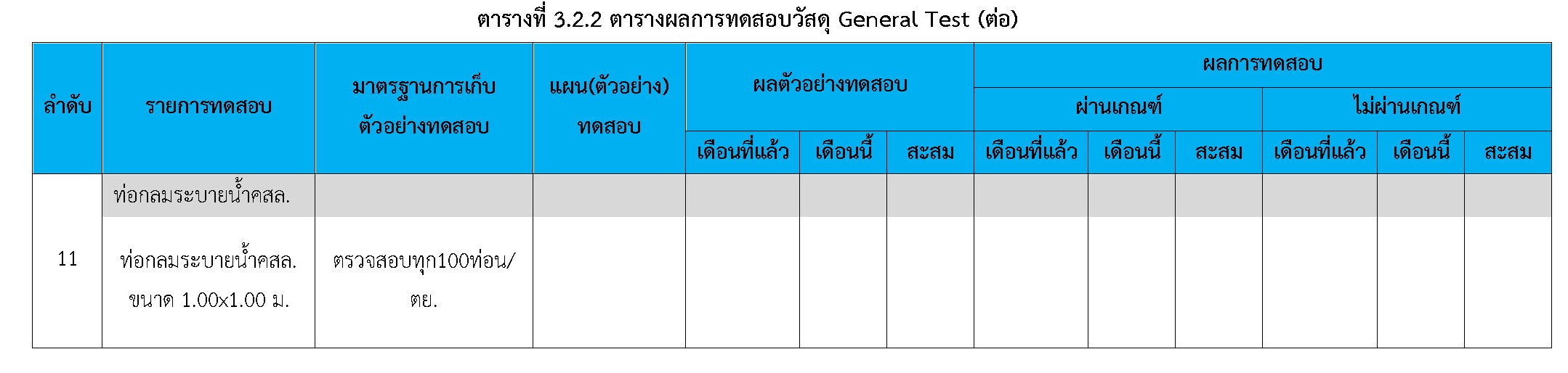 ในเดือน กันยายน 2560 ได้แสดงเกณฑ์การทดสอบ General Test และ Control Test แสดงไว้ในตารางที่ 3.2-1 – 3.2-3 ดังนี้