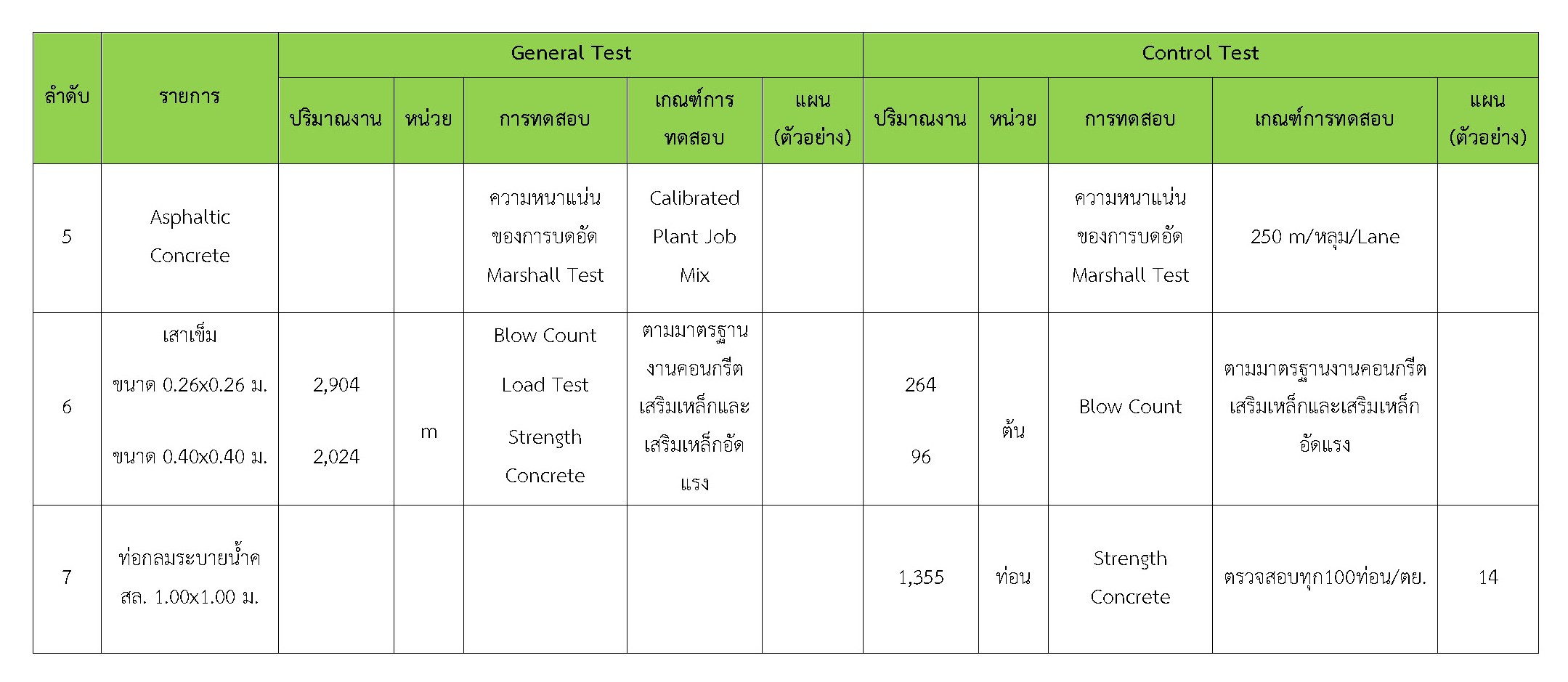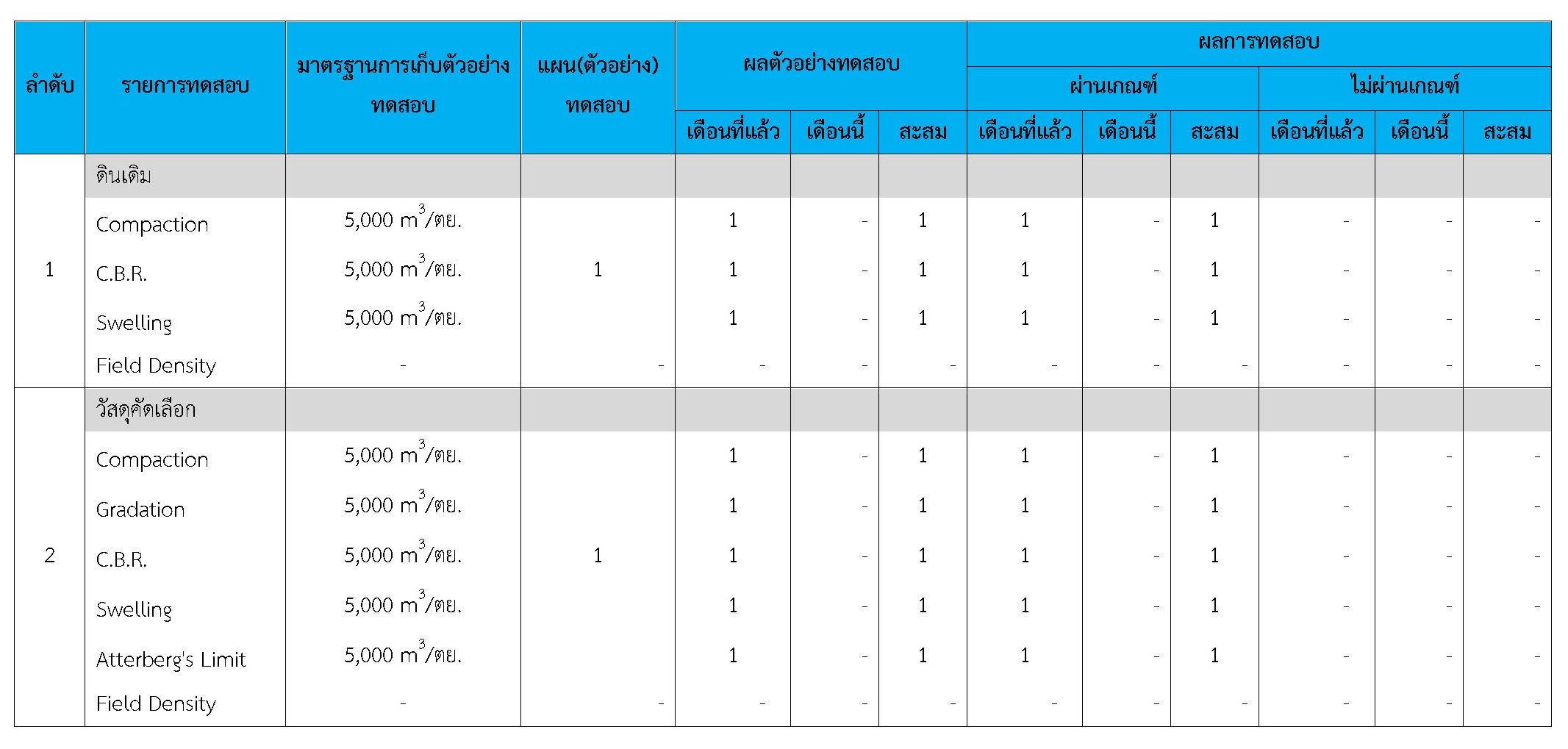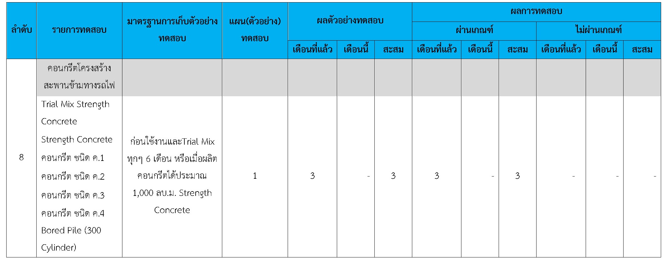 ในระหว่างวันที่ 1-31 ตุลาคม 2560 ผู้ว่าจ้างได้เสนอหนังสือขออนุมัติใช้วัสดุถึงที่ปรึกษา โดยที่ปรึกษาได้ตรวจสอบวัสดุดังกล่าวมีผลทดสอบดังตาราง