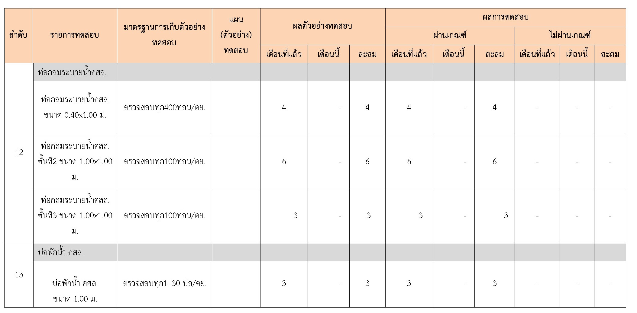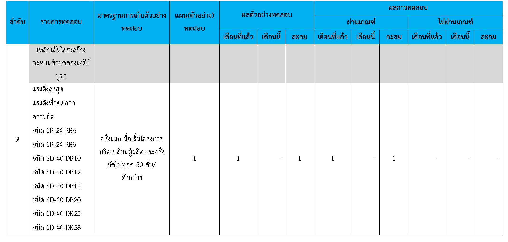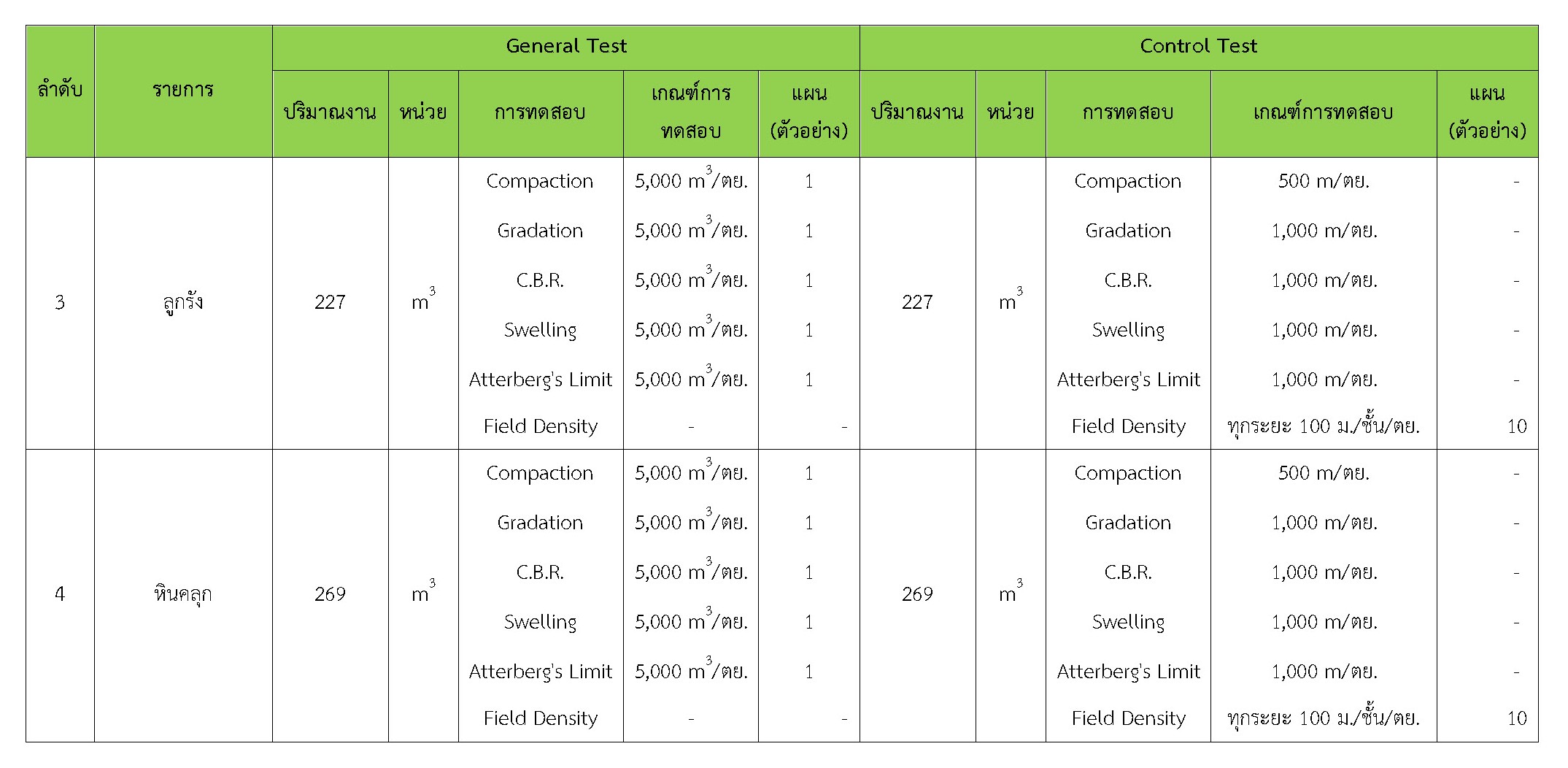 ในระหว่างวันที่ 1-31 ตุลาคม 2560 ผู้ว่าจ้างได้เสนอหนังสือขออนุมัติใช้วัสดุถึงที่ปรึกษา โดยที่ปรึกษาได้ตรวจสอบวัสดุดังกล่าวมีผลทดสอบดังตาราง