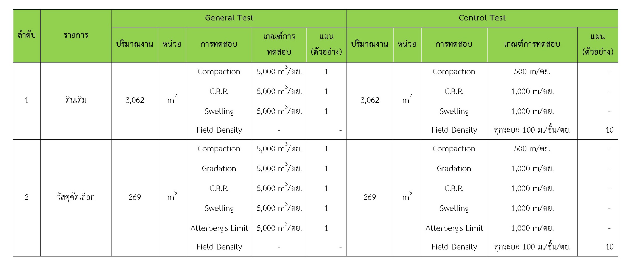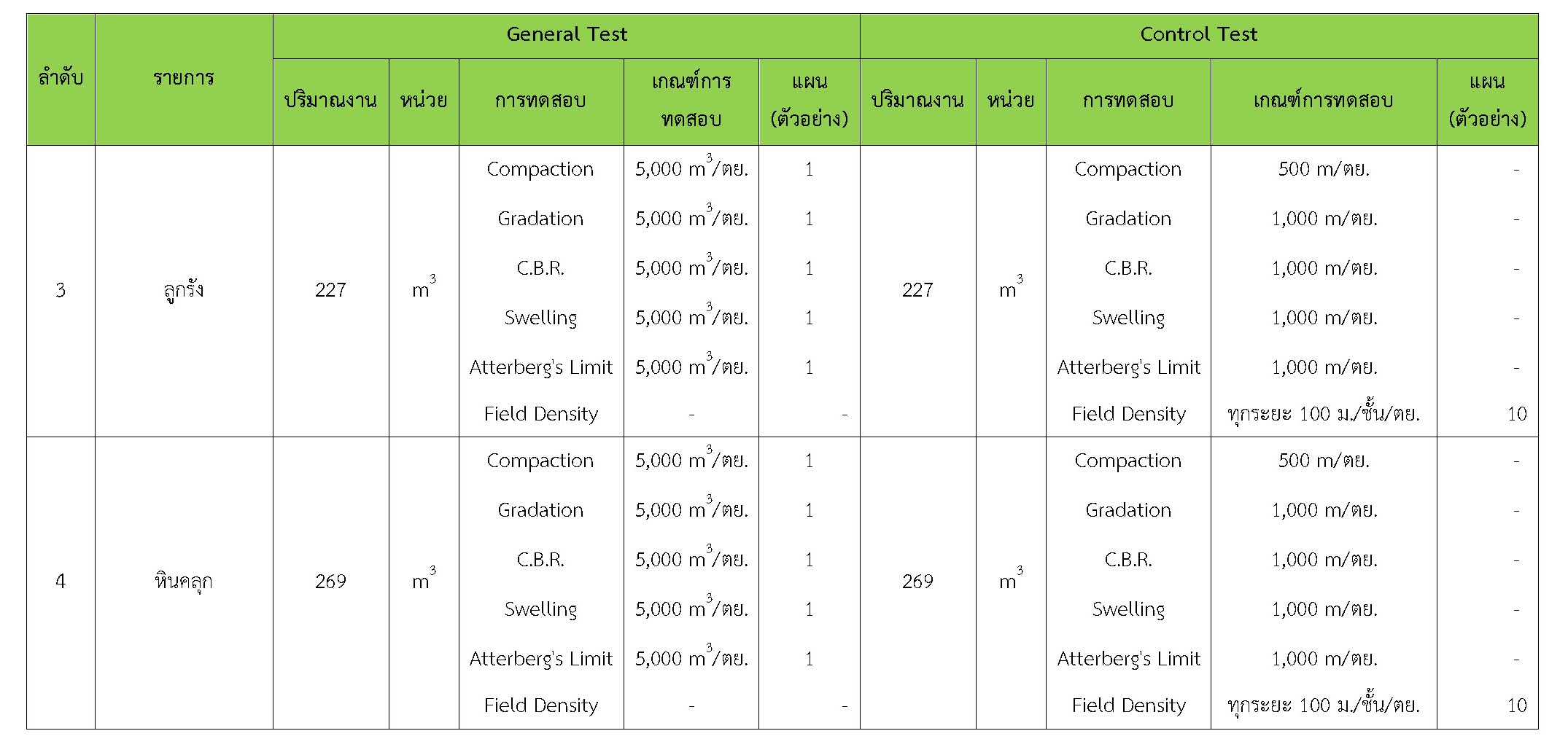 ในเดือน ธันวาคม 2560 ได้แสดงเกณฑ์การทดสอบ General Test และ Control Test แสดงไว้ในตารางที่ 3.2-1 – 3.2-3 ดังนี้