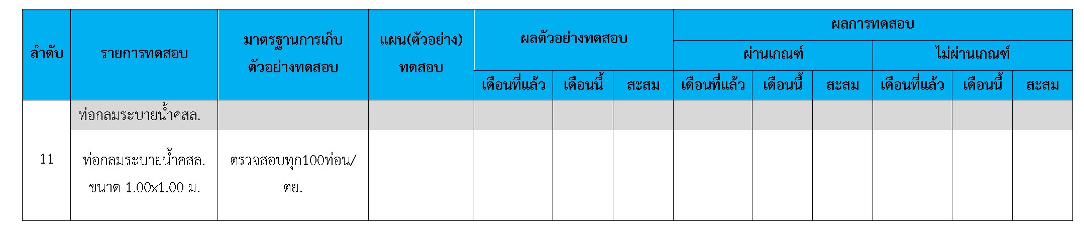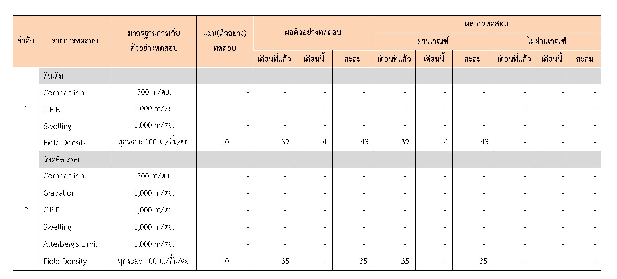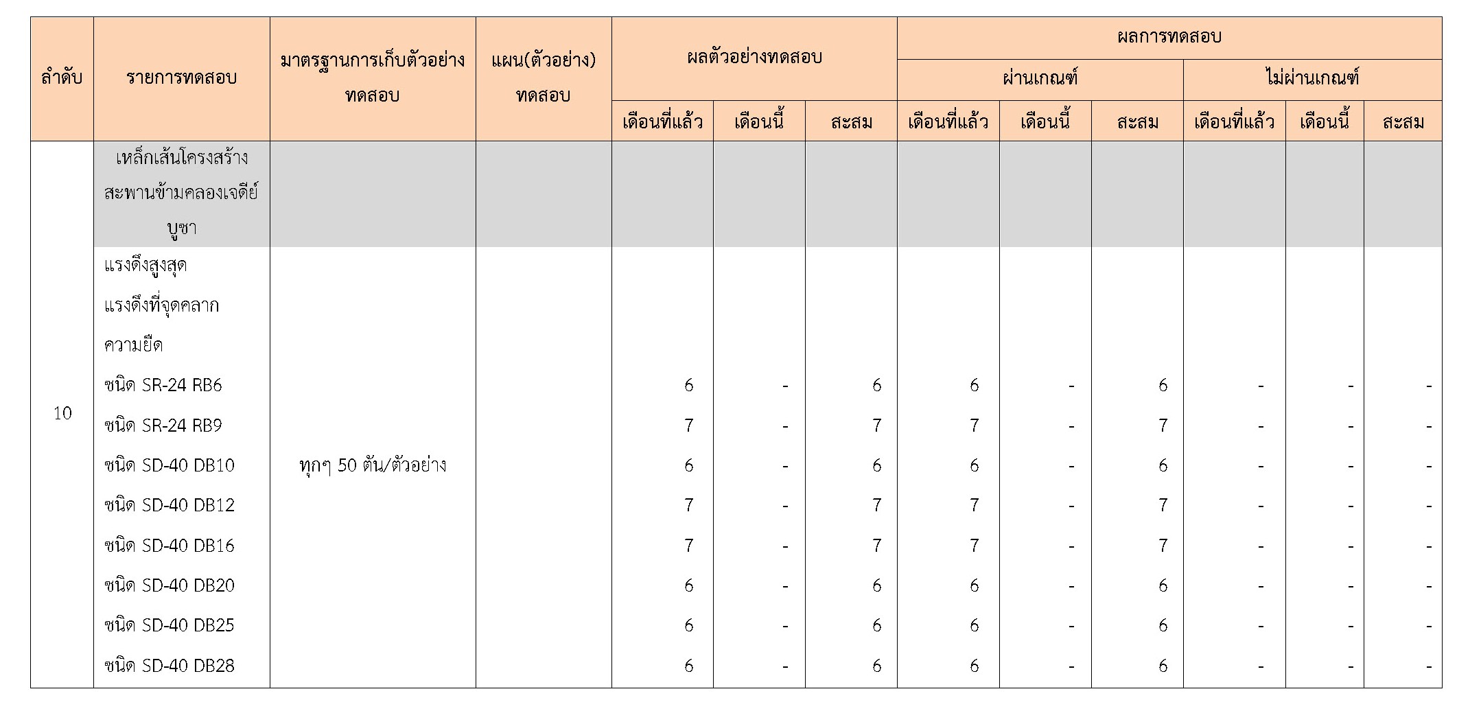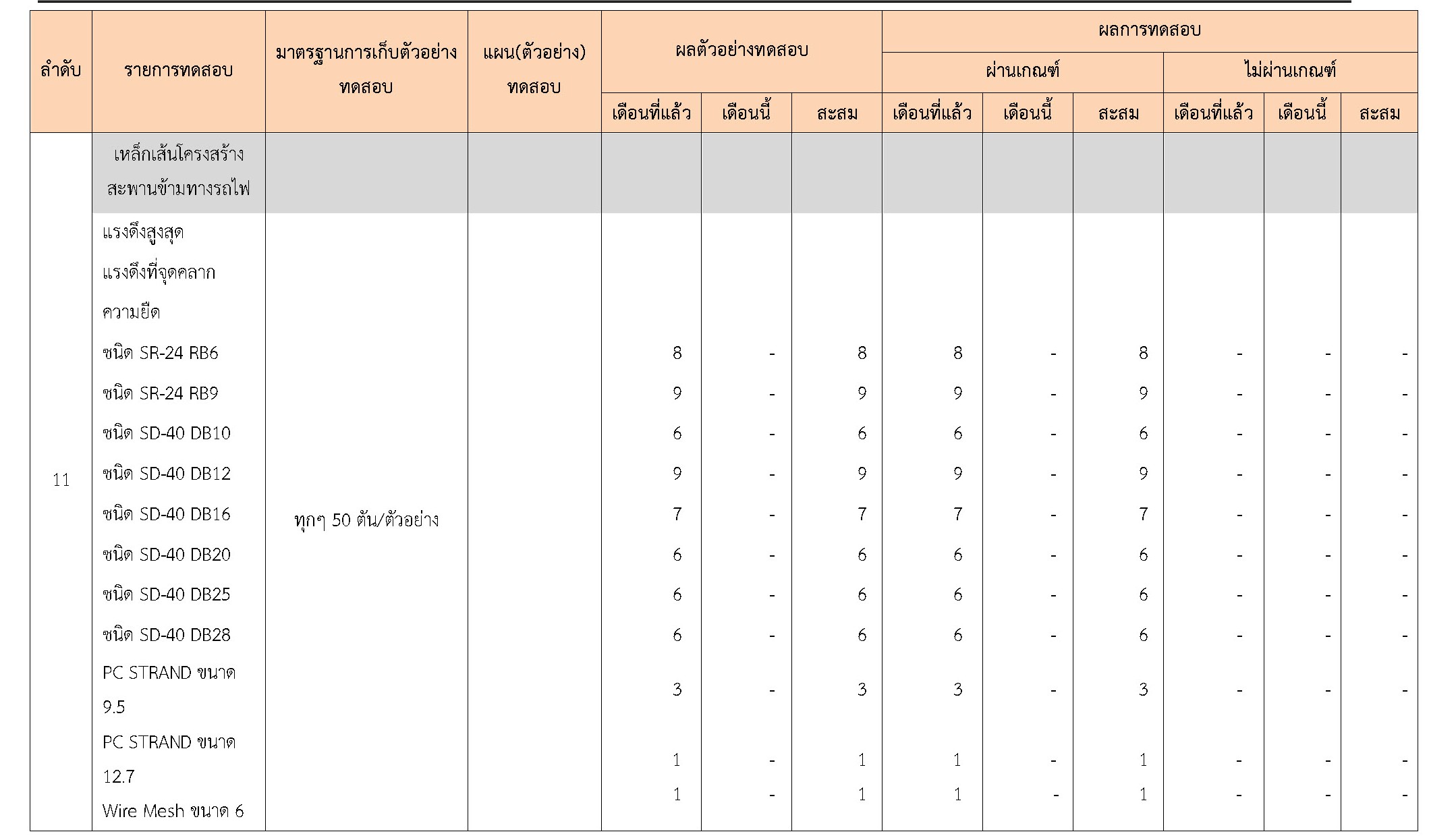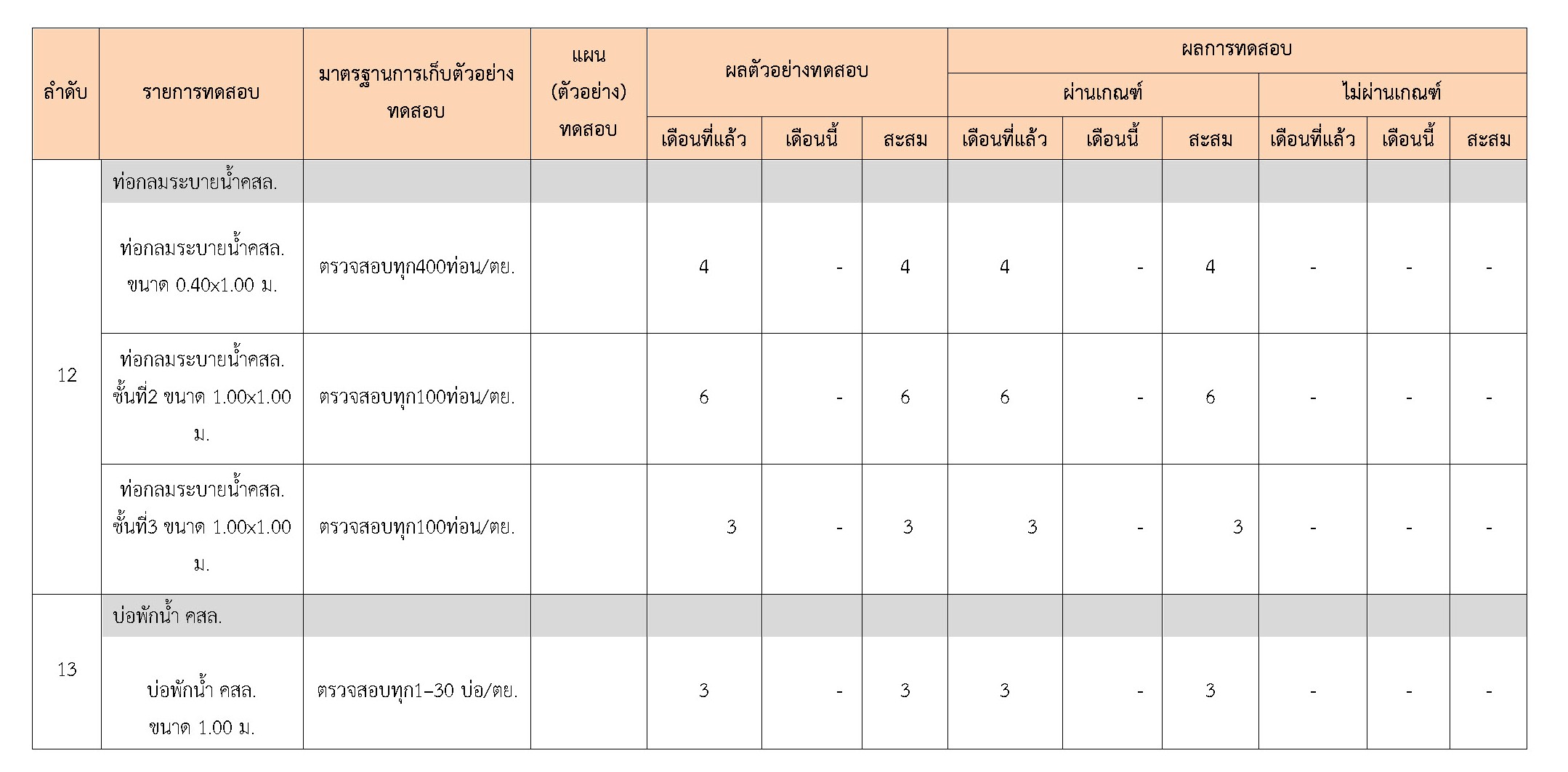 ในระหว่างวันที่ 1-31 ธันวาคม 2560 ผู้ว่าจ้างได้เสนอหนังสือขออนุมัติใช้วัสดุถึงที่ปรึกษา โดยที่ปรึกษาได้ตรวจสอบวัสดุดังกล่าวมีผลทดสอบดังตาราง