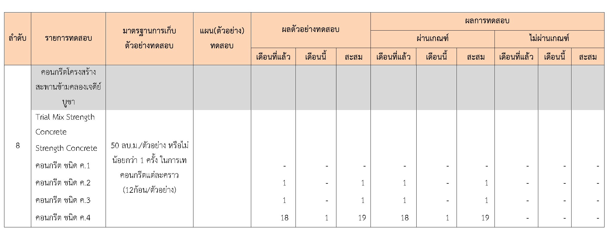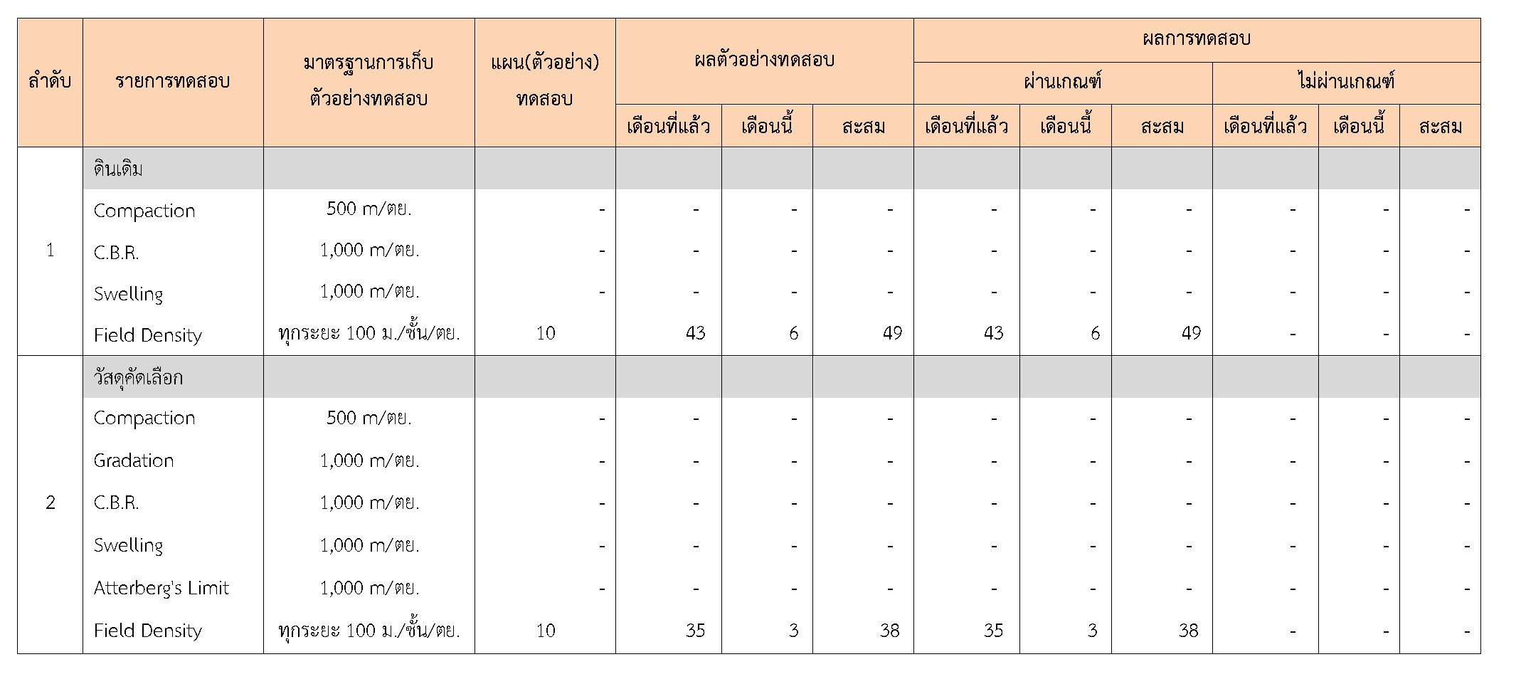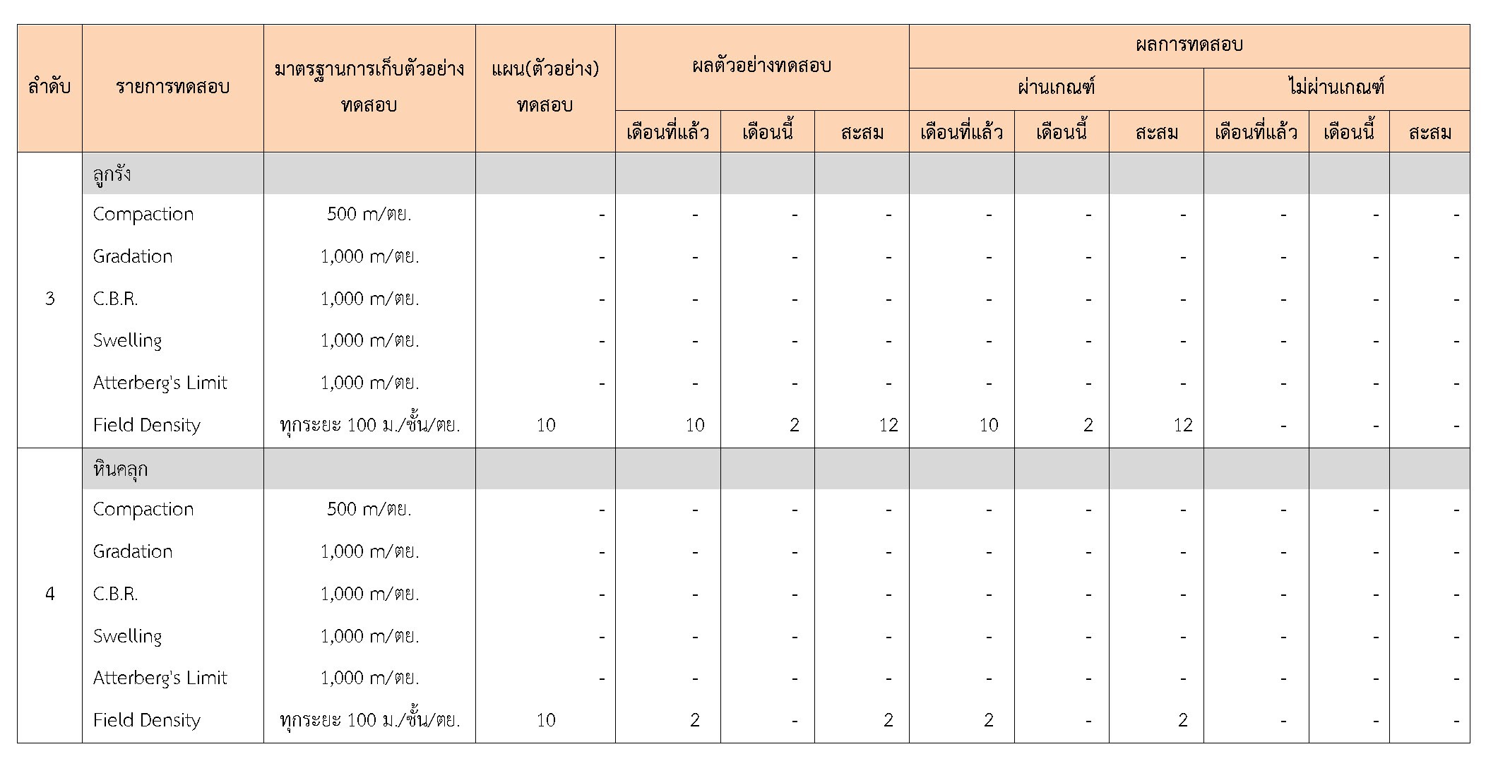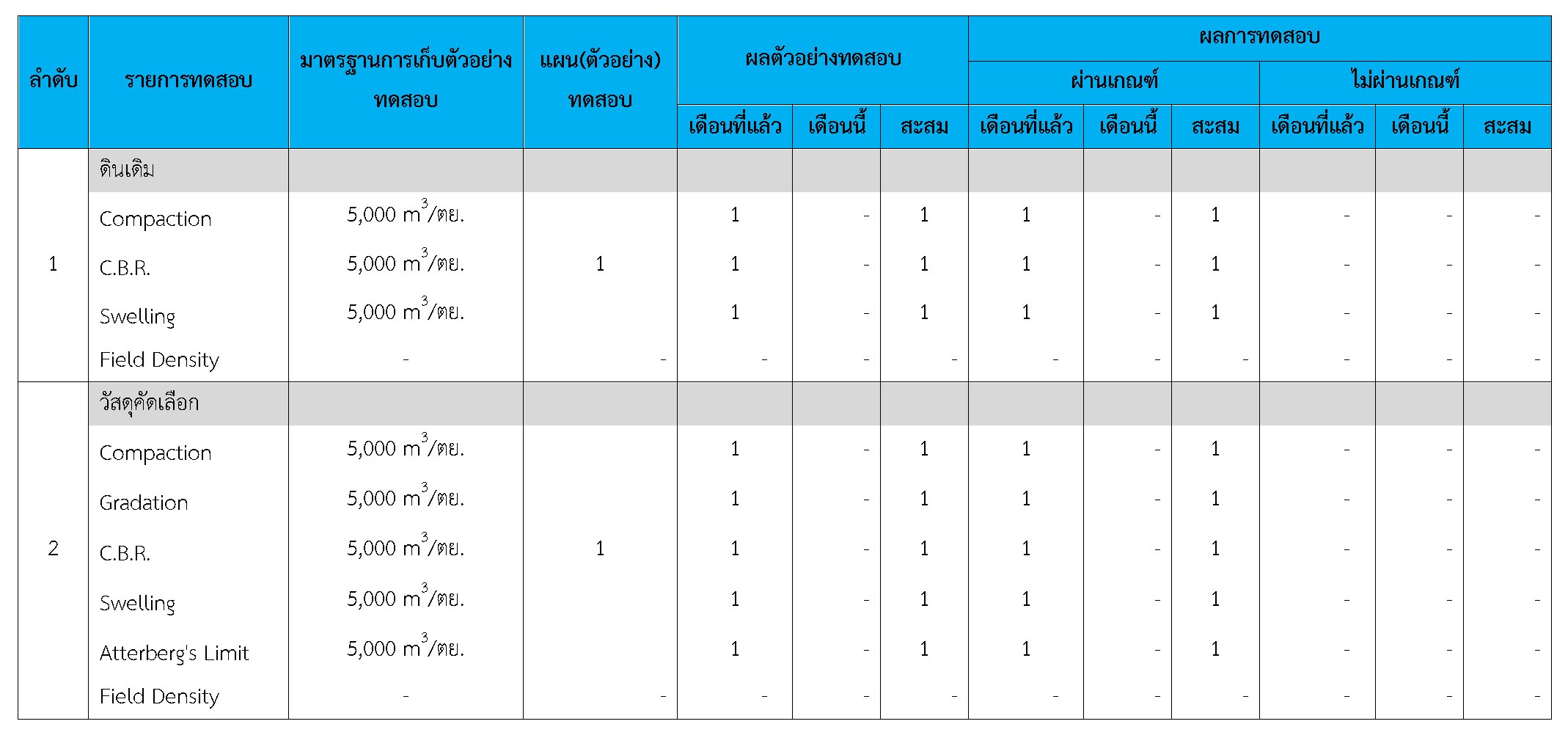 ในระหว่างวันที่ 1-31 มกราคม 2561 ผู้ว่าจ้างได้เสนอหนังสือขออนุมัติใช้วัสดุถึงที่ปรึกษา โดยที่ปรึกษาได้ตรวจสอบวัสดุดังกล่าวมีผลทดสอบดังตาราง