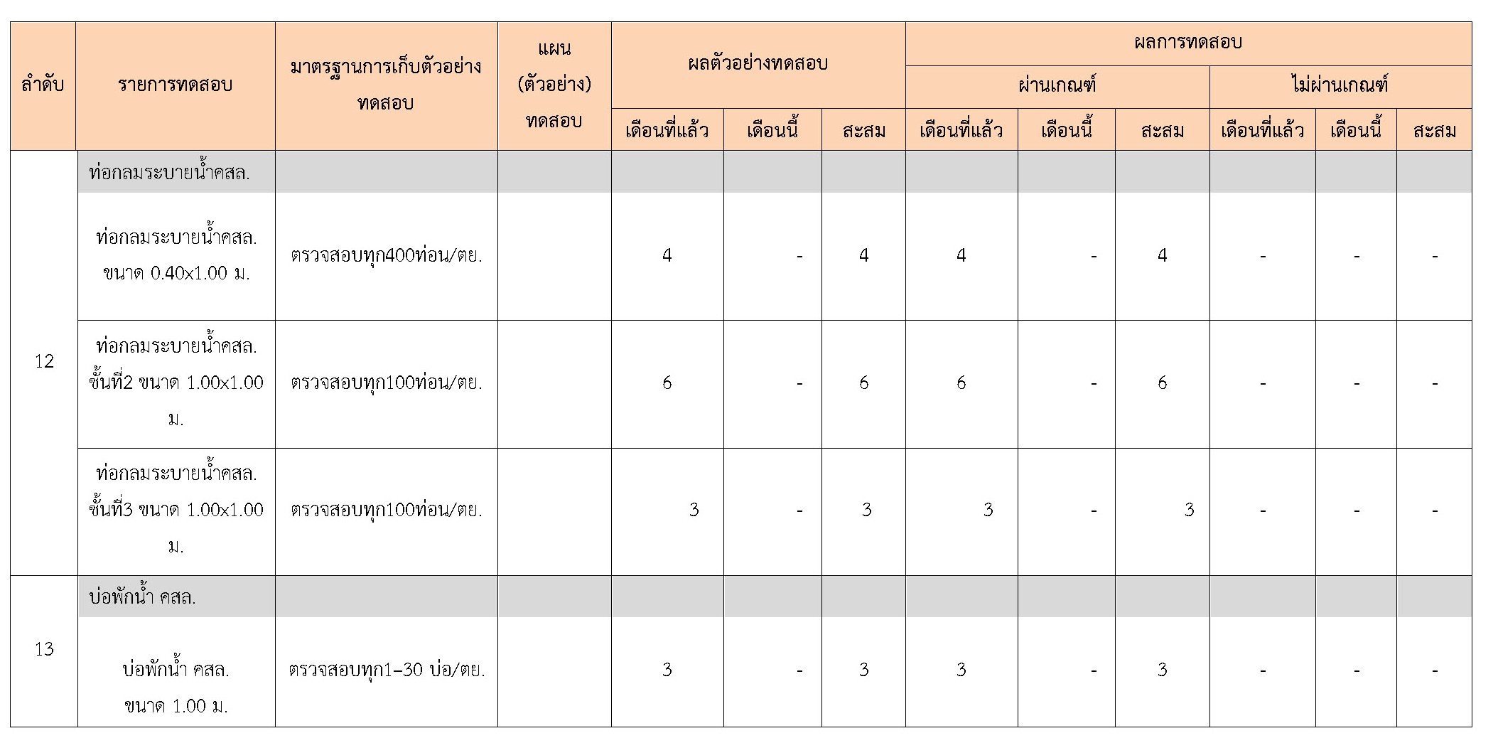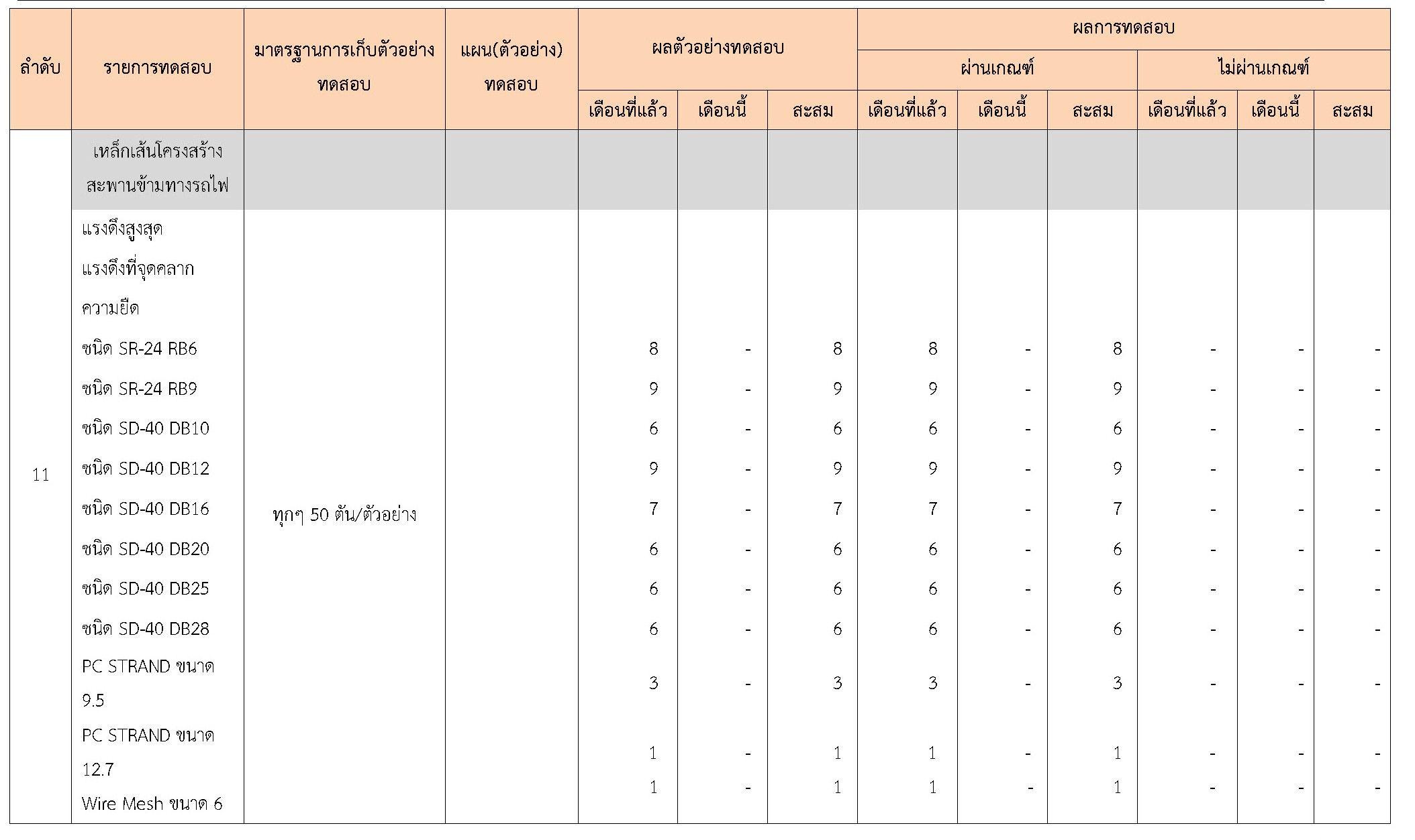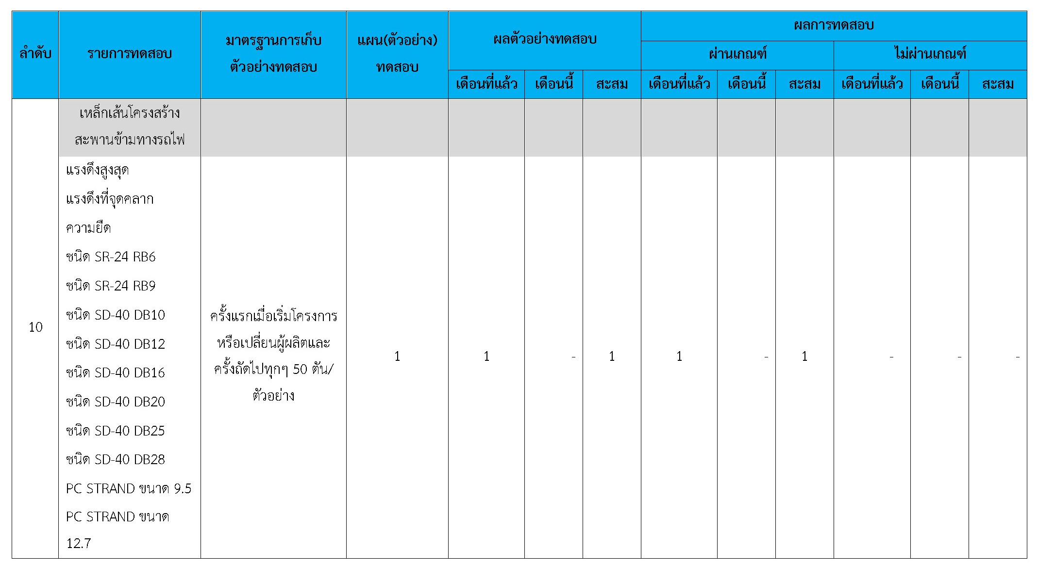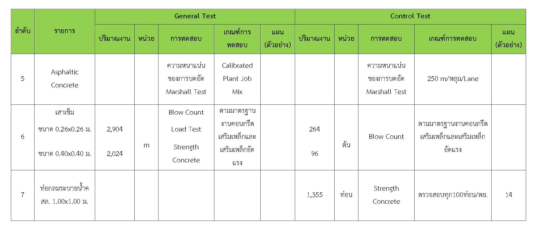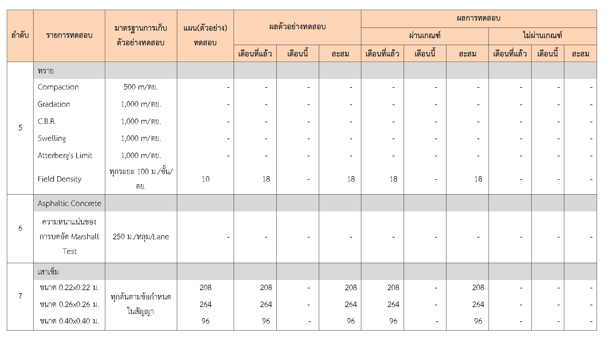 ในระหว่างวันที่ 1-31 มกราคม 2561 ผู้ว่าจ้างได้เสนอหนังสือขออนุมัติใช้วัสดุถึงที่ปรึกษา โดยที่ปรึกษาได้ตรวจสอบวัสดุดังกล่าวมีผลทดสอบดังตาราง