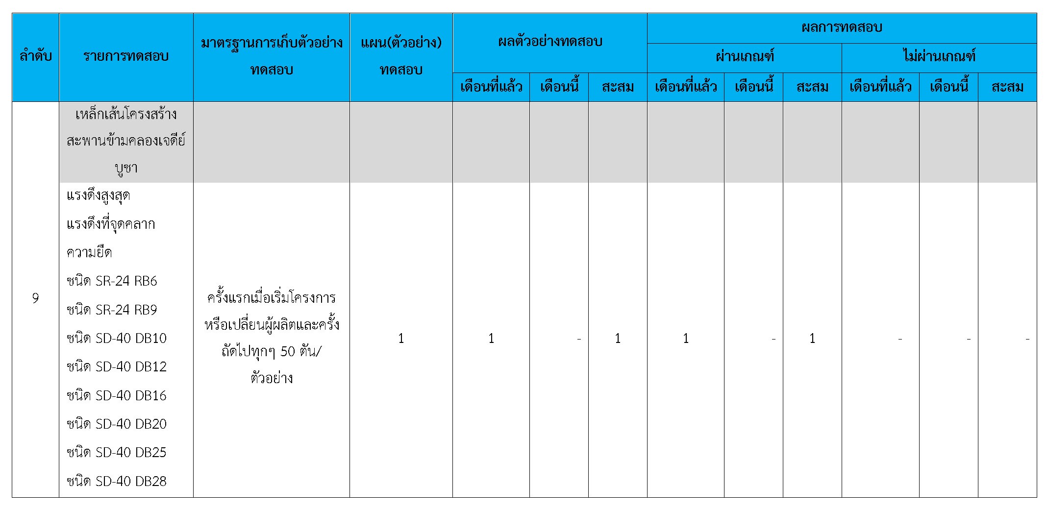 ในระหว่างวันที่ 1-31 มกราคม 2560 ผู้ว่าจ้างได้เสนอหนังสือขออนุมัติใช้วัสดุถึงที่ปรึกษา โดยที่ปรึกษาได้ตรวจสอบวัสดุดังกล่าวมีผลทดสอบดังตาราง