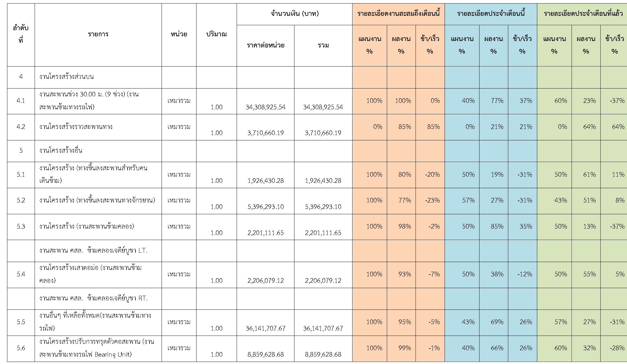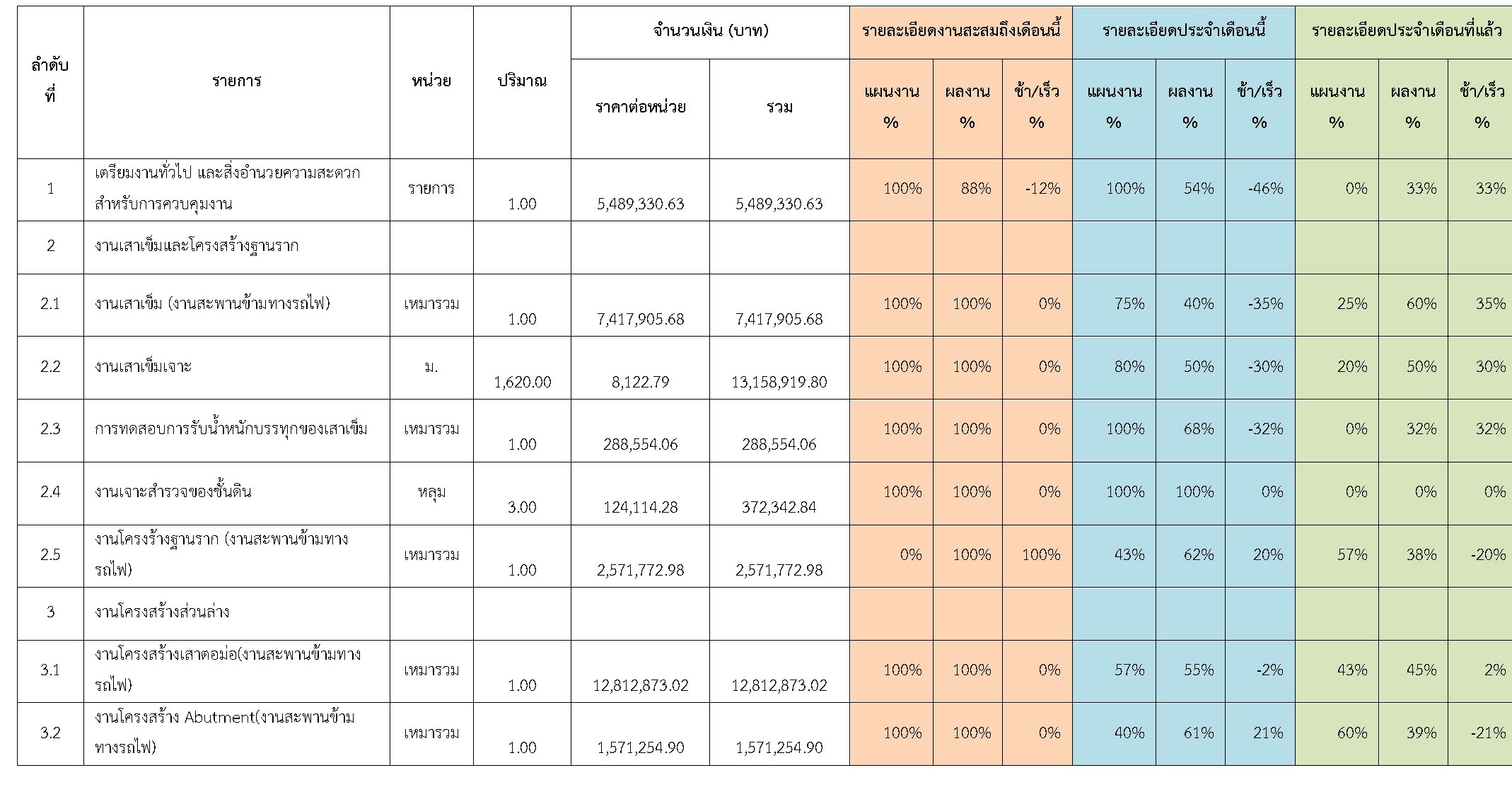 2.2 ความก้าวหน้าของงานก่อสร้างแยกตามรายการ