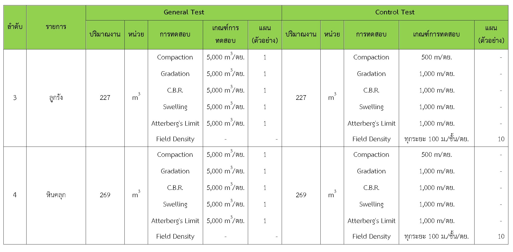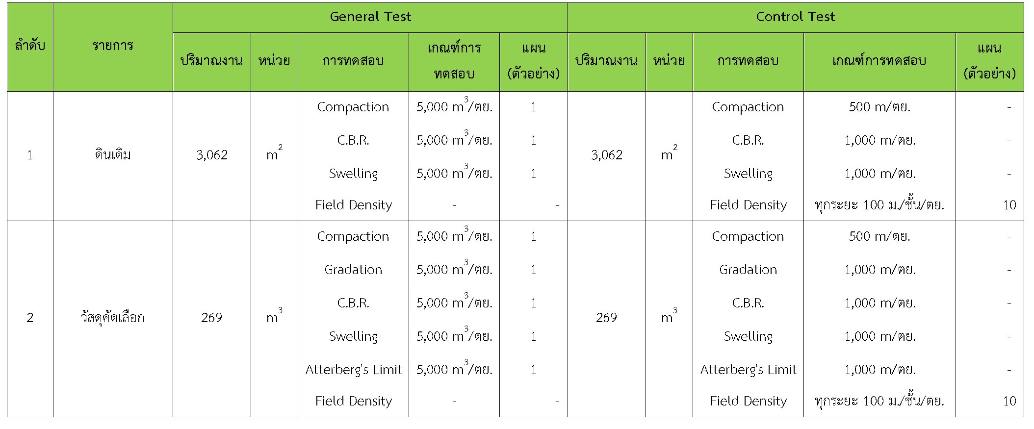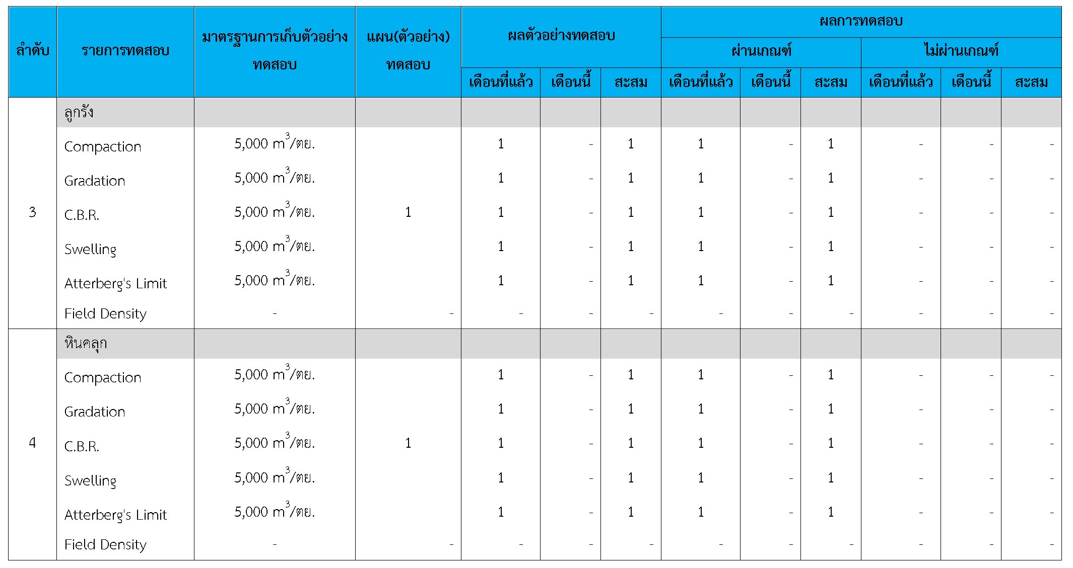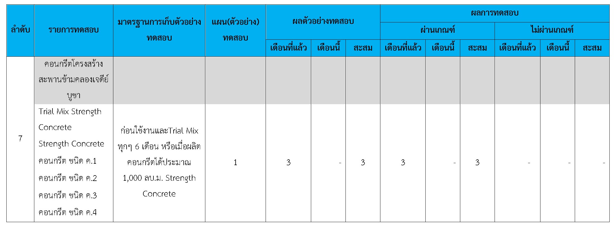 ในระหว่างวันที่ 1-28 กุมภาพันธ์ 2561 ผู้ว่าจ้างได้เสนอหนังสือขออนุมัติใช้วัสดุถึงที่ปรึกษา โดยที่ปรึกษาได้ตรวจสอบวัสดุดังกล่าวมีผลทดสอบดังตาราง