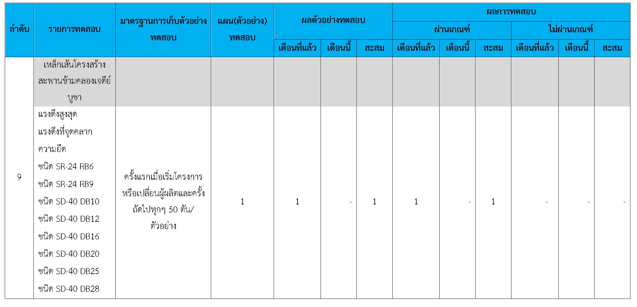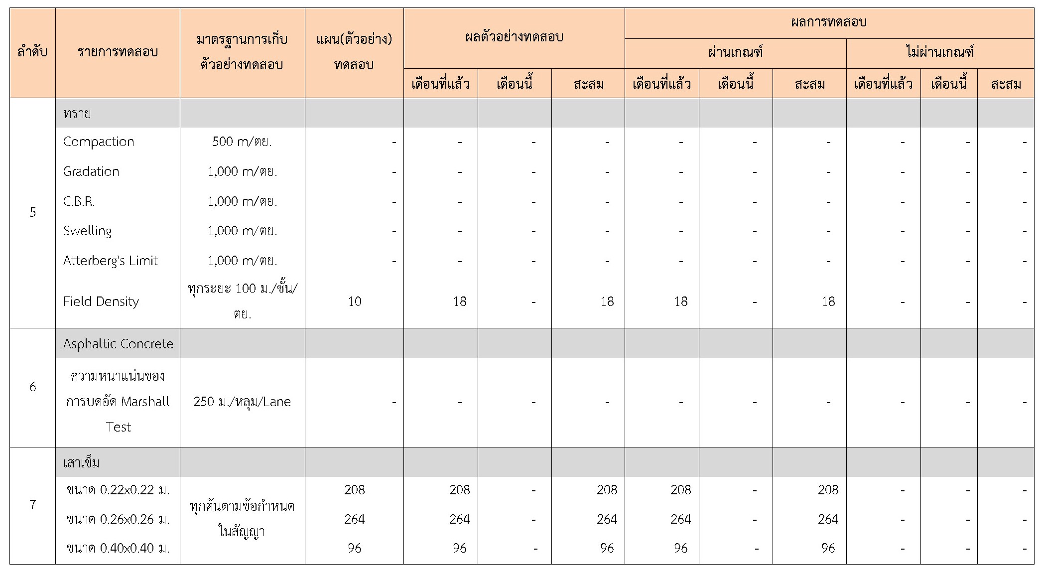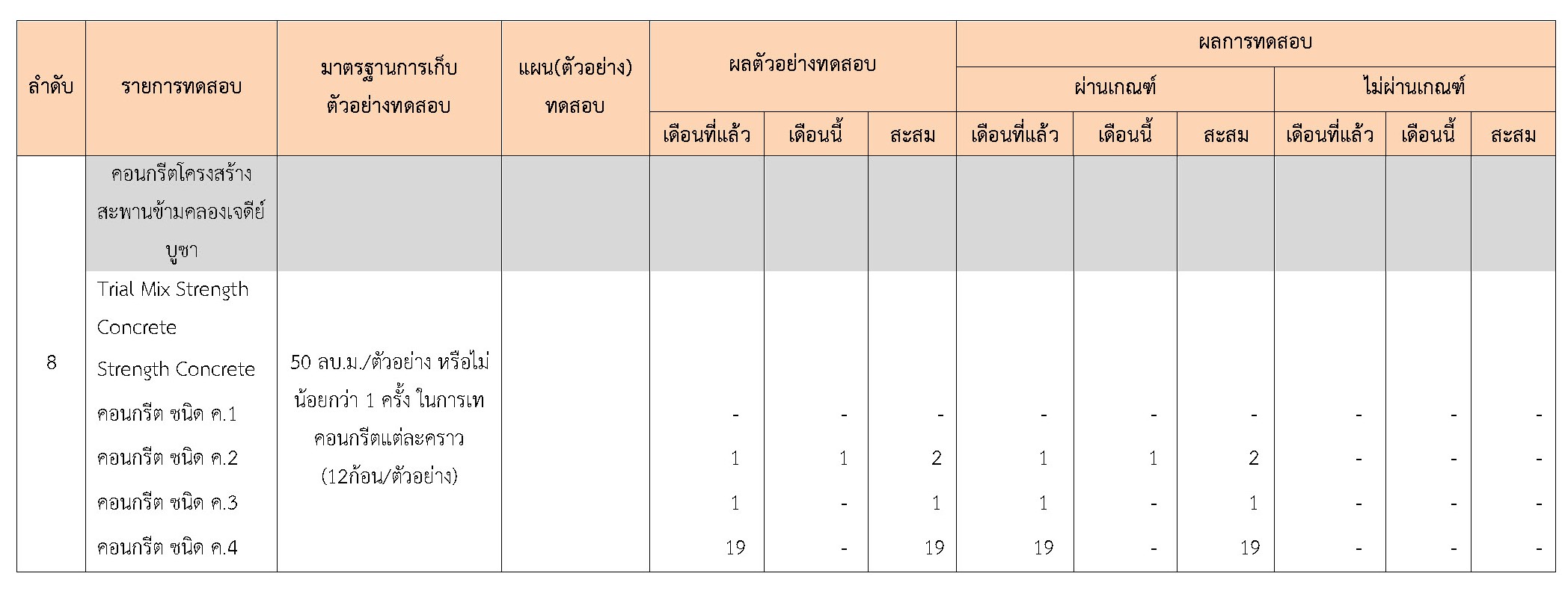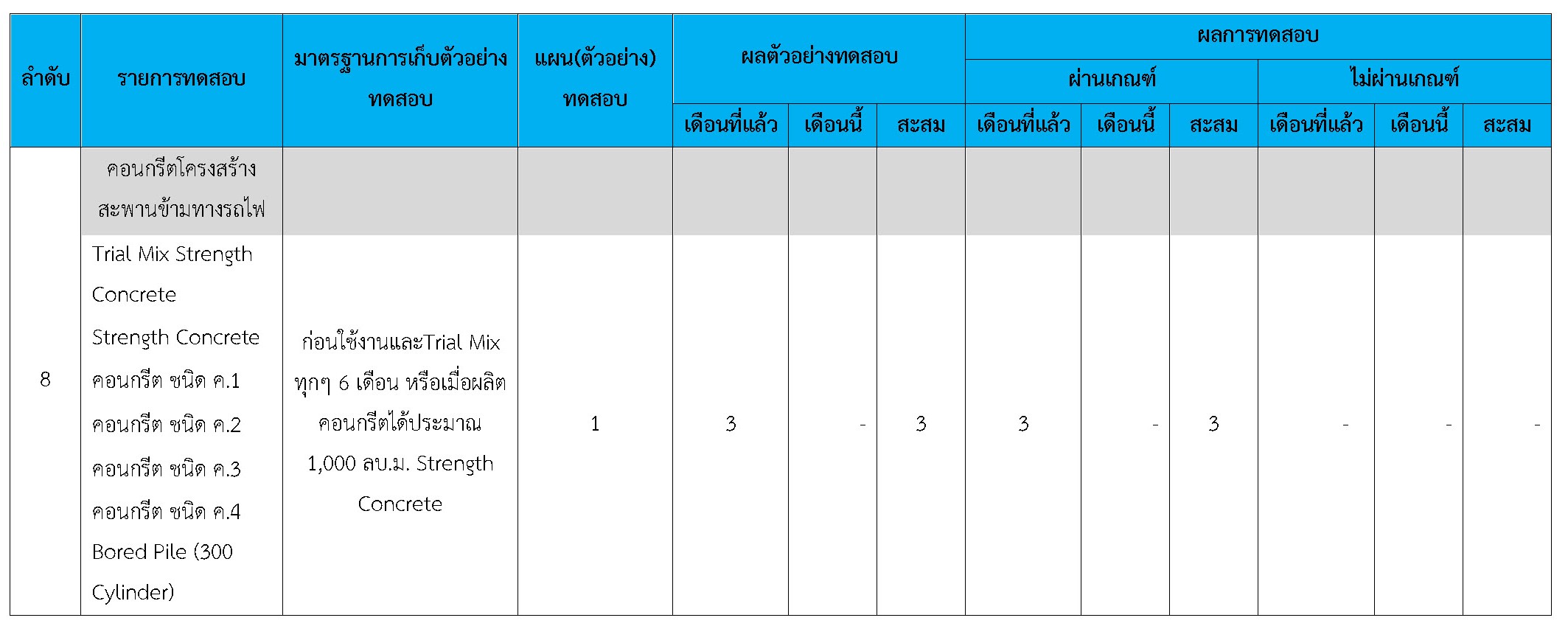 ในระหว่างวันที่ 1-28 กุมภาพันธ์ 2561 ผู้ว่าจ้างได้เสนอหนังสือขออนุมัติใช้วัสดุถึงที่ปรึกษา โดยที่ปรึกษาได้ตรวจสอบวัสดุดังกล่าวมีผลทดสอบดังตาราง