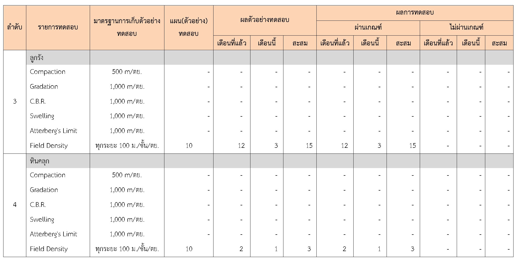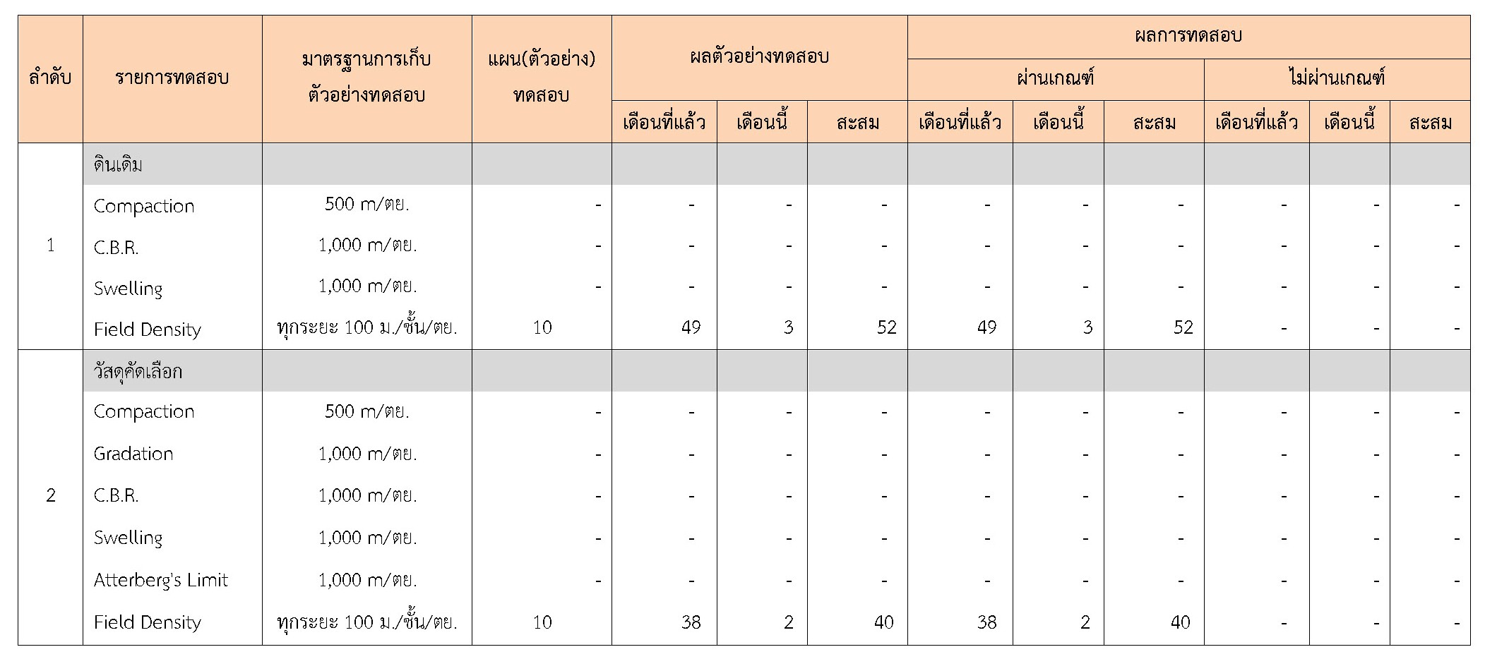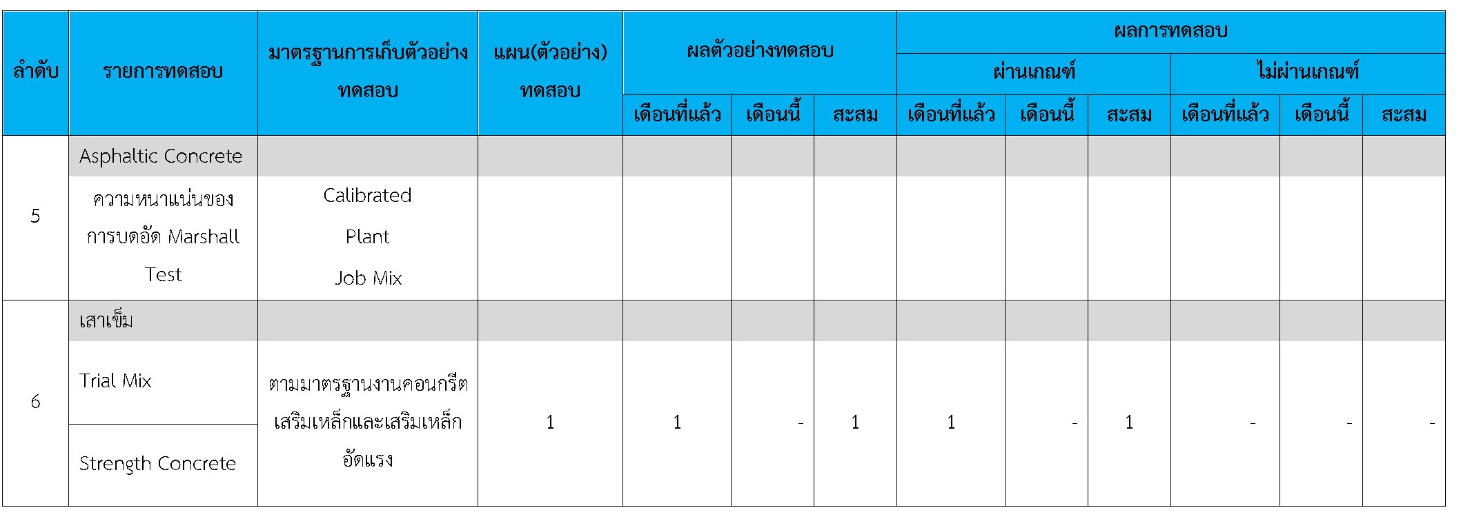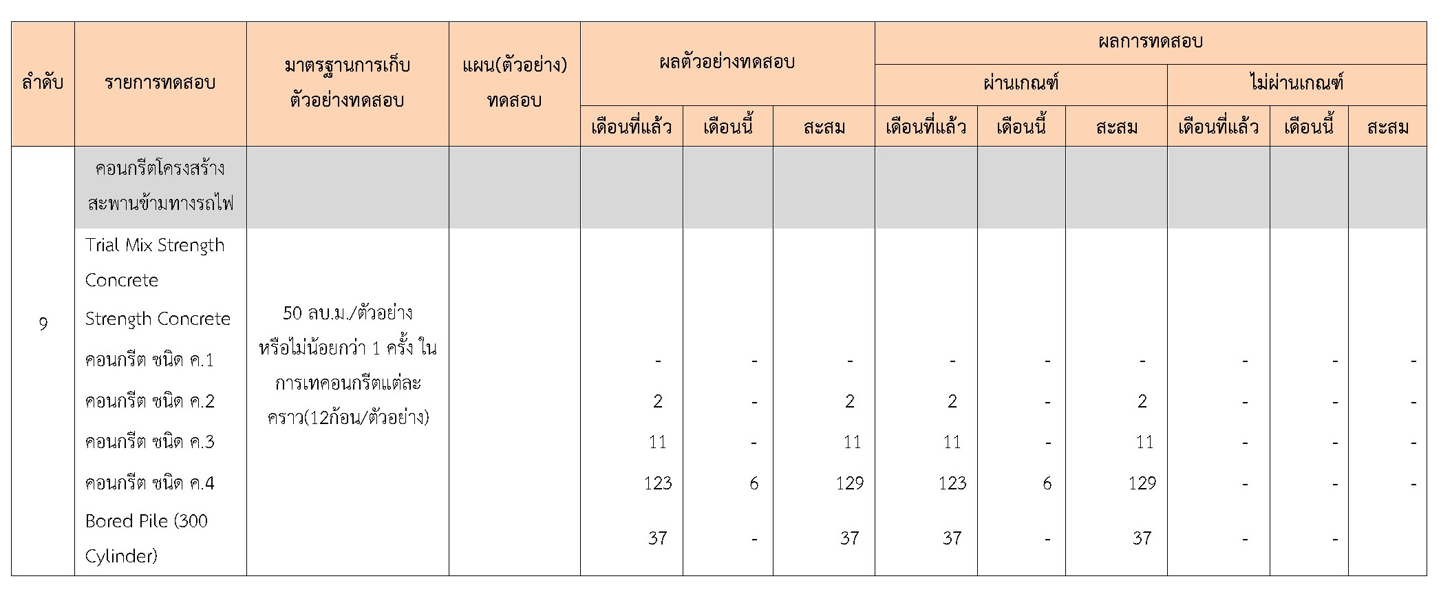 ในระหว่างวันที่ 1-28 กุมภาพันธ์ 2561 ผู้ว่าจ้างได้เสนอหนังสือขออนุมัติใช้วัสดุถึงที่ปรึกษา โดยที่ปรึกษาได้ตรวจสอบวัสดุดังกล่าวมีผลทดสอบดังตาราง