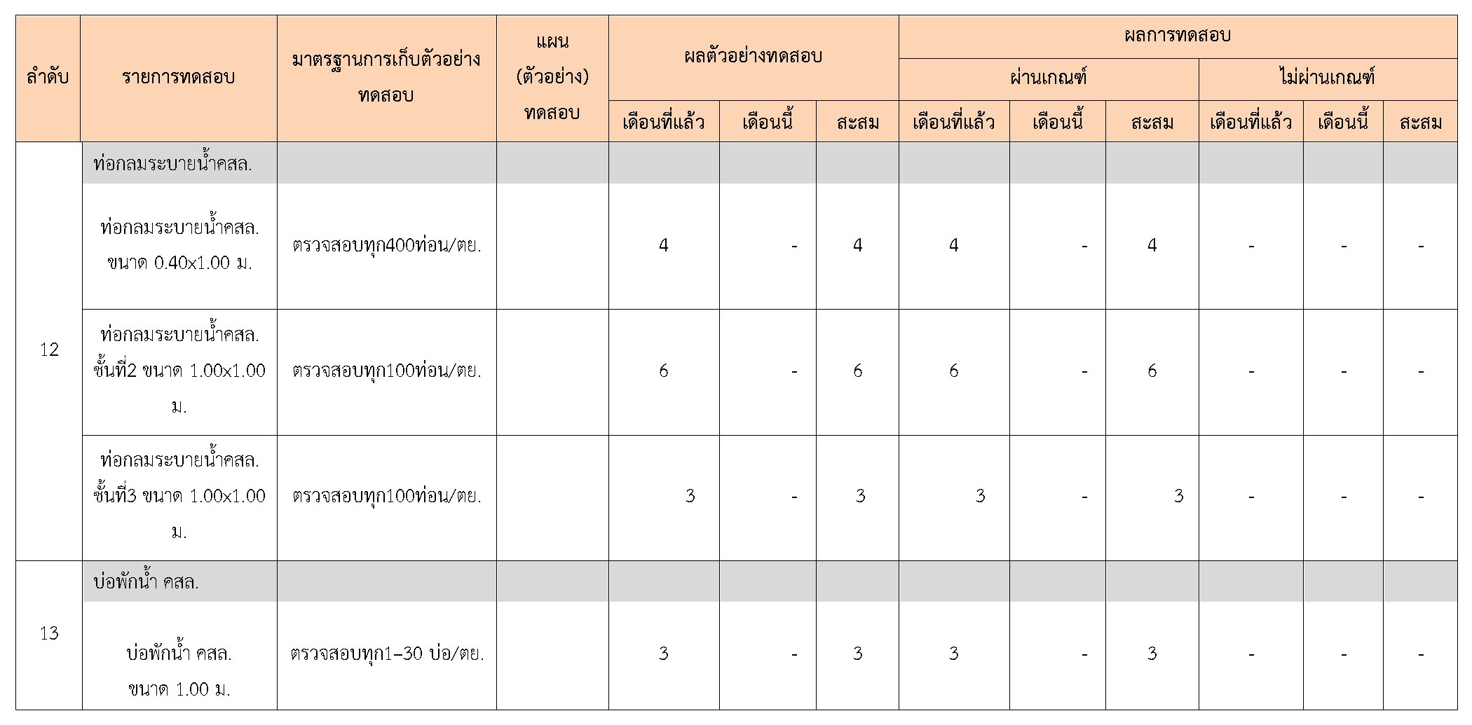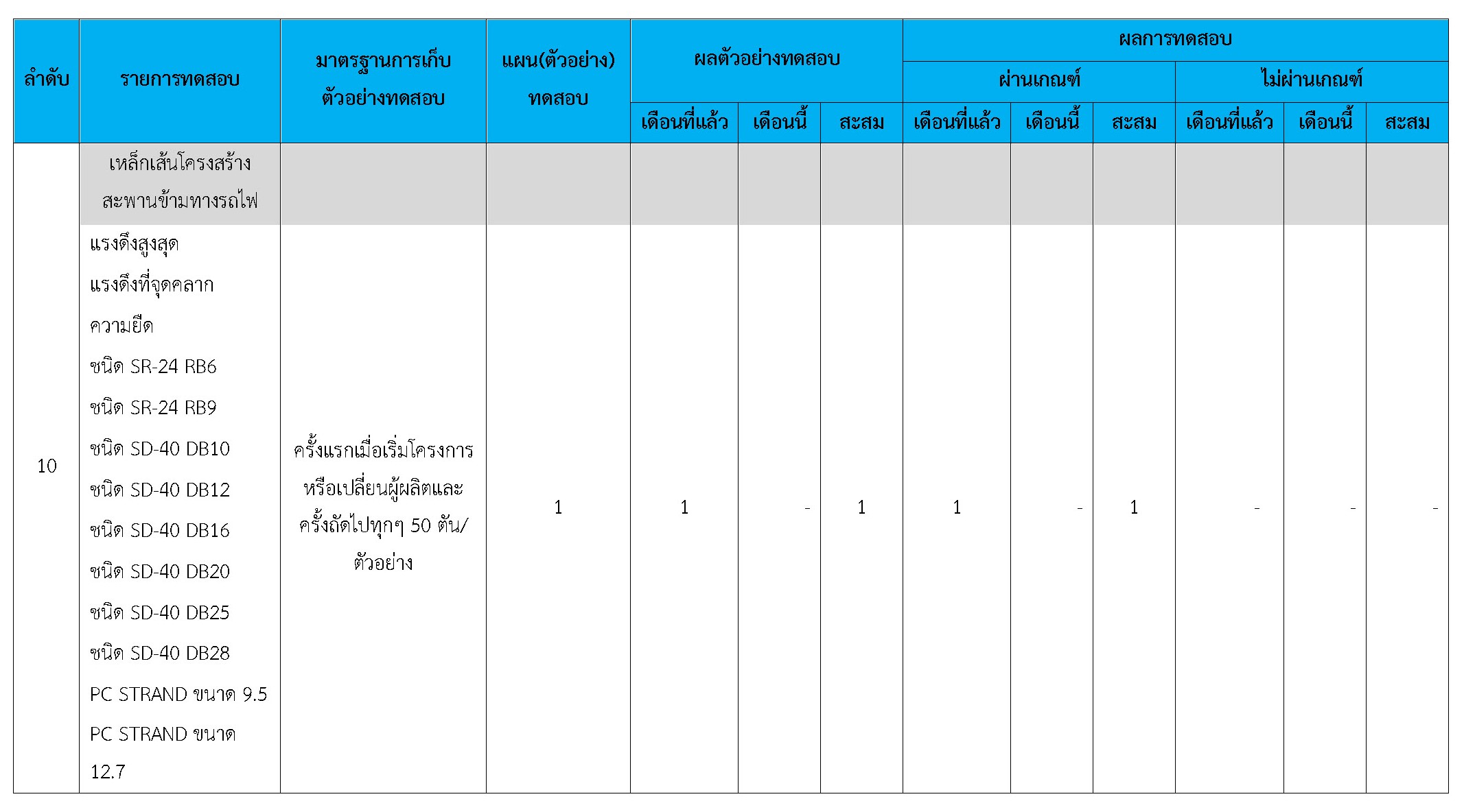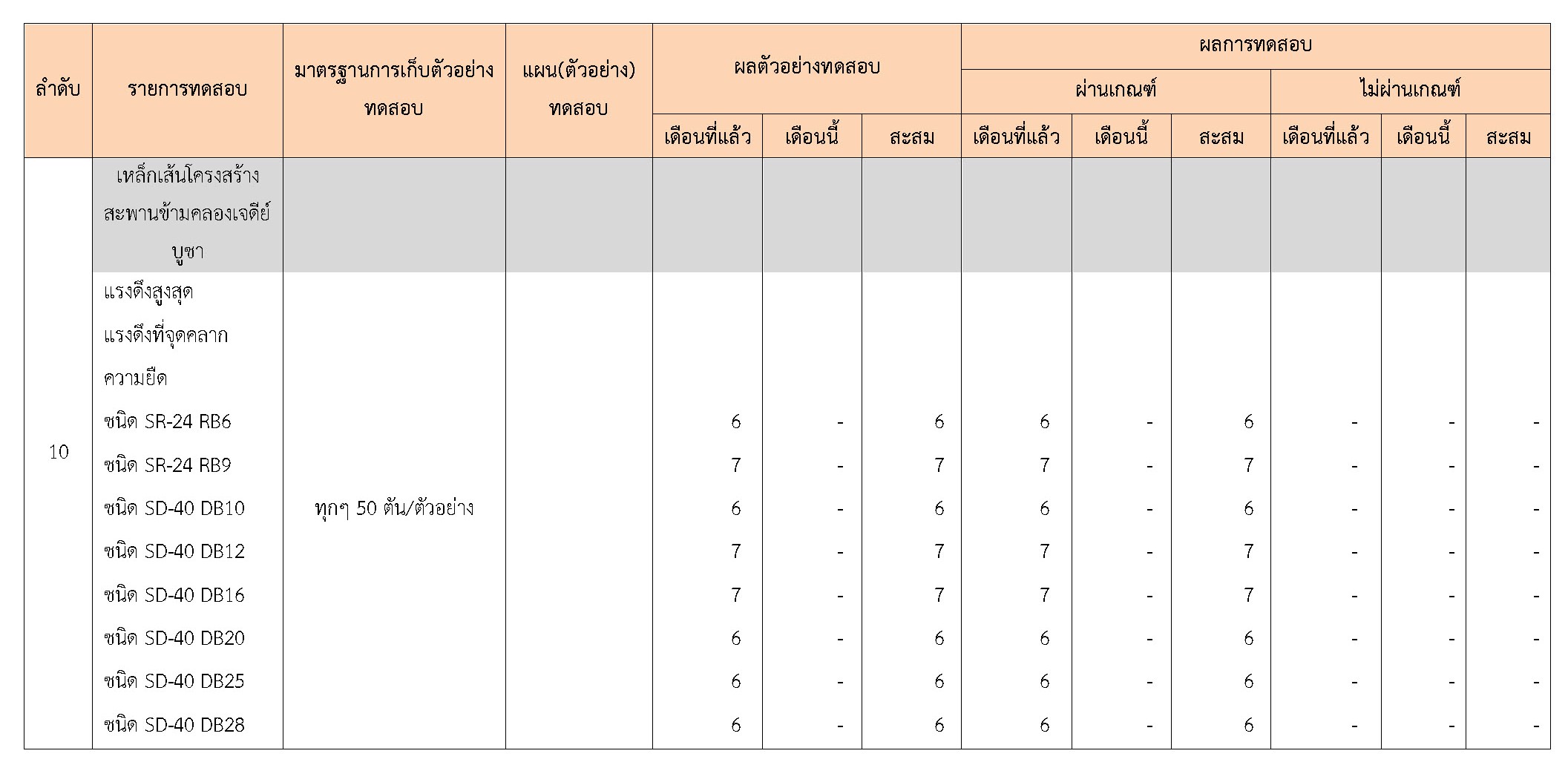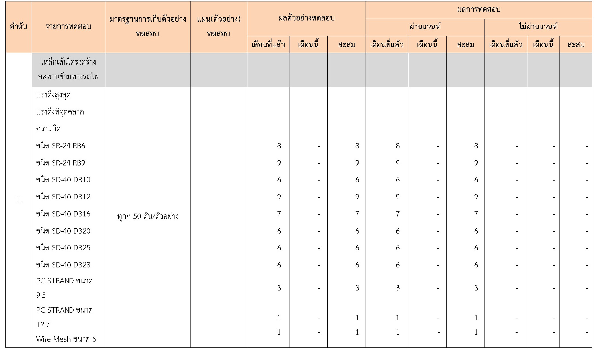 ในระหว่างวันที่ 1-28 กุมภาพันธ์ 2561 ผู้ว่าจ้างได้เสนอหนังสือขออนุมัติใช้วัสดุถึงที่ปรึกษา โดยที่ปรึกษาได้ตรวจสอบวัสดุดังกล่าวมีผลทดสอบดังตาราง