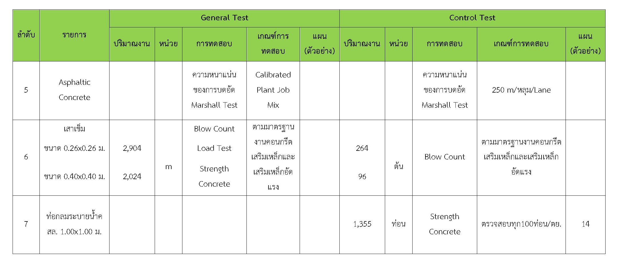 ในเดือน มีนาคม 2561 ได้แสดงเกณฑ์การทดสอบ General Test และ Control Test แสดงไว้ในตารางที่ 3.2-1 – 3.2-3 ดังนี้