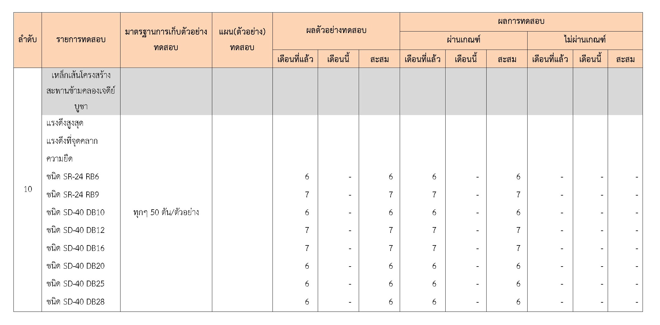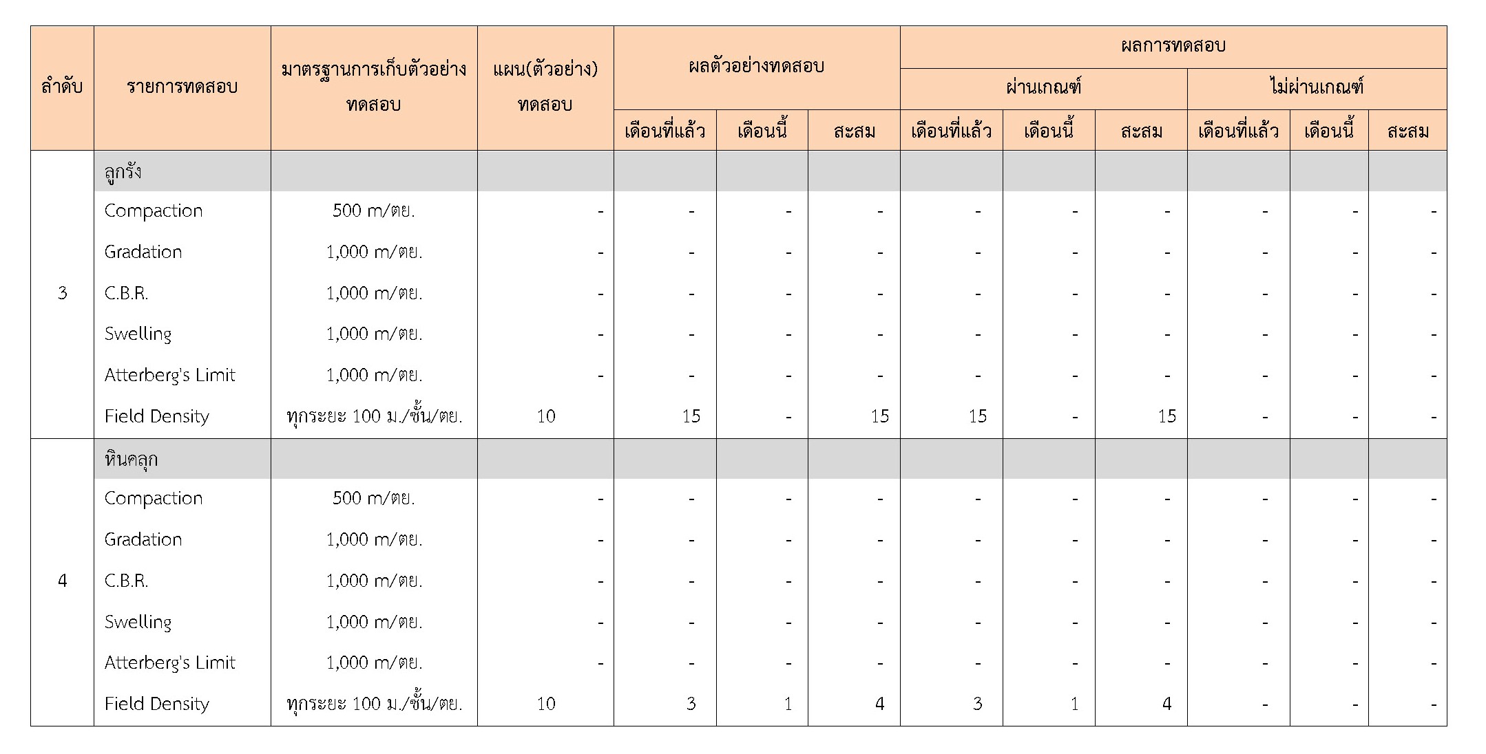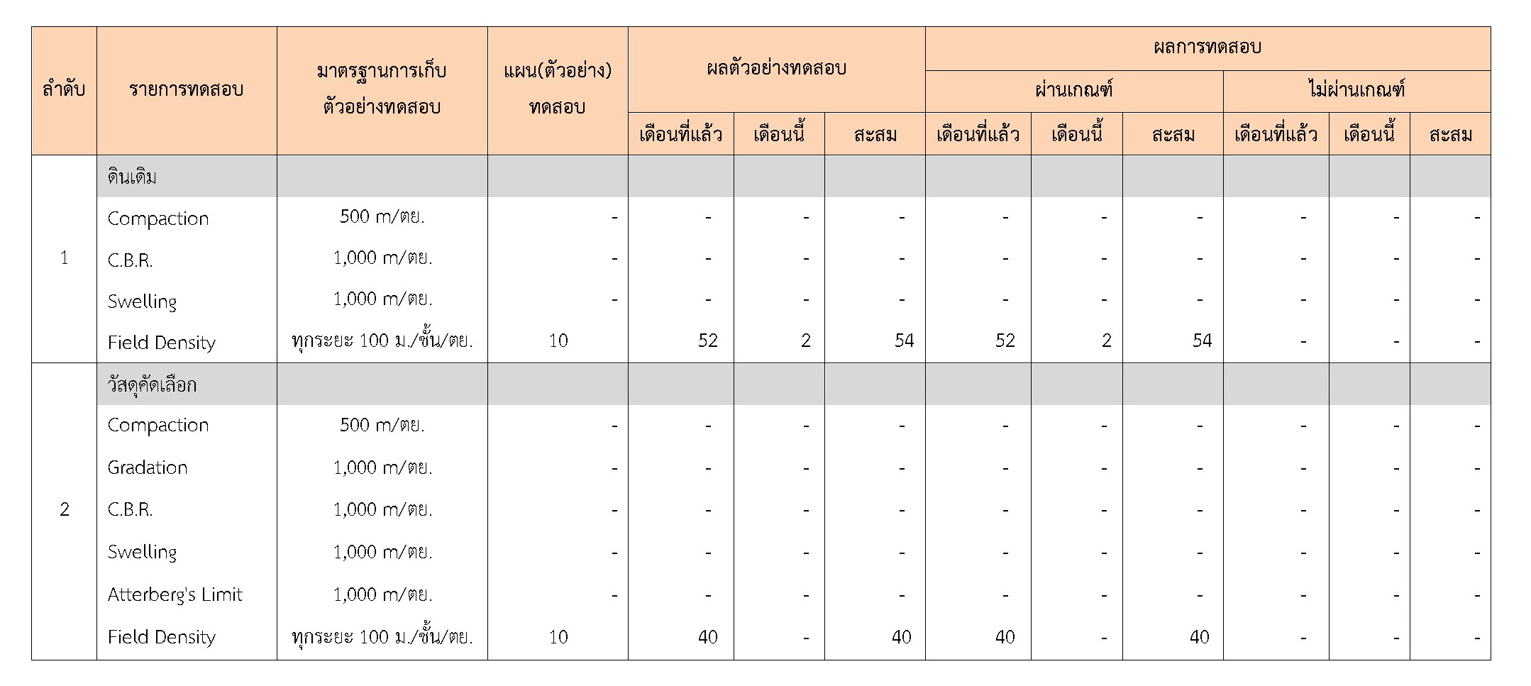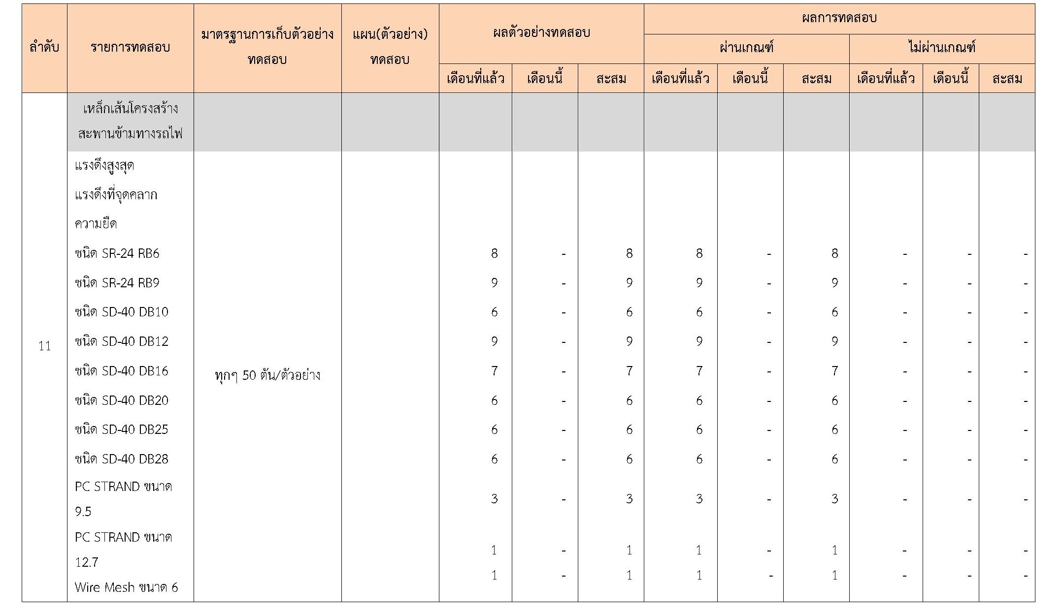 ในระหว่างวันที่ 1-31 มีนาคม 2561 ผู้ว่าจ้างได้เสนอหนังสือขออนุมัติใช้วัสดุถึงที่ปรึกษา โดยที่ปรึกษาได้ตรวจสอบวัสดุดังกล่าวมีผลทดสอบดังตาราง
