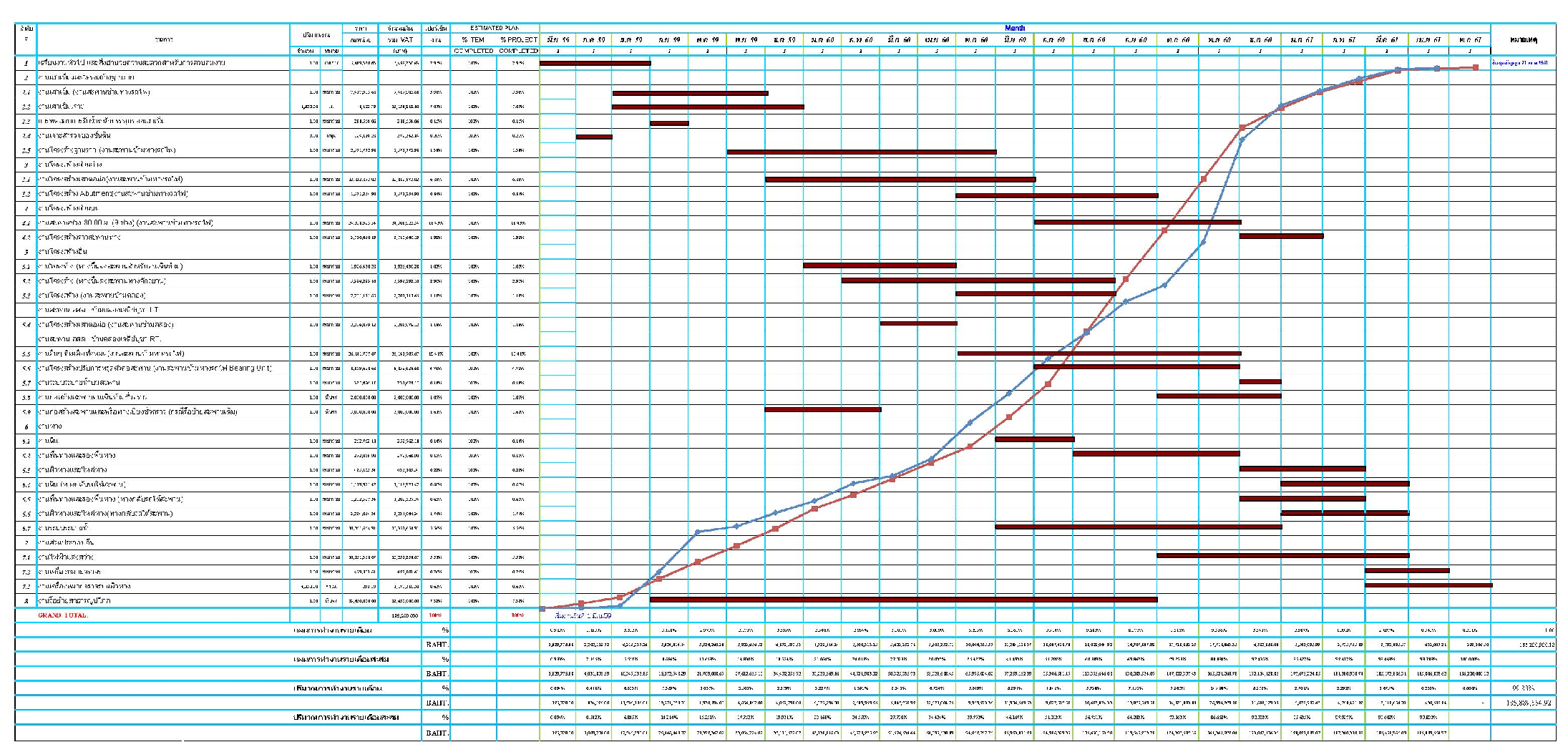 ที่ปรึกษาได้ติดตามความก้าวหน้าของงาน และนำมาจัดทำเป็น S-CURVE เปรียบเทียบกันระหว่างแผนงานและผลงานก่อสร้าง ดังรูปที่ 2.2-1
