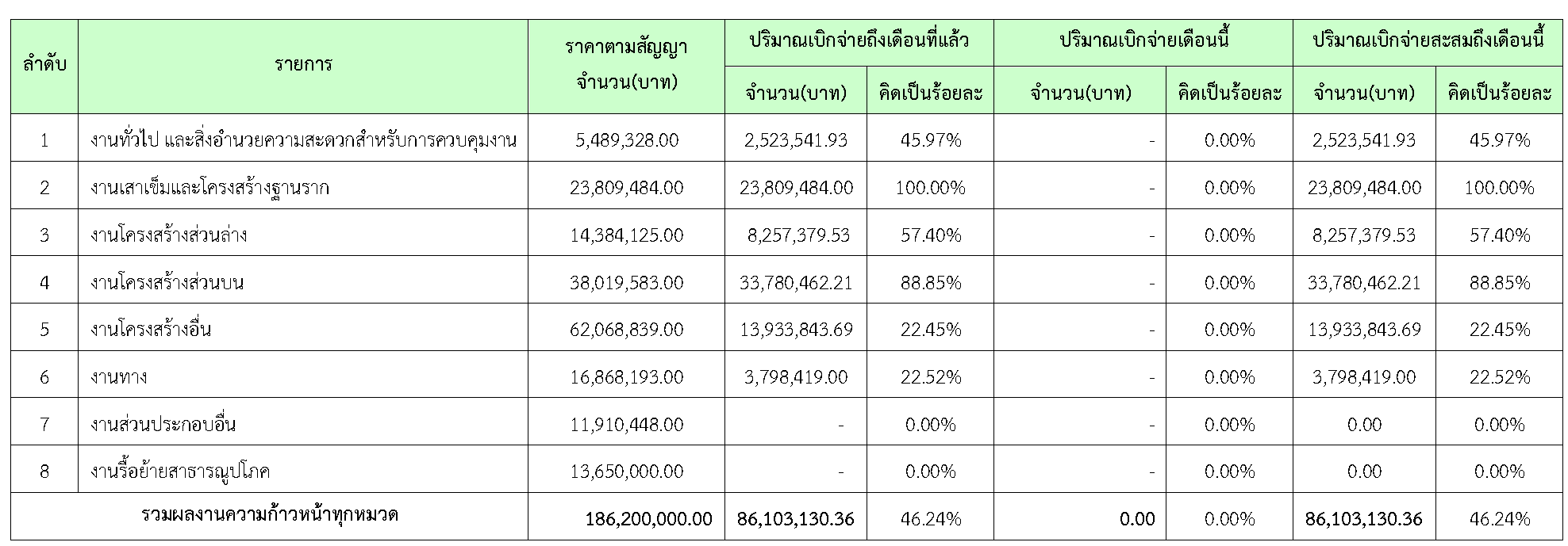 2.2 ความก้าวหน้าของงานก่อสร้างแยกตามรายการ