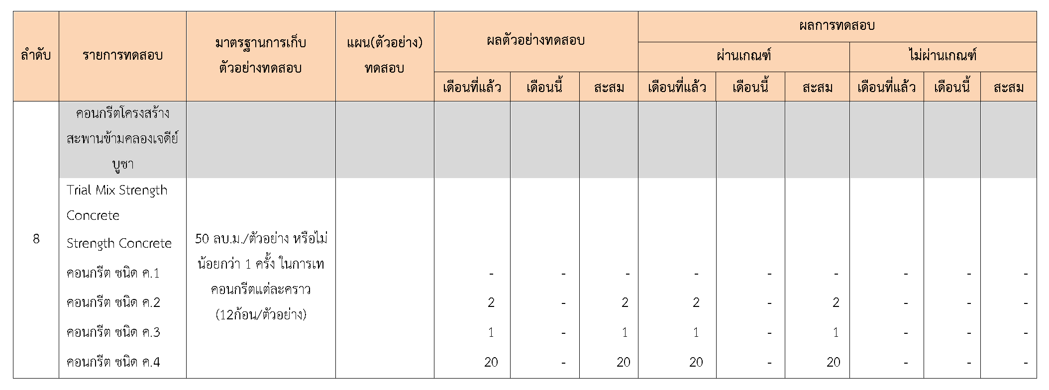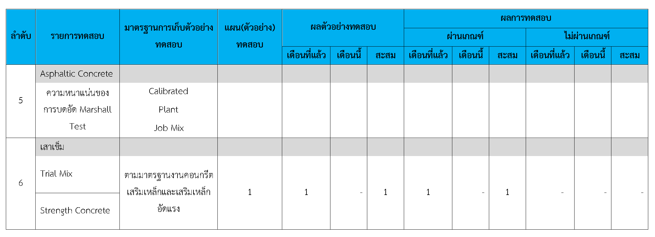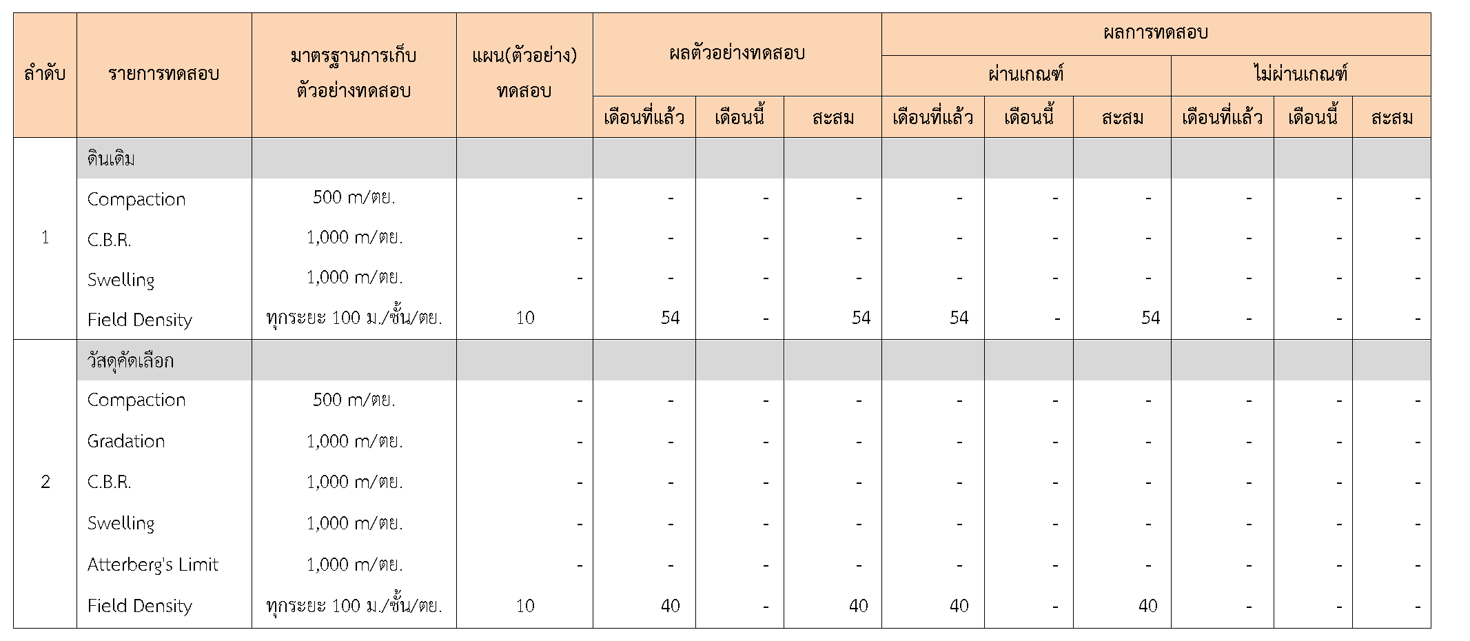 ในระหว่างวันที่ 1-30 เมษายน 2561 ผู้ว่าจ้างได้เสนอหนังสือขออนุมัติใช้วัสดุถึงที่ปรึกษา โดยที่ปรึกษาได้ตรวจสอบวัสดุดังกล่าวมีผลทดสอบดังตาราง