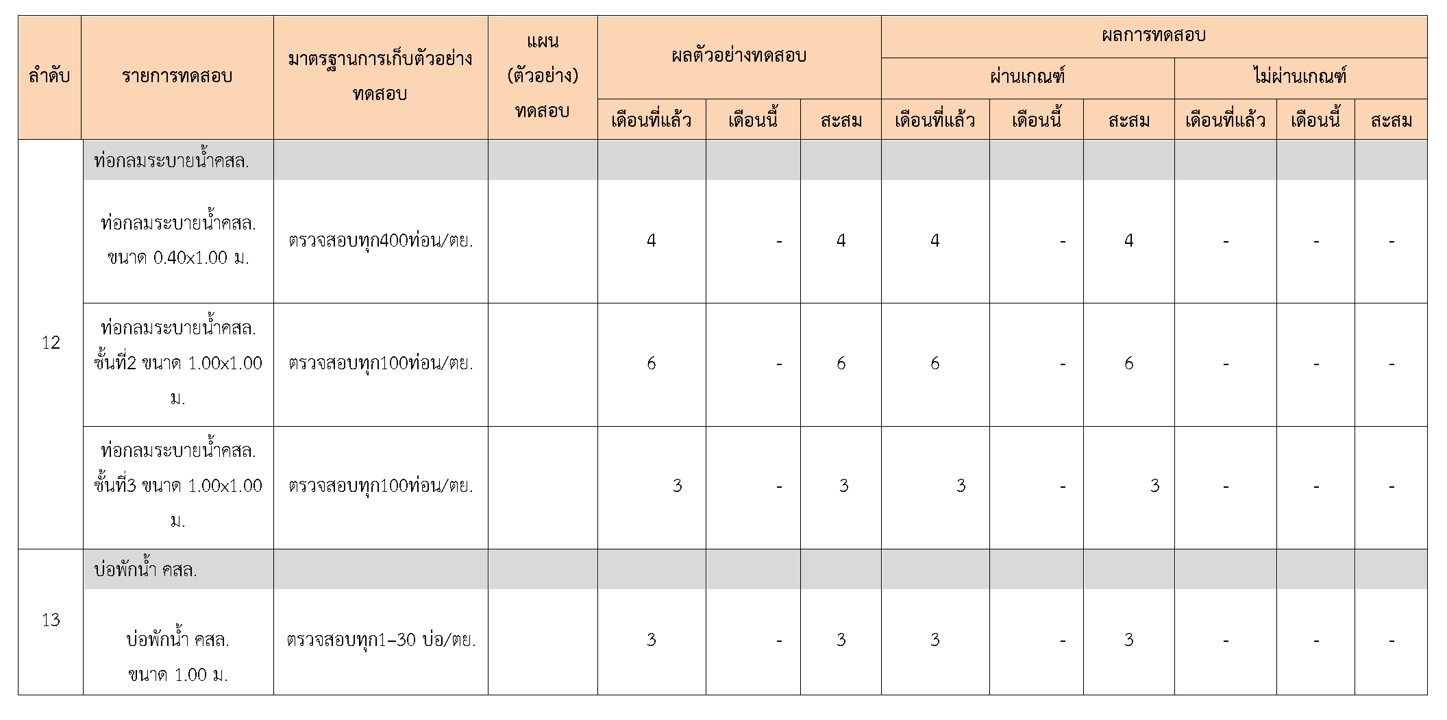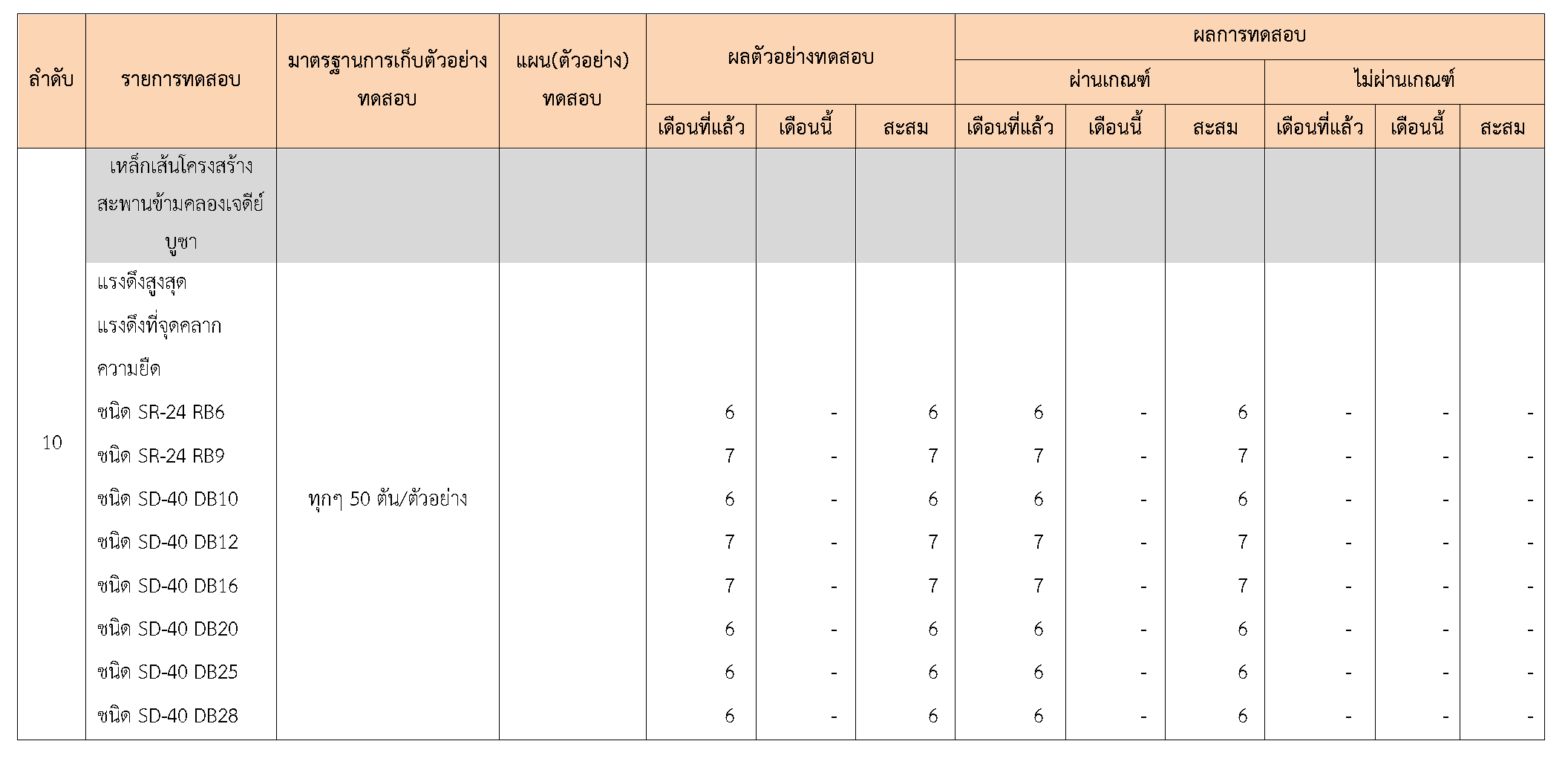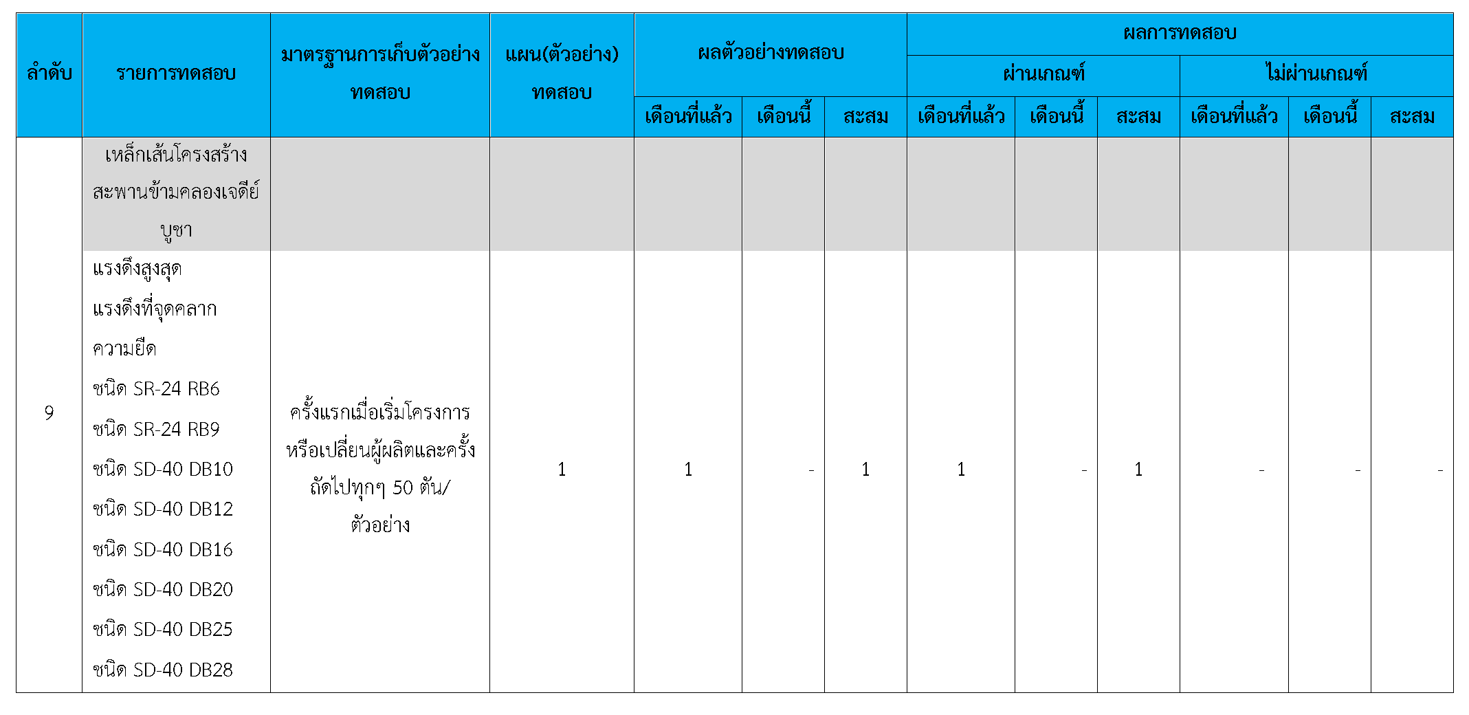 ในระหว่างวันที่ 1-30 เมษายน 2561 ผู้ว่าจ้างได้เสนอหนังสือขออนุมัติใช้วัสดุถึงที่ปรึกษา โดยที่ปรึกษาได้ตรวจสอบวัสดุดังกล่าวมีผลทดสอบดังตาราง