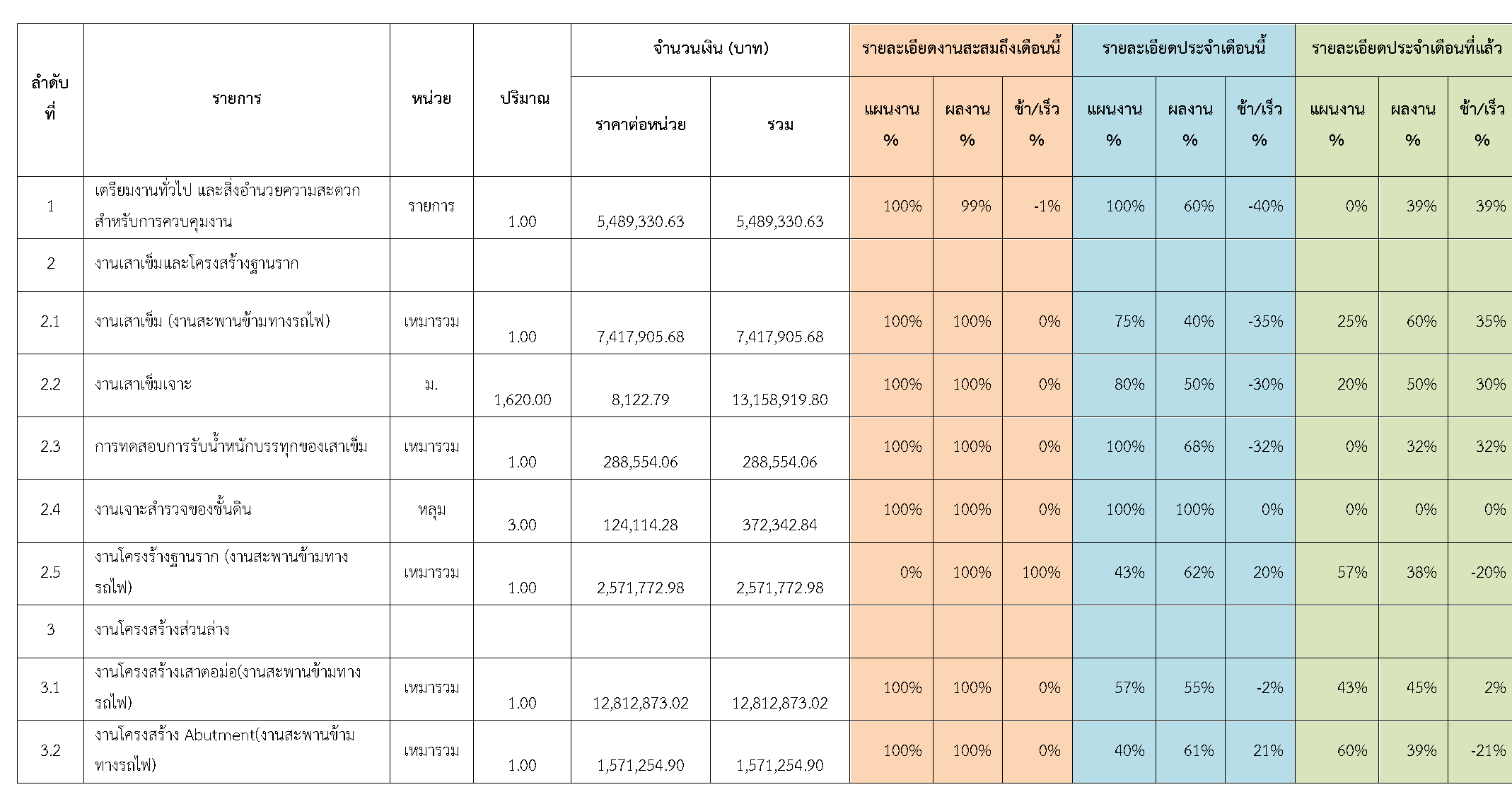 ตารางที่ 2.1-1 สรุปผลงานความก้าวหน้าของงานก่อสร้าง