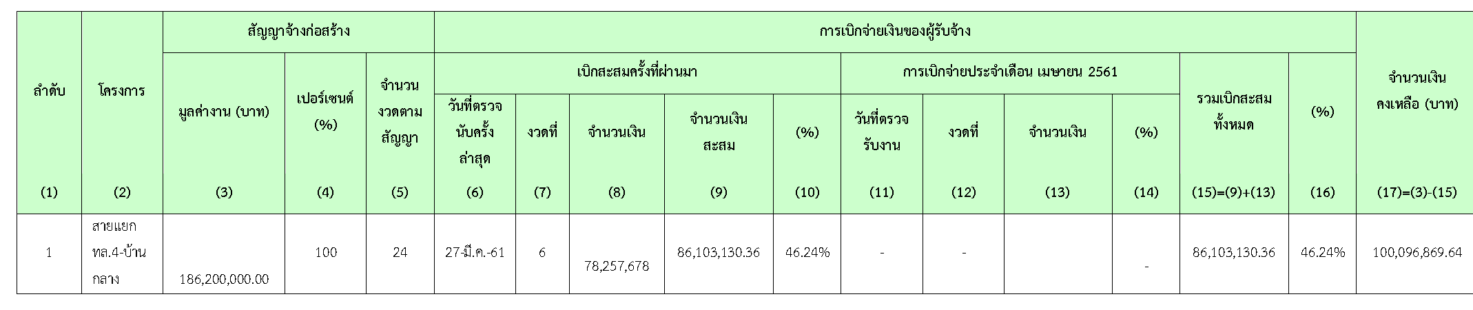 ในช่วงเดือนพฤษภาคม 2561 ที่ผ่านมาผู้รับจ้างดำเนินงานต่างๆ ที่มีรายละเอียดของงานหลักๆดังนี