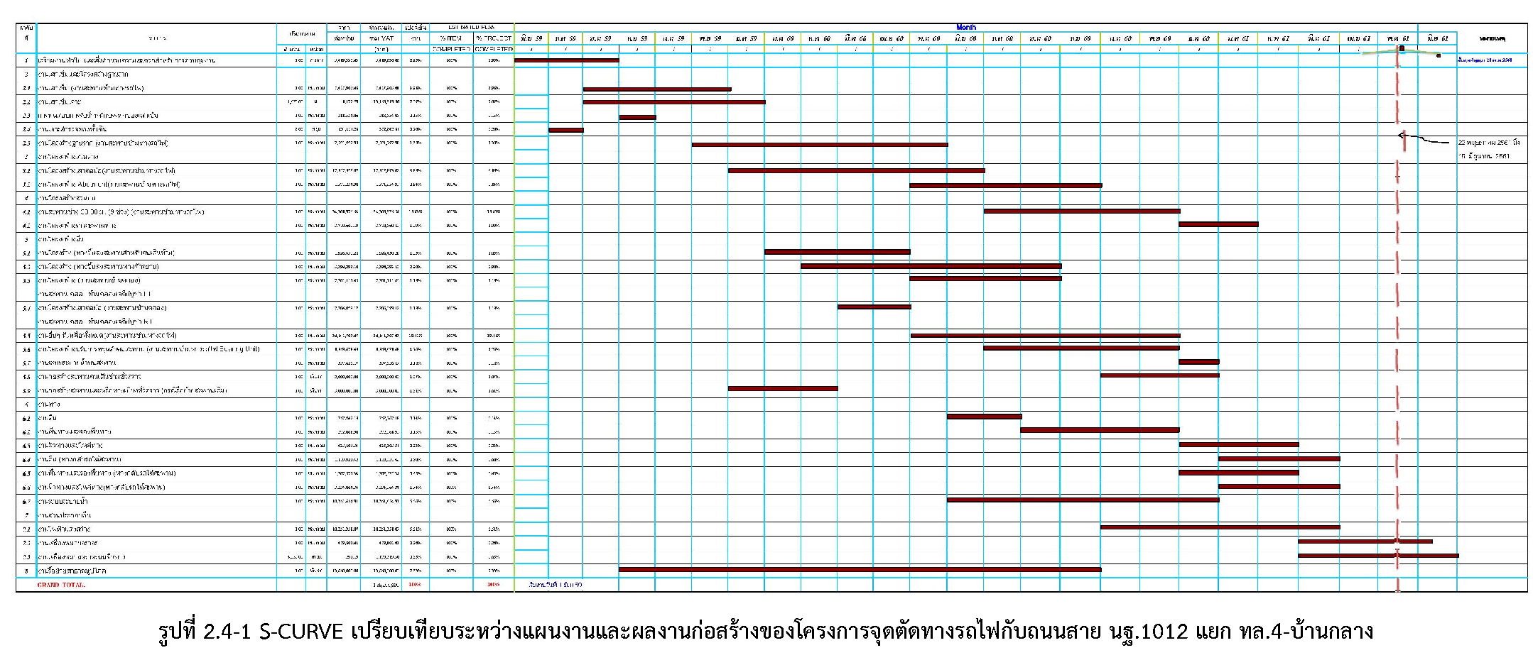ที่ปรึกษาได้ติดตามความก้าวหน้าของงาน และนำมาจัดทำเป็น S-CURVE เปรียบเทียบกันระหว่างแผนงานและผลงานก่อสร้าง ดังรูปที่ 2.2-1