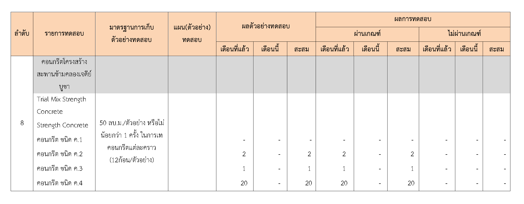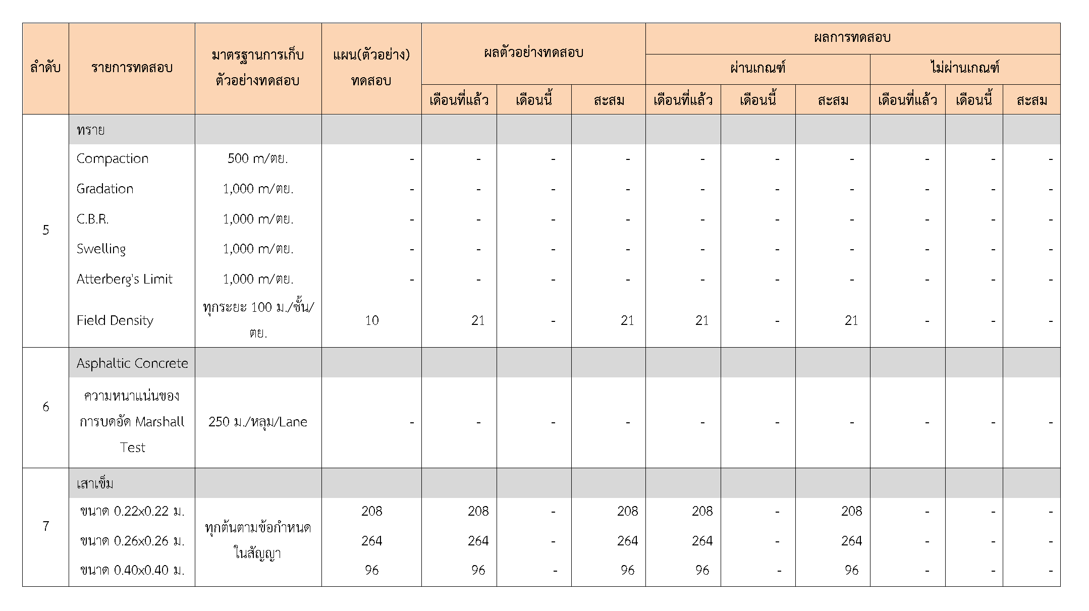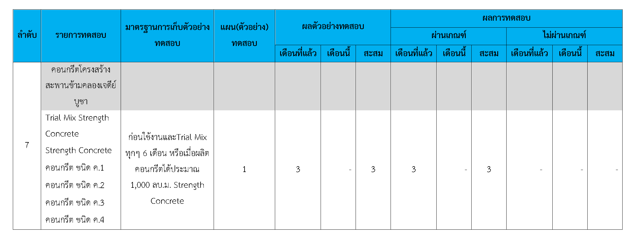 ในระหว่างวันที่ 1-30 มิถุนายน 2561 ผู้ว่าจ้างได้เสนอหนังสือขออนุมัติใช้วัสดุถึงที่ปรึกษา โดยที่ปรึกษาได้ตรวจสอบวัสดุดังกล่าวมีผลทดสอบดังตาราง