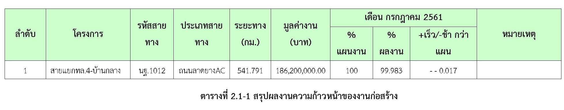คณะกรรมการตรวจการจ้าง ดำเนินการตรวจรับงานในเดือน กรกฎาคม 2561 ดังสรุปในตารางที่ 2.5-1 – 2.5-4