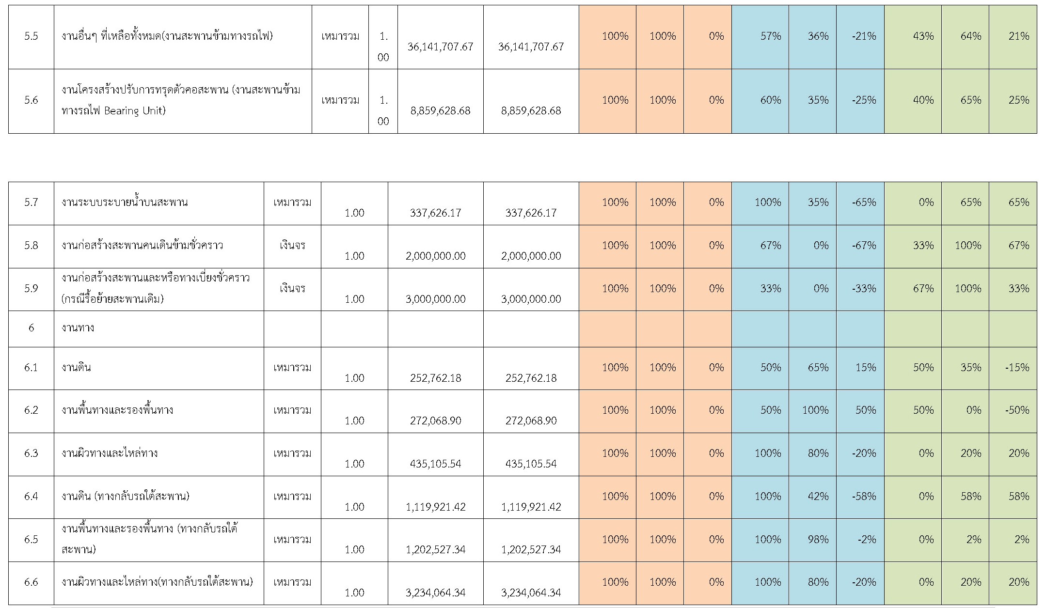 ความก้าวหน้าของเดือนกรกฎาคม 2561 ของการปฏิบัติงาน (99.983%) กำลังดำเนินการตรวจสอบจำนวนเสาไฟฟ้า, ตรวจสอบป้ายจราจรในโครงการ, การตรวจสอบการทาสีขอบคันหินรางตื้น และ การรถไฟตรวจสอบความถูกต้องของอาณัติสัญญาณชั่วคราว ผลงานความก้าวหน้าแสดงไว้ใน ตารางที่ 2.1-1