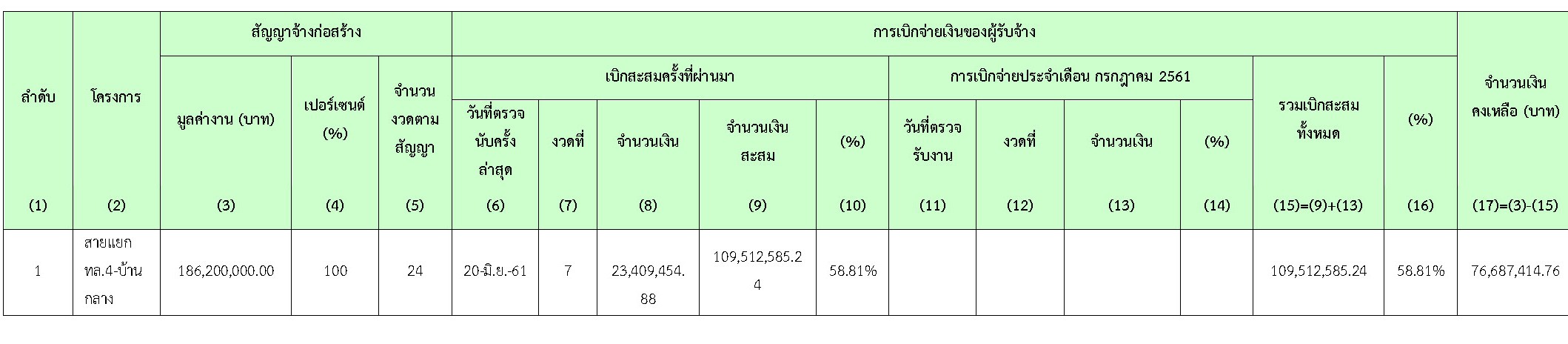 ในช่วงเดือนกรกฎาคม 2561 ที่ผ่านมาผู้รับจ้างดำเนินงานต่างๆ ที่มีรายละเอียดของงานหลักๆดังนี้