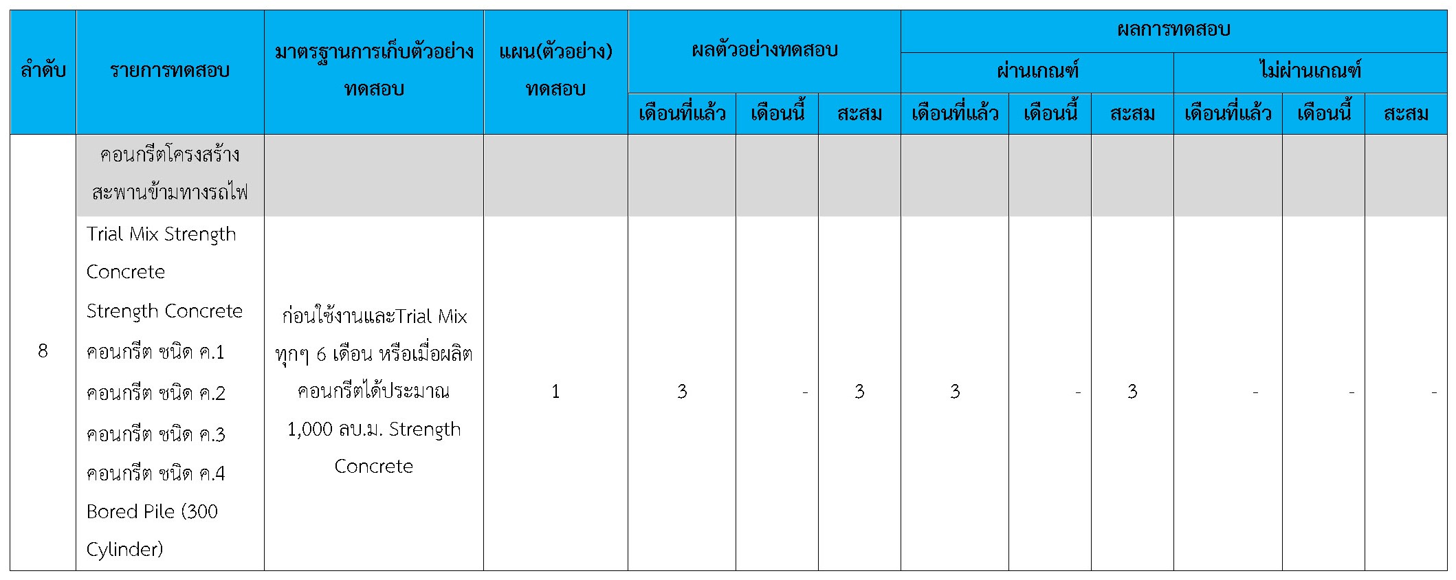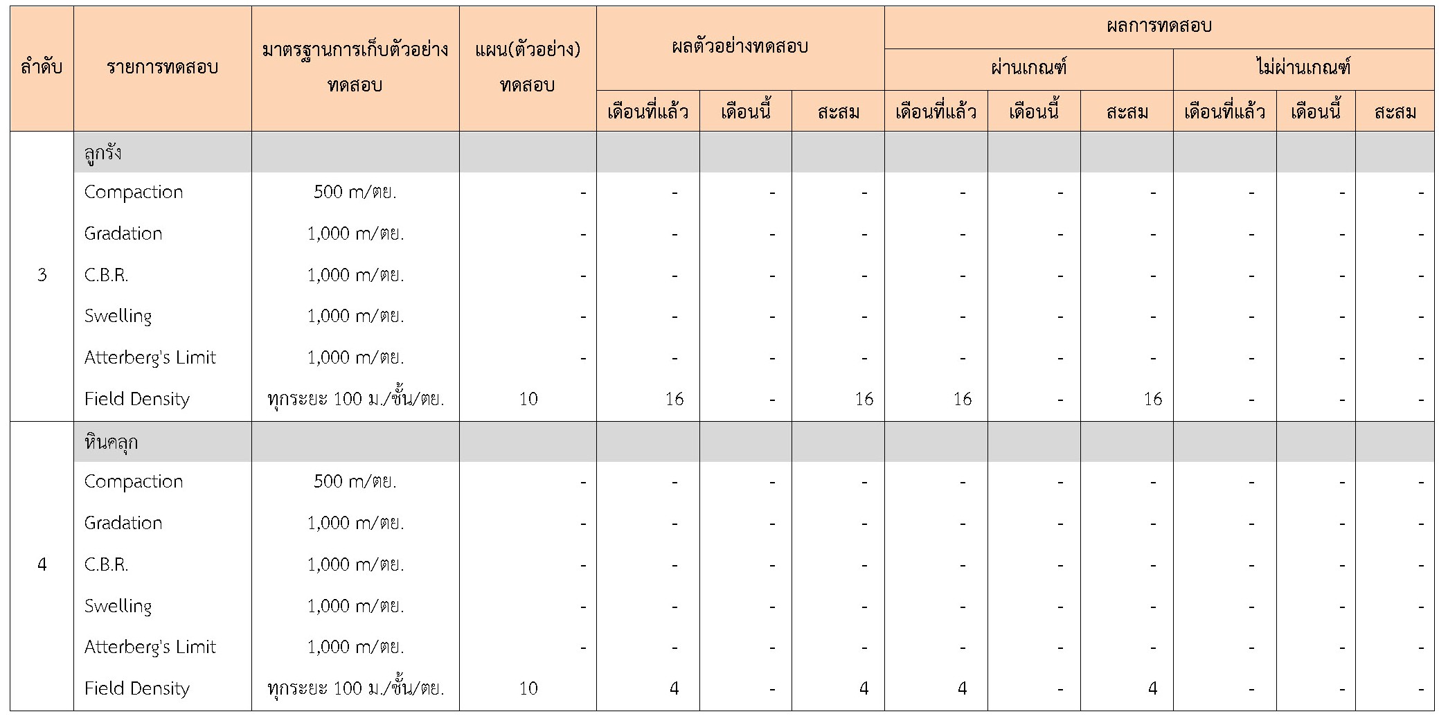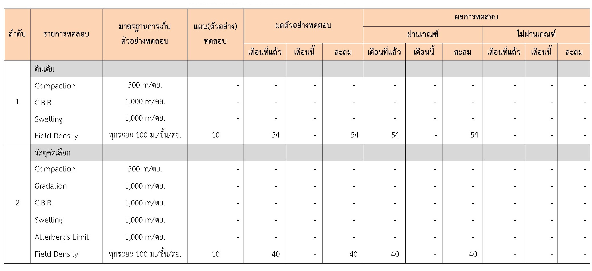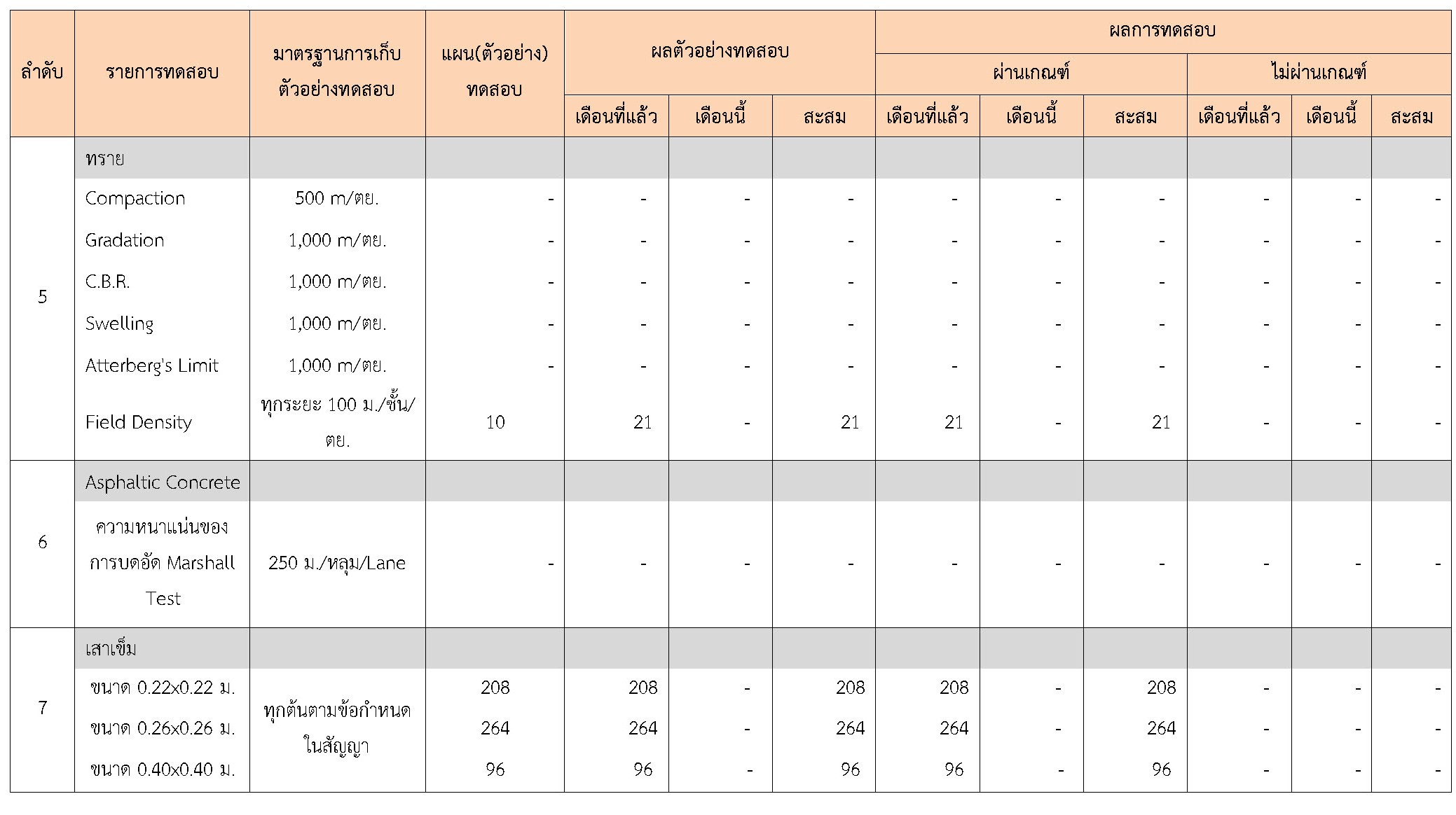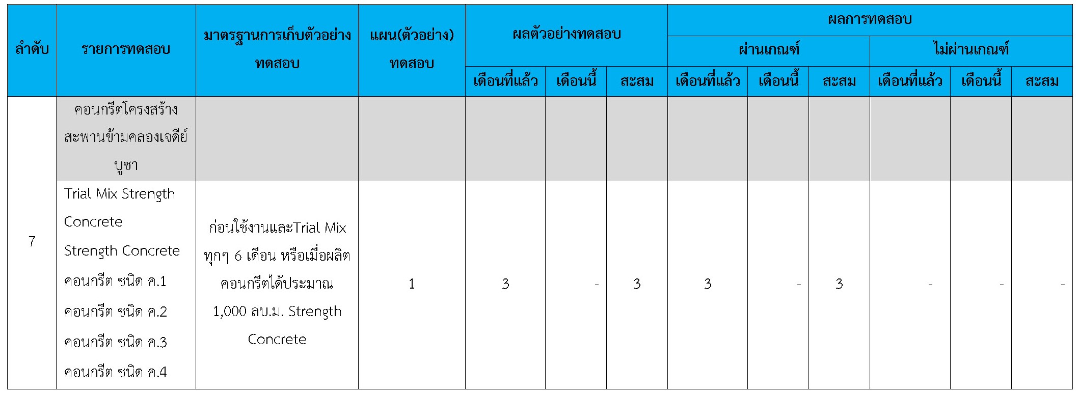 ในระหว่างวันที่ 1-30 กันยายน 2561 ผู้ว่าจ้างได้เสนอหนังสือขออนุมัติใช้วัสดุถึงที่ปรึกษา โดยที่ปรึกษาได้ตรวจสอบวัสดุดังกล่าวมีผลทดสอบดังตาราง