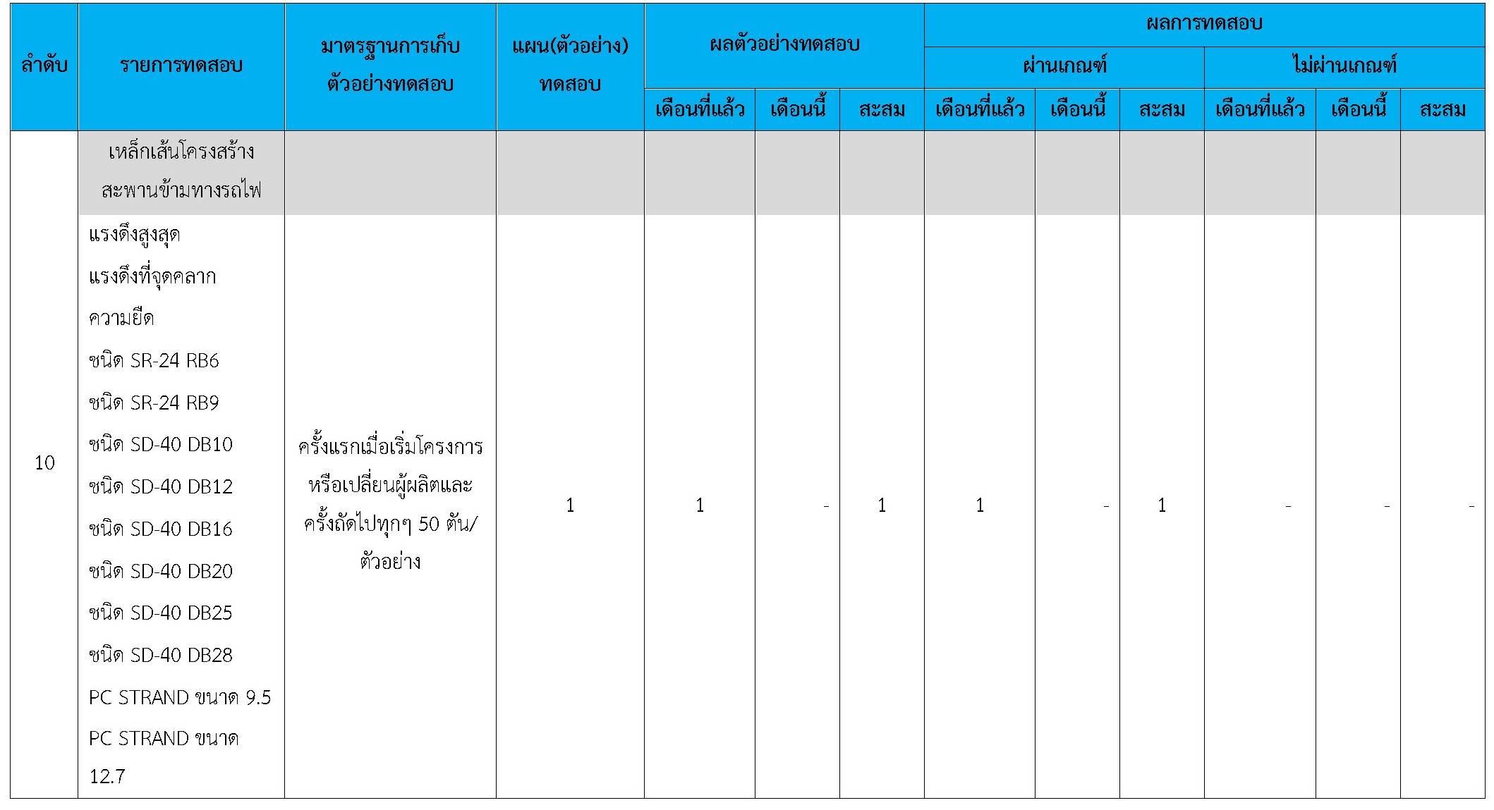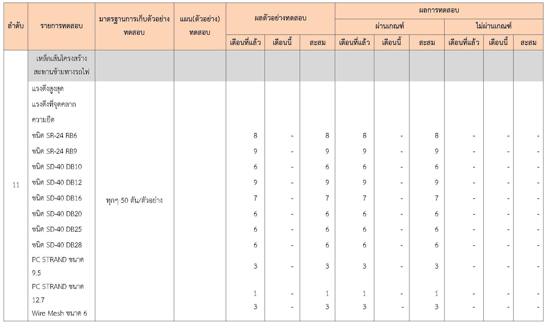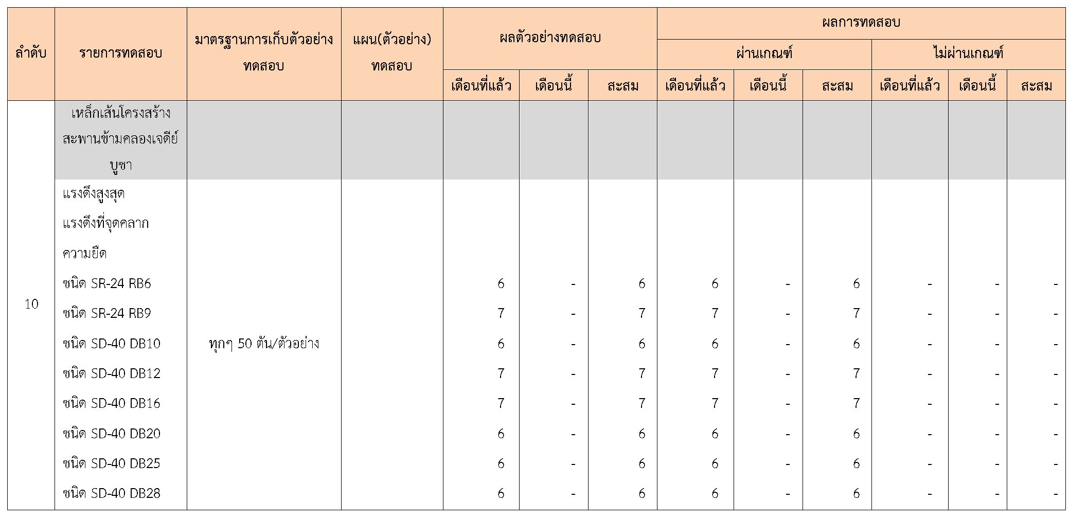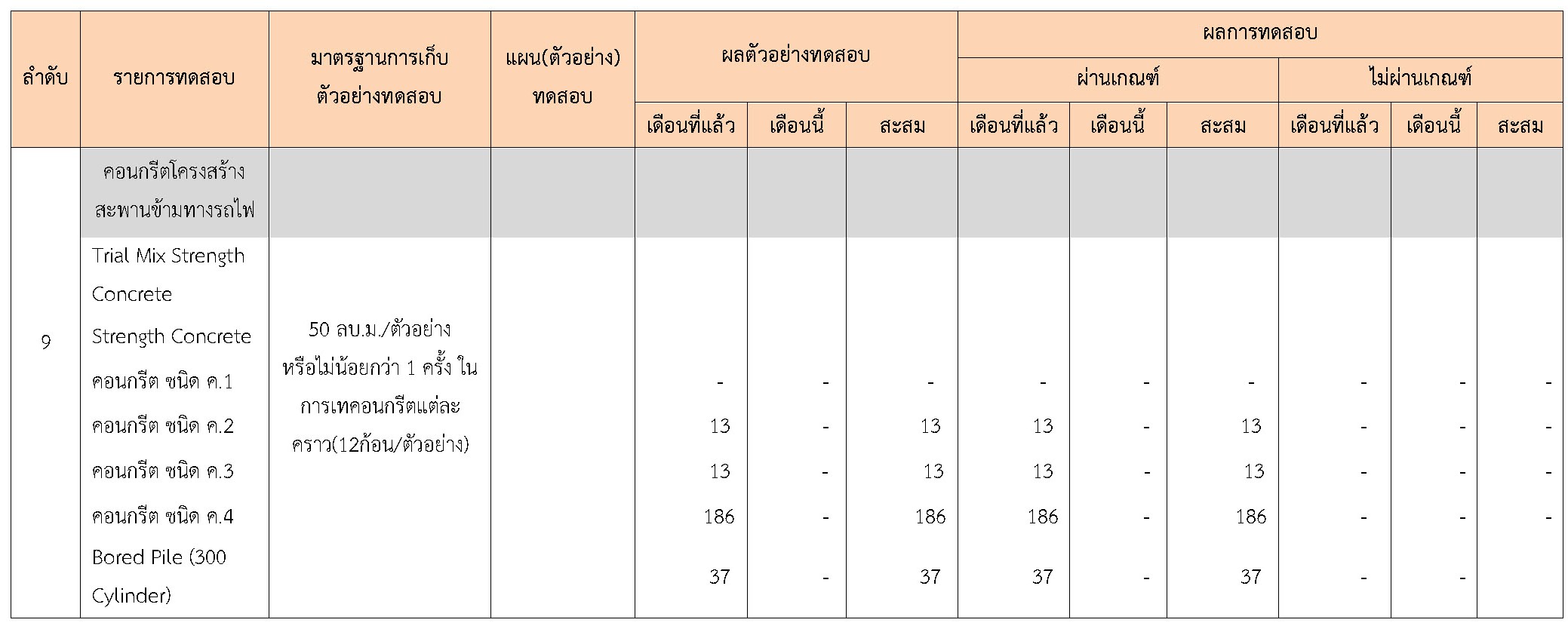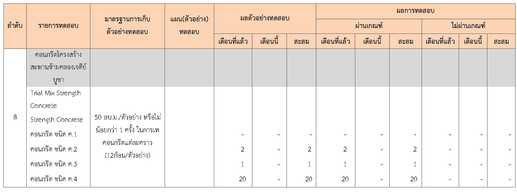 ในระหว่างวันที่ 1-30 กันยายน 2561 ผู้ว่าจ้างได้เสนอหนังสือขออนุมัติใช้วัสดุถึงที่ปรึกษา โดยที่ปรึกษาได้ตรวจสอบวัสดุดังกล่าวมีผลทดสอบดังตาราง