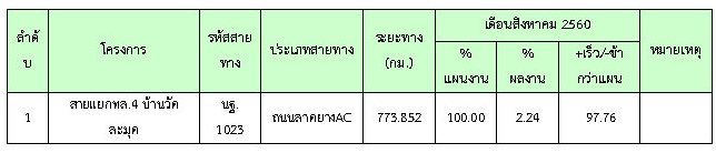 ความก้าวหน้าในช่วงเดือนพฤศจิกายน 2562 (2.24%)ผลงานความก้าวหน้าแสดงไว้ในตารางที่ 3.1-1 ดังนี้