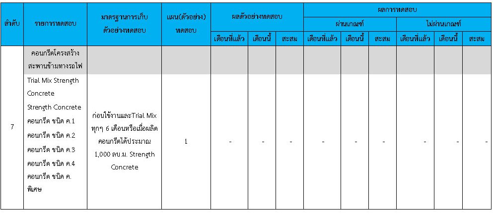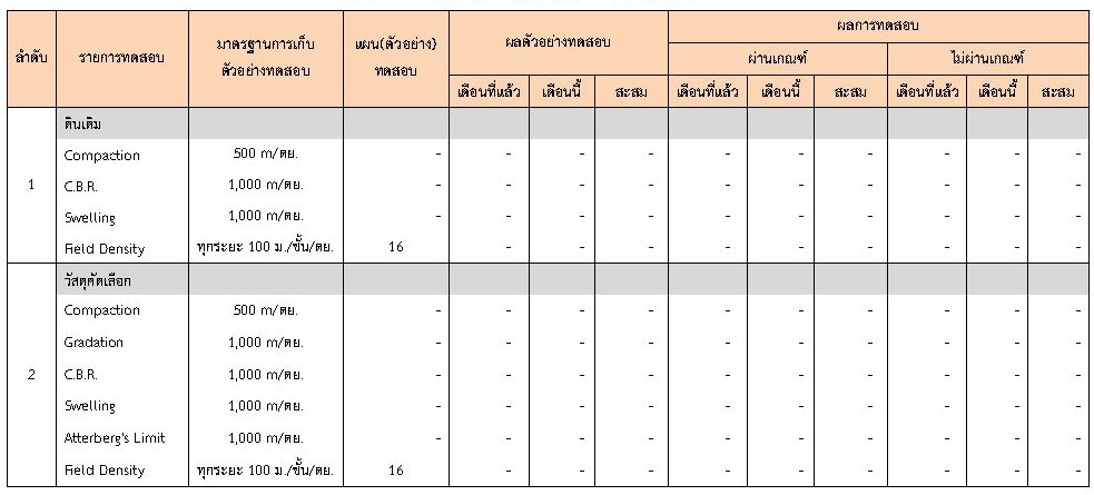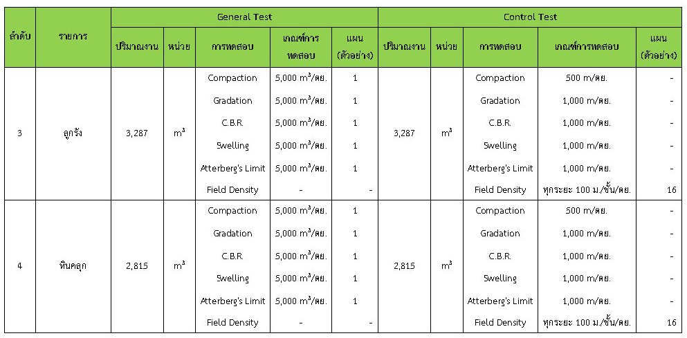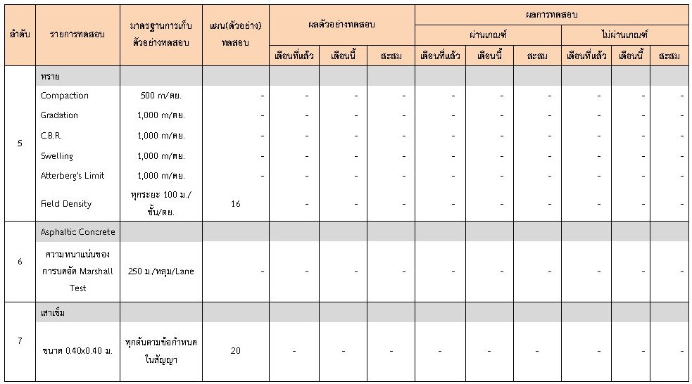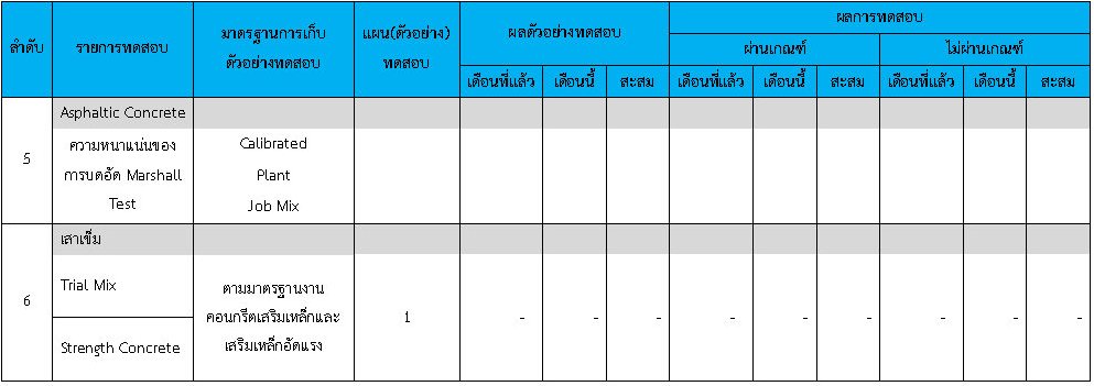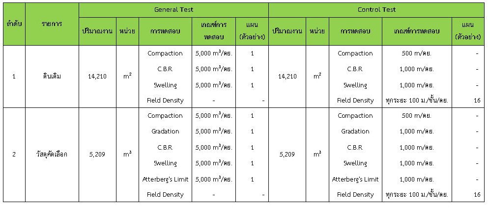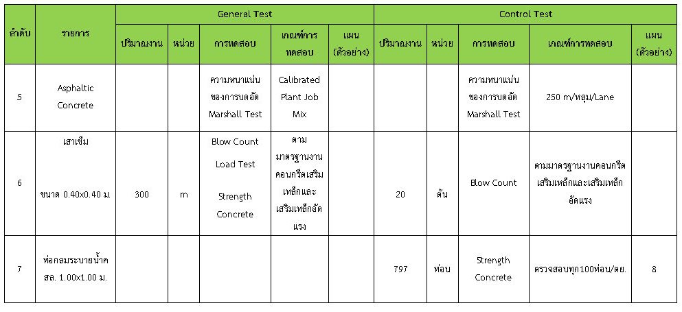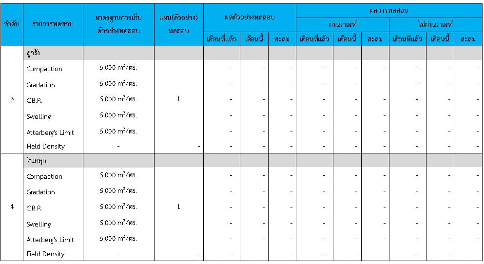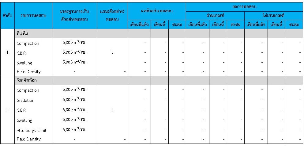 ในระหว่างวันที่ 1-30 พฤศจิกายน 2562 ผู้ว่าจ้างได้เสนอหนังสือขออนุมัติใช้วัสดุถึงที่ปรึกษา โดยที่ปรึกษาได้ตรวจสอบวัสดุดังกล่าวมีผลทดสอบดังตาราง