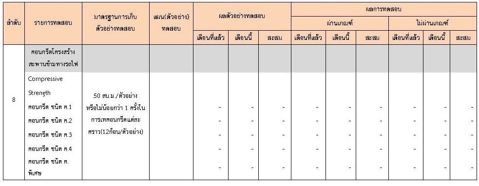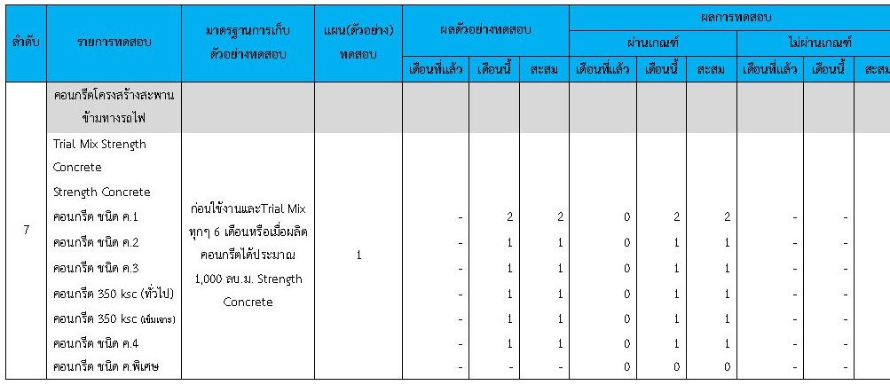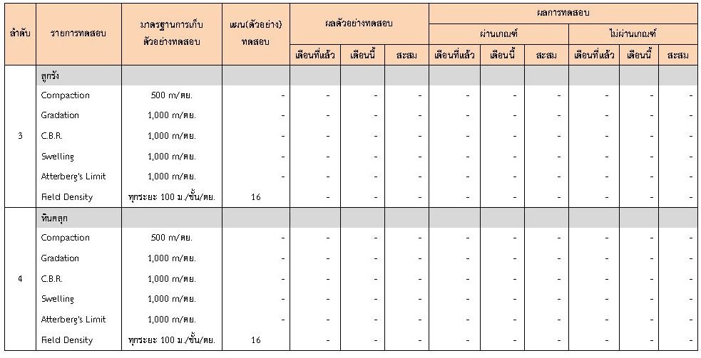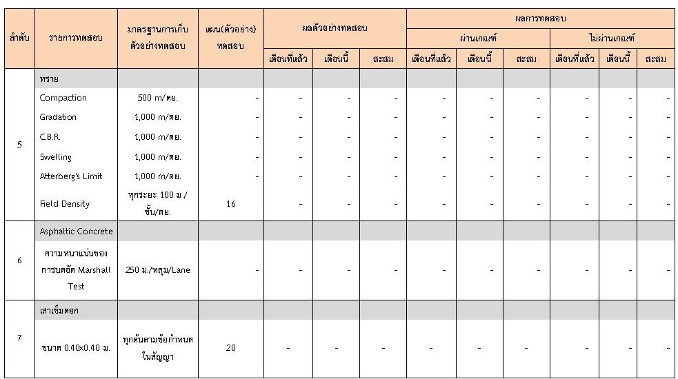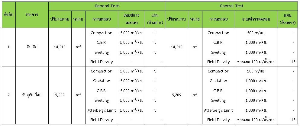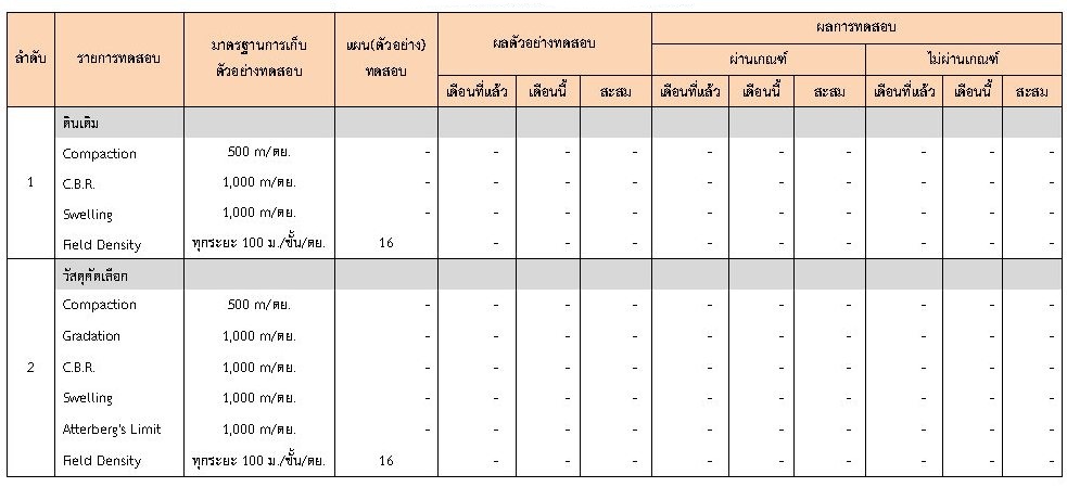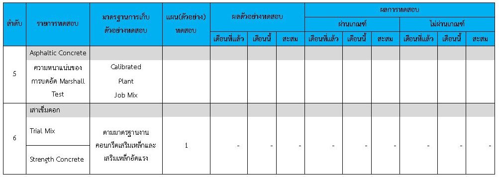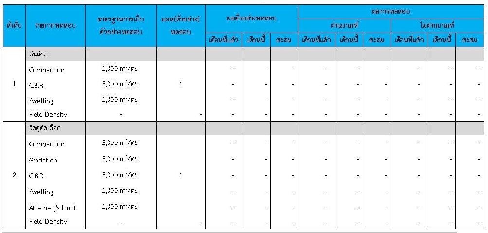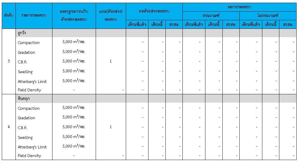 ในระหว่างวันที่ 1-31มกราคม 2563 ผู้ว่าจ้างได้เสนอหนังสือขออนุมัติใช้วัสดุถึงที่ปรึกษา โดยที่ปรึกษาได้ตรวจสอบวัสดุดังกล่าวมีผลทดสอบดังตาราง