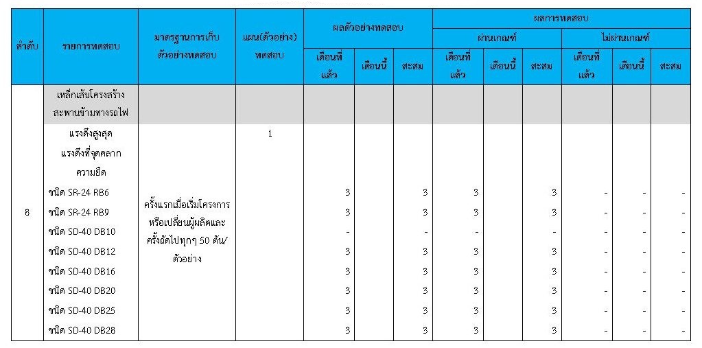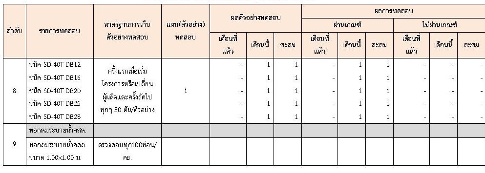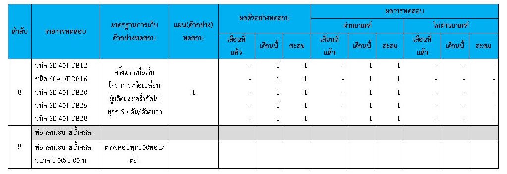 ในเดือน กุมภาพันธ์ 2563ได้แสดงเกณฑ์การทดสอบGeneral Test และ Control Test แสดงไว้ในตารางที่ 3.2-1 – 3.2-3 ดังนี้3.2 การตรวจสอบการอนุมัติการใช้วัสดุ