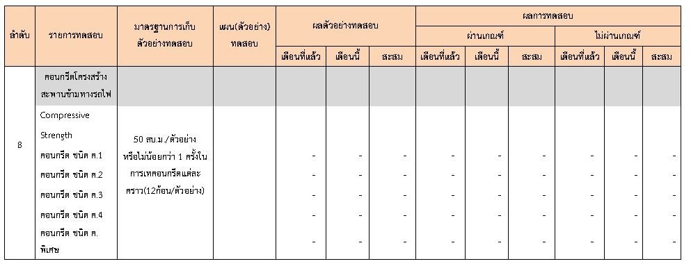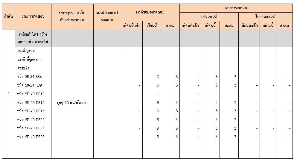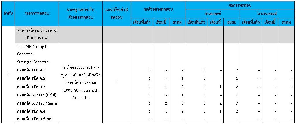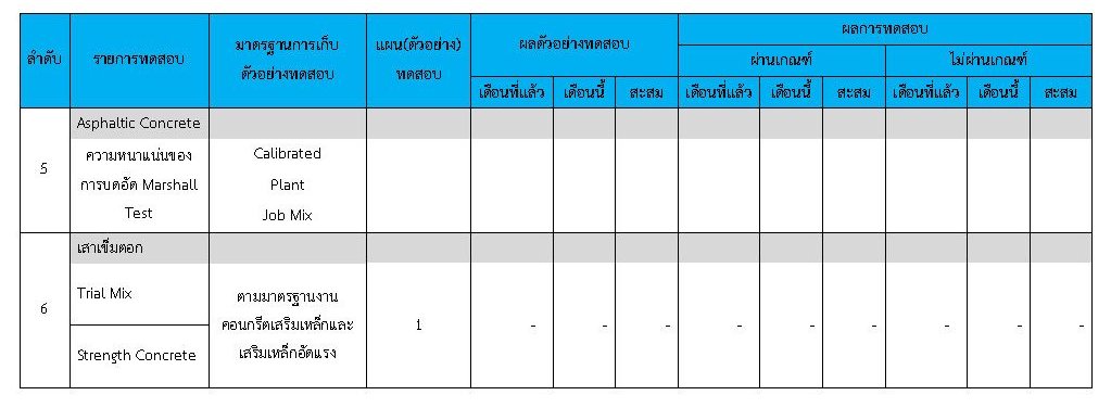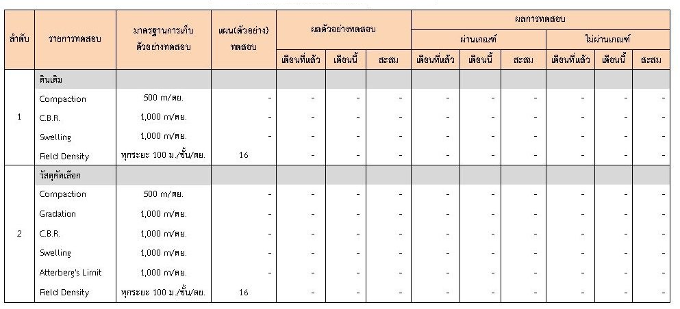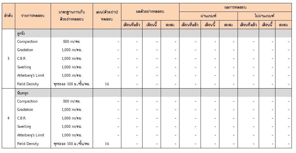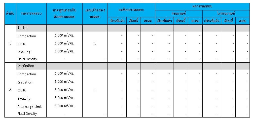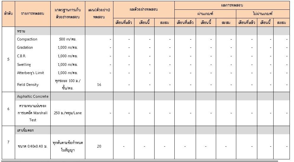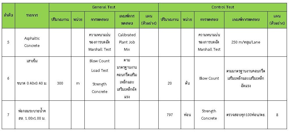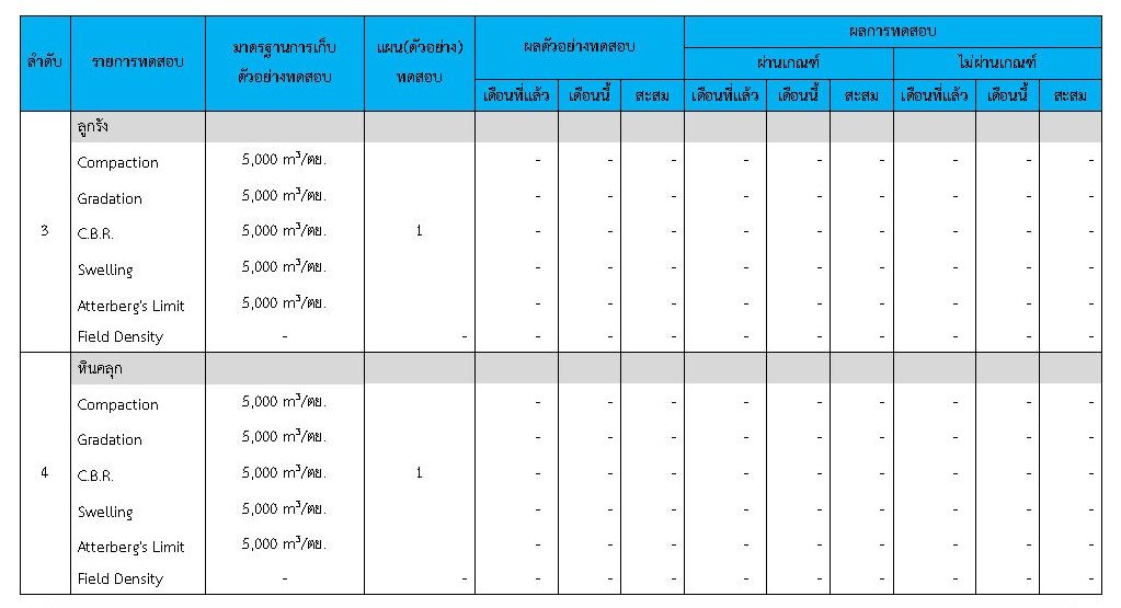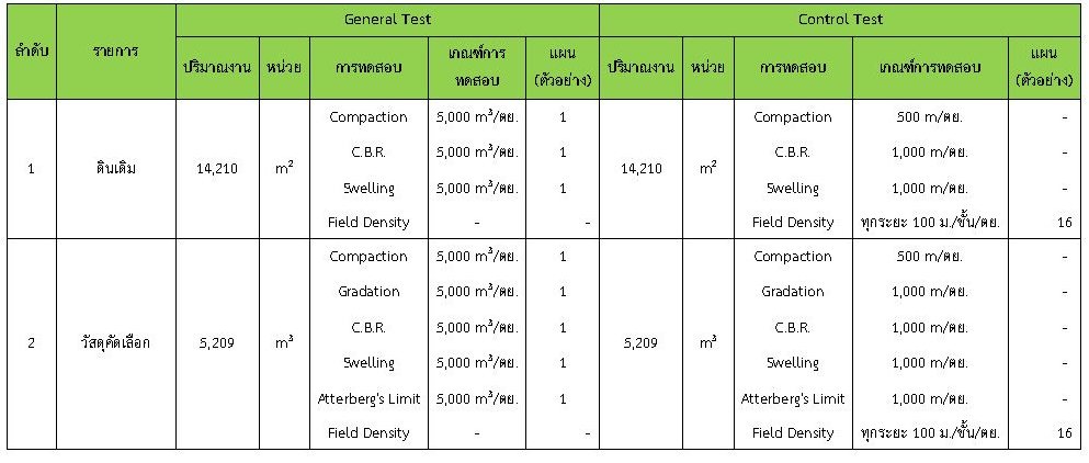 ในระหว่างวันที่ 1-29กุมภาพันธ์ 2563 ผู้ว่าจ้างได้เสนอหนังสือขออนุมัติใช้วัสดุถึงที่ปรึกษา โดยที่ปรึกษาได้ตรวจสอบวัสดุดังกล่าวมีผลทดสอบดังตาราง