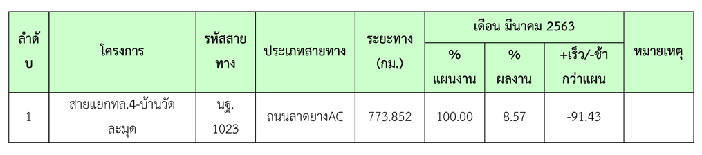 ผลความก้าวหน้าในช่วงเดือนมีนาคม 2563แสดงไว้ในตารางที่ 3.1-1 ดังนี้