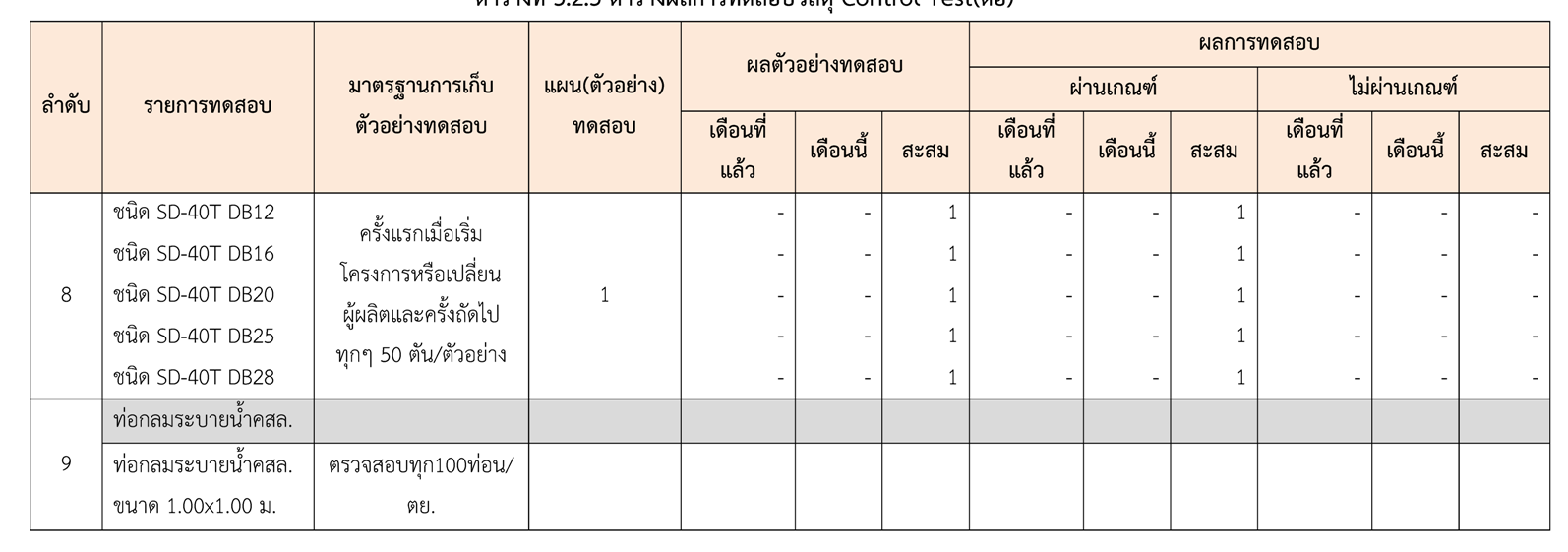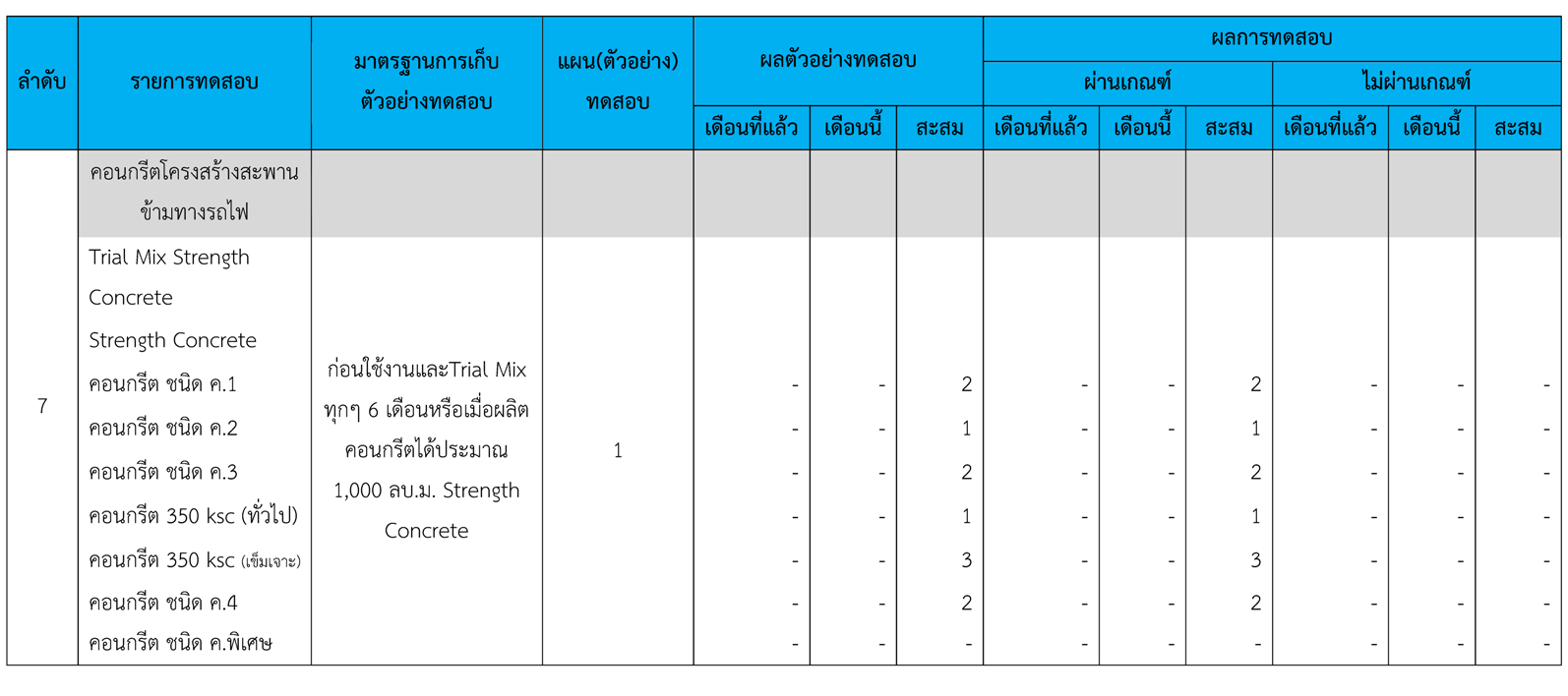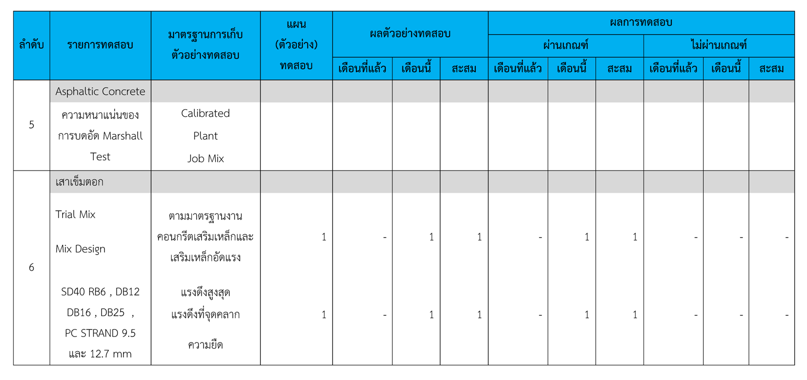 ในระหว่างวันที่ 1-31มีนาคม 2563 ผู้ว่าจ้างได้เสนอหนังสือขออนุมัติใช้วัสดุถึงที่ปรึกษา โดยที่ปรึกษาได้ตรวจสอบวัสดุดังกล่าวมีผลทดสอบดังตาราง